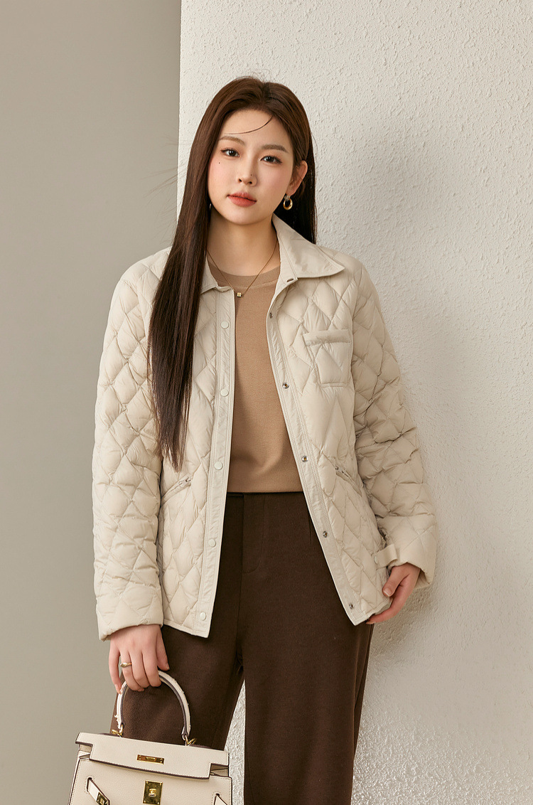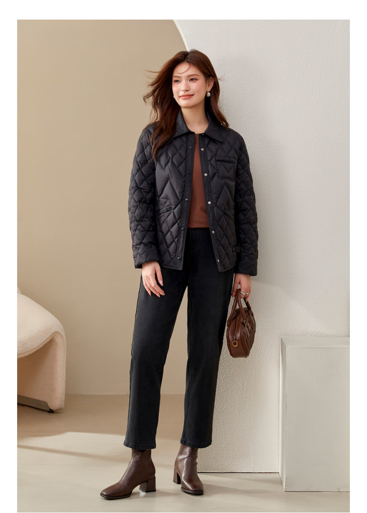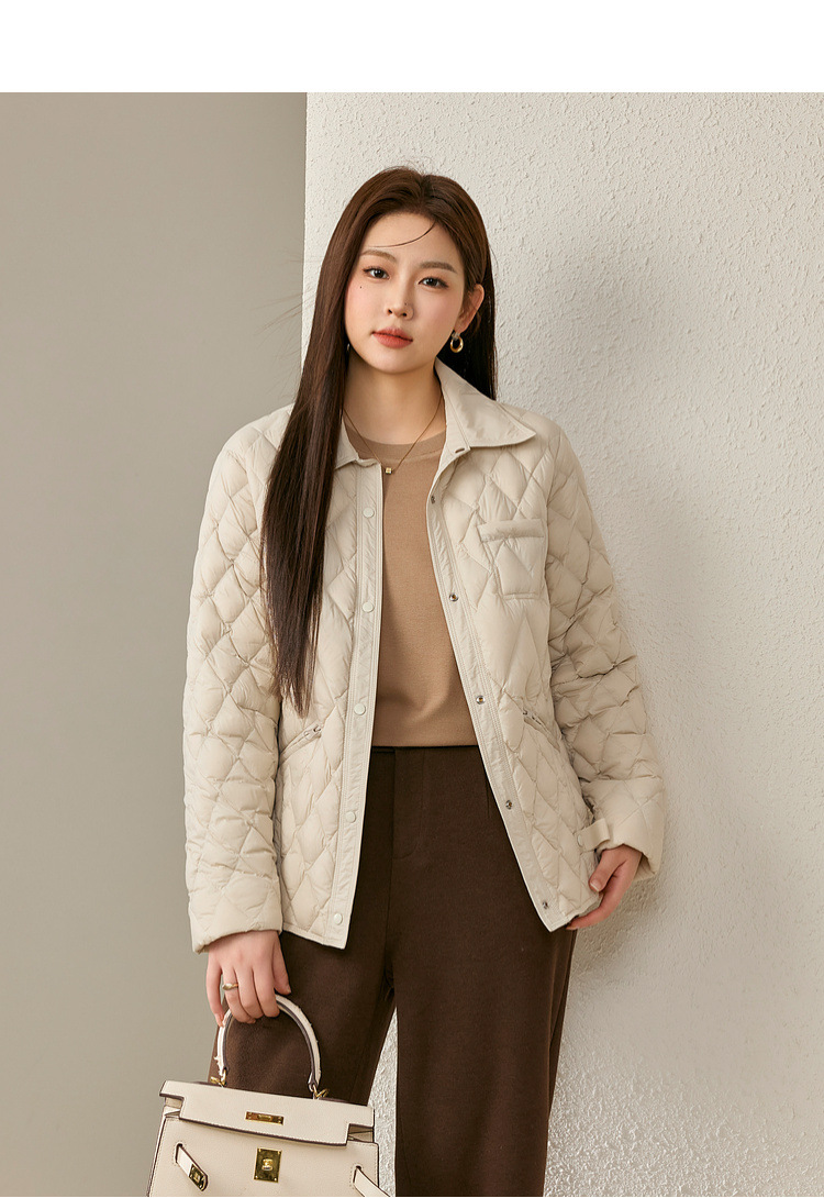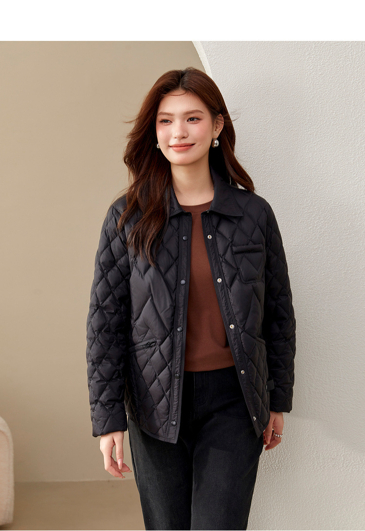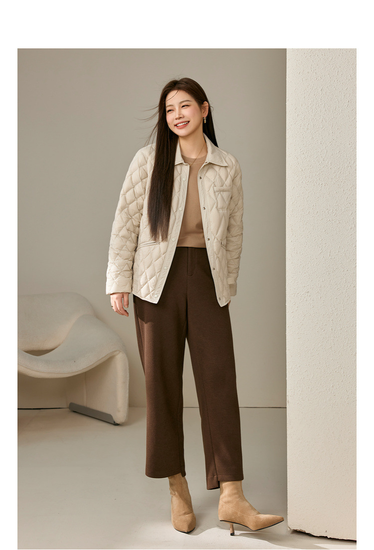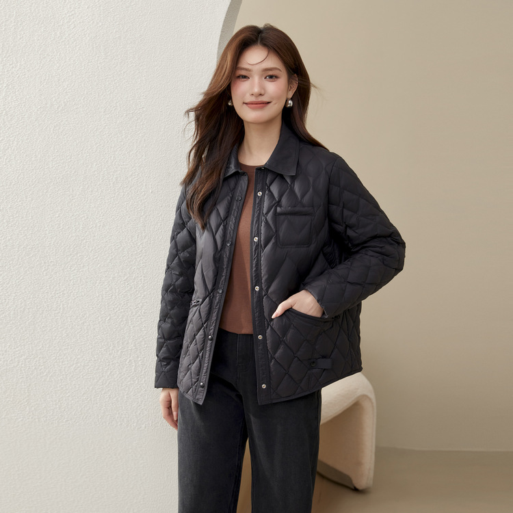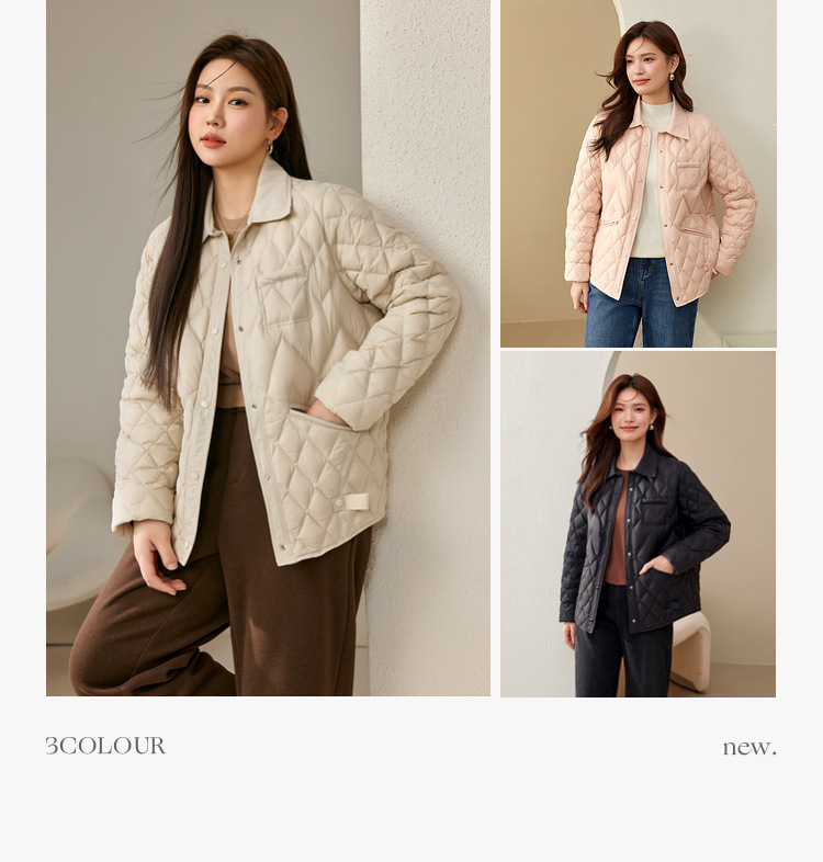 [Повседневная элегантная стеганая пуховая куртка] Тонкая и красивая женская куртка с лацканами больших размеров, новый зимний стиль 2024 мм
