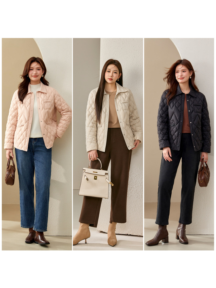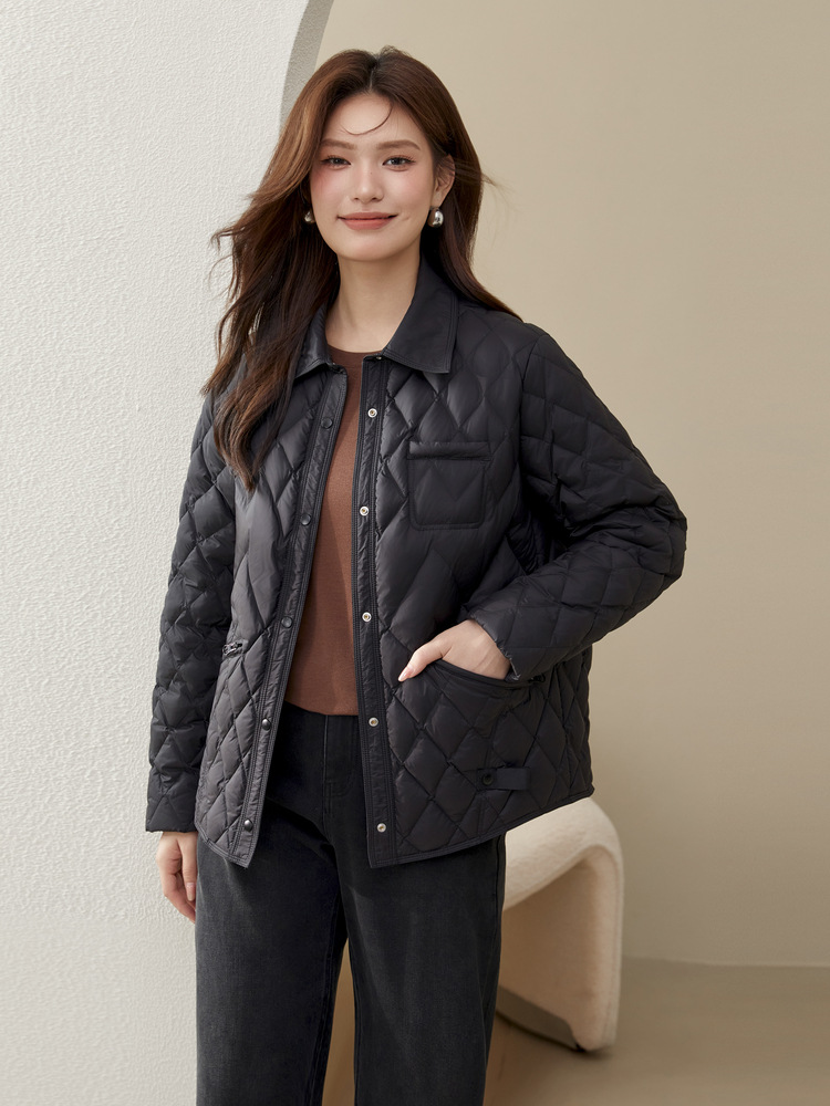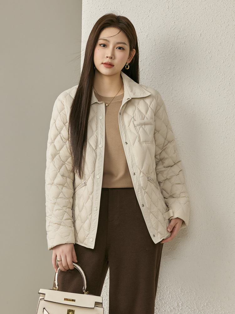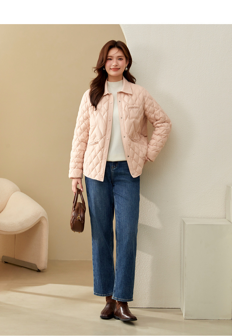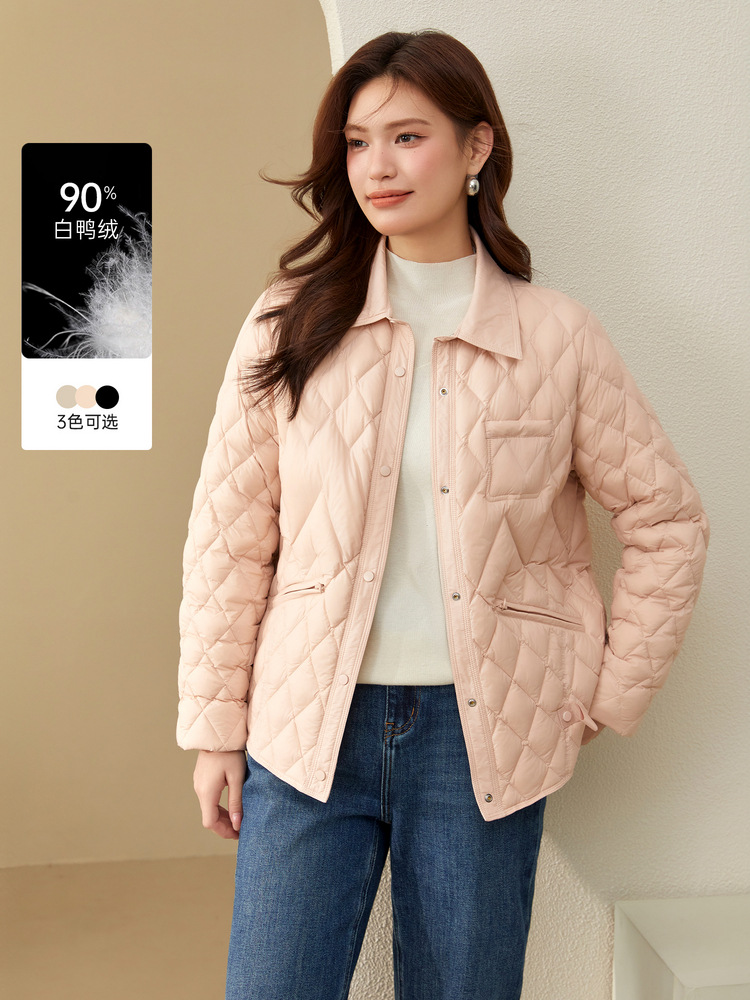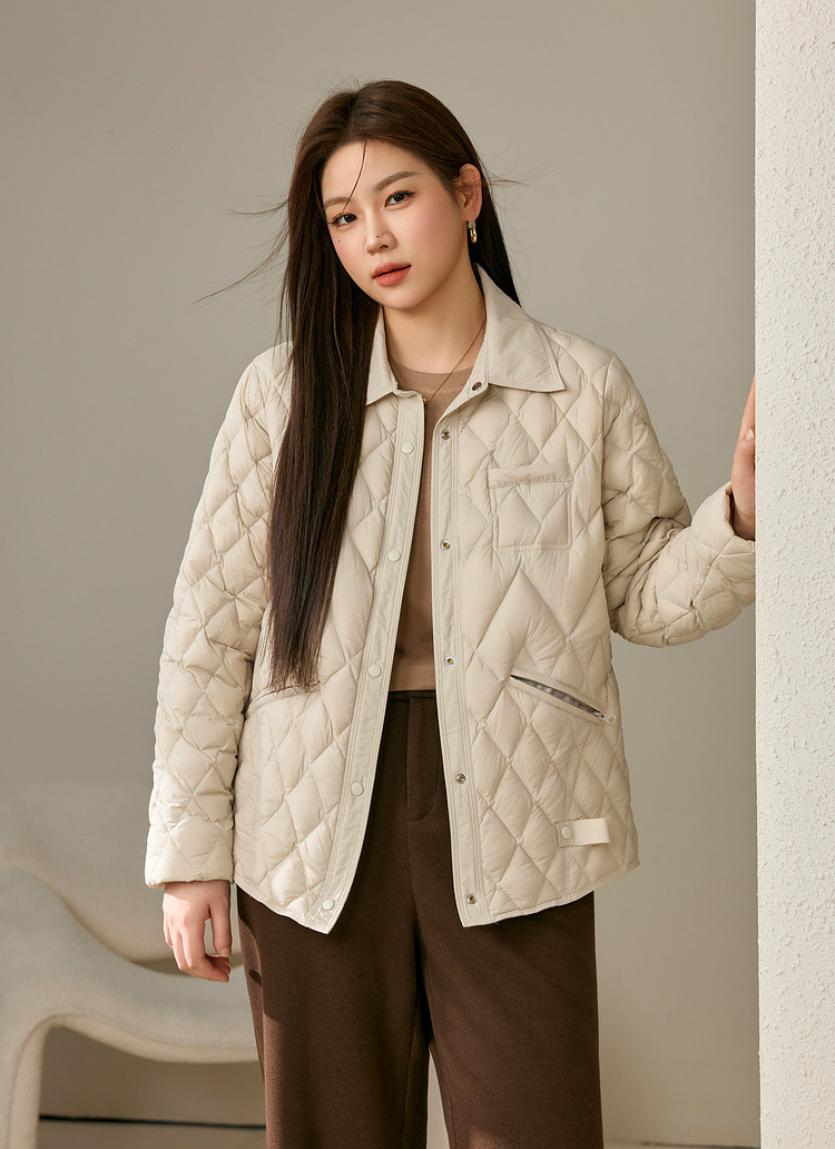 [Повседневная элегантная стеганая пуховая куртка] Тонкая и красивая женская куртка с лацканами больших размеров, новый зимний стиль 2024 мм