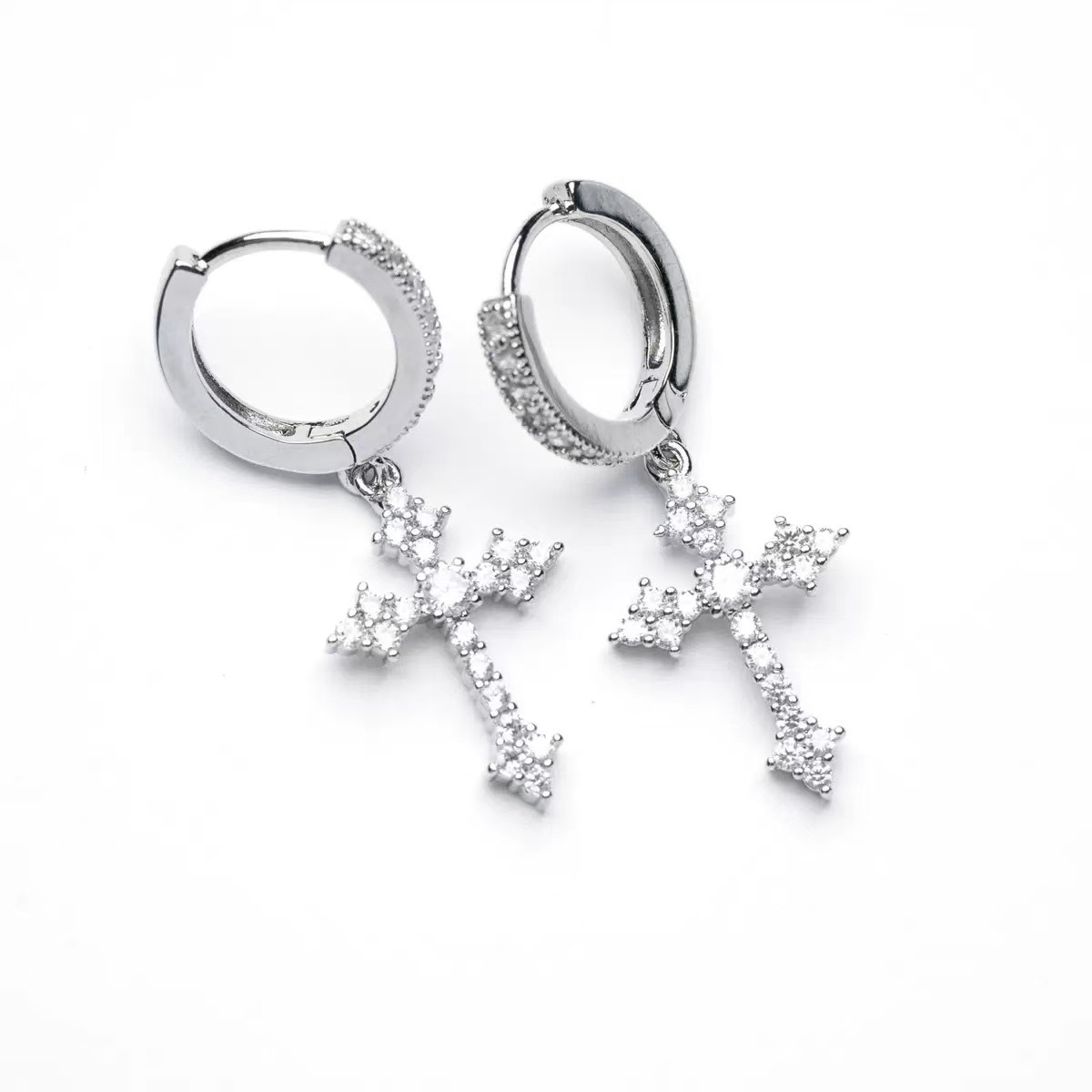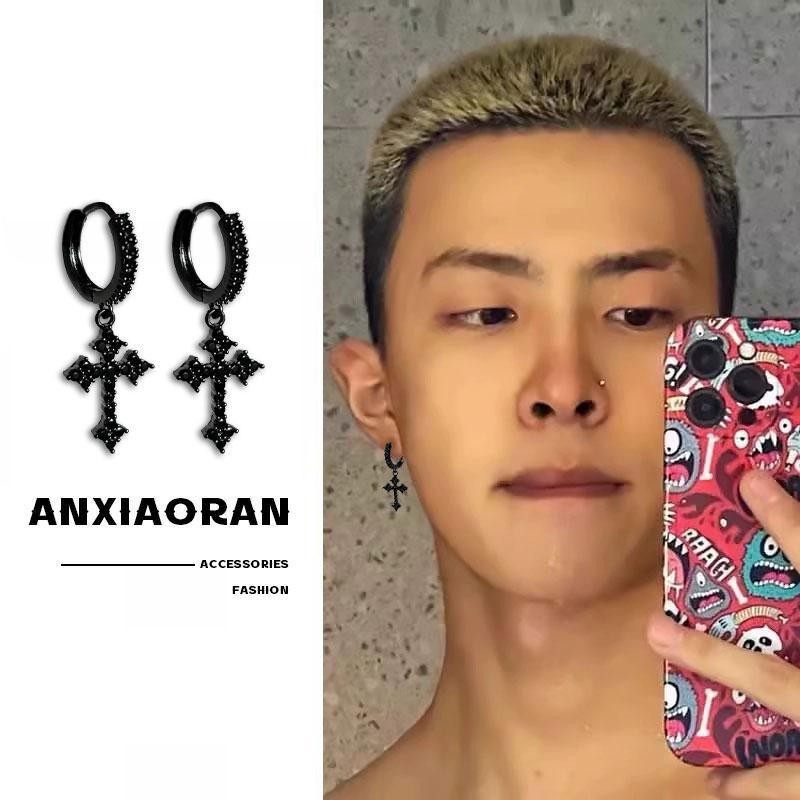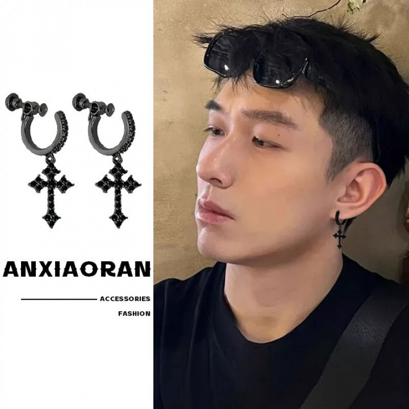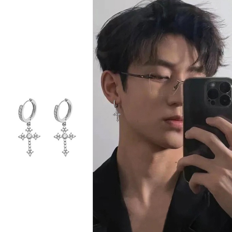 Мужские модные высококачественные серьги с бриллиантовым крестом и винтовым зажимом для ушей, европейские и американские креативные красивые серьги в стиле хип-хоп