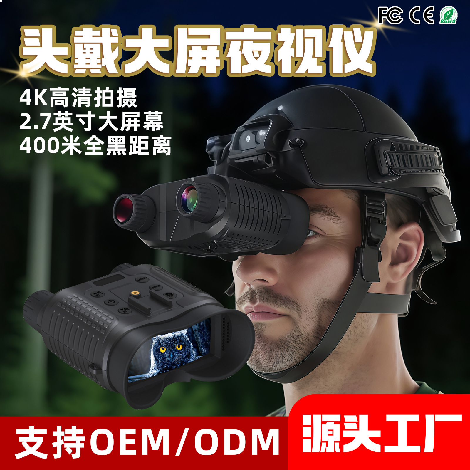 Ночной шлем для улицы, телескоп ночного видения, цифровой бинокль высокой четкости, инфракрасное устройство ночного видения с большим экраном