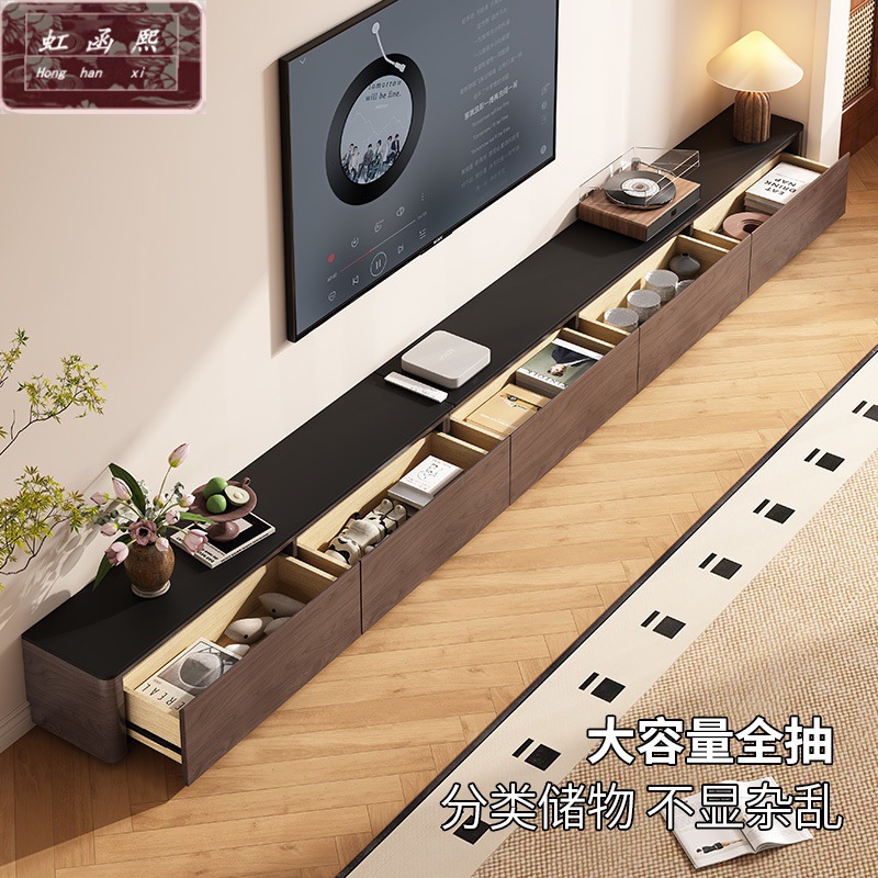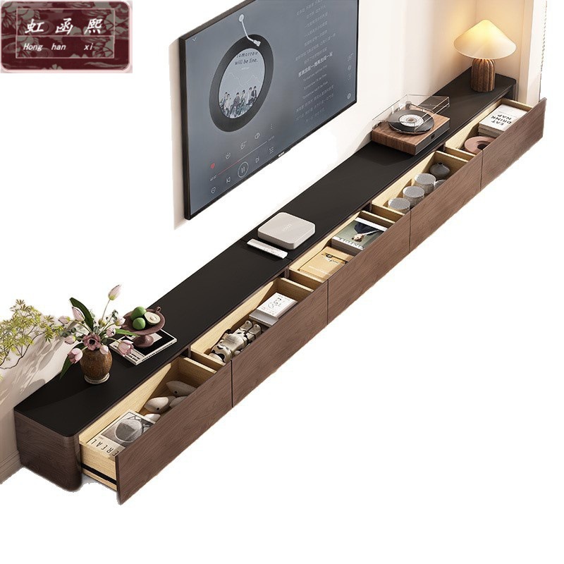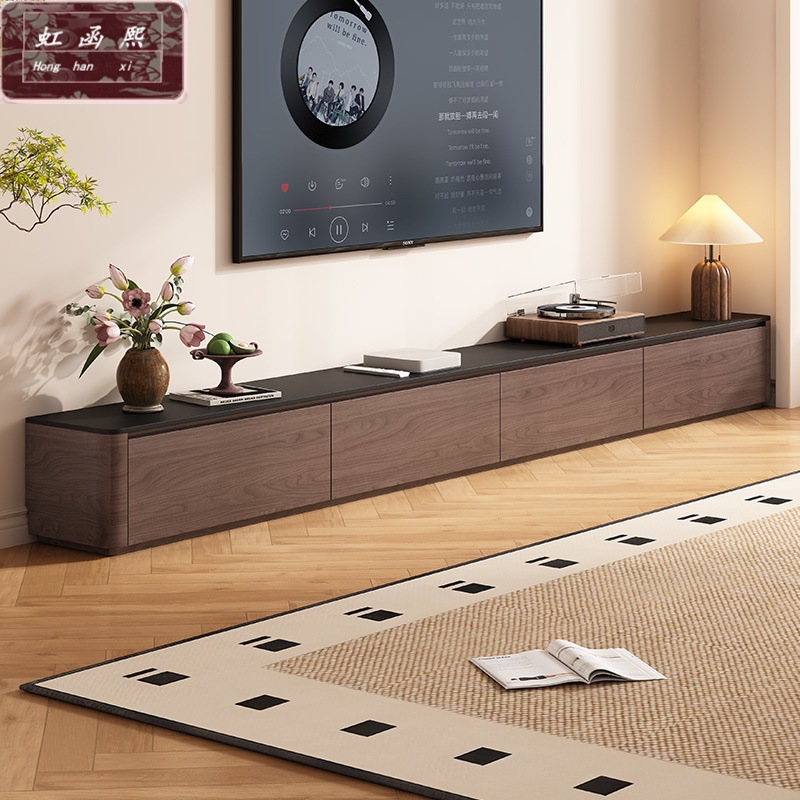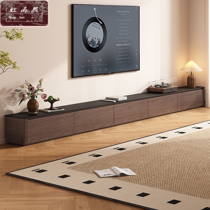 Современный простой удлиненный напольный шкаф из цельного дерева, ТВ-шкаф из черного ореха, ТВ-шкаф для гостиной, напольный шкаф для хранения, бывший в употреблении