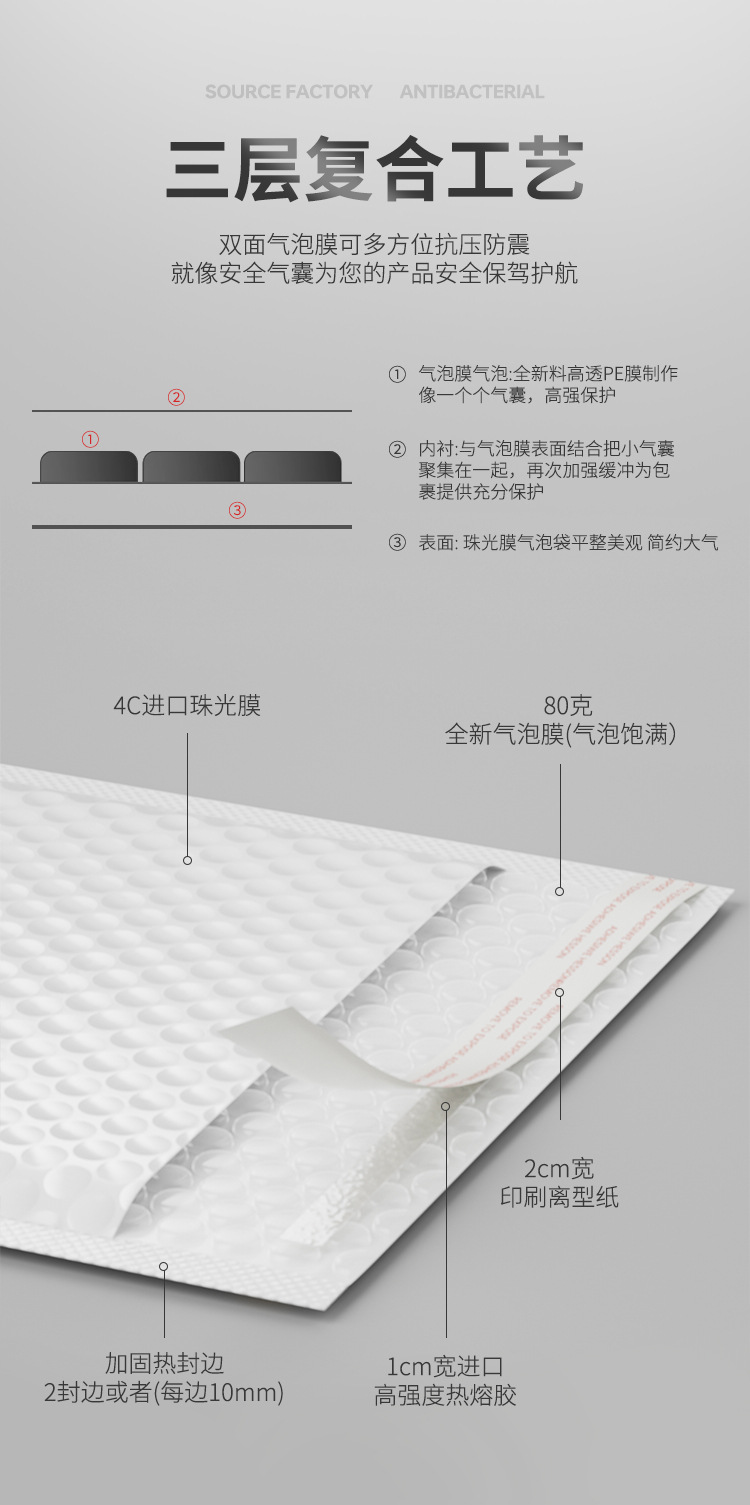 Композитная перламутровая пленка, пузырчатая сумка, самоклеящаяся сумка, утолщенная длинная пенопластовая сумка, сумка для экспресс-упаковки одежды, сумка-конверт с пузырьками