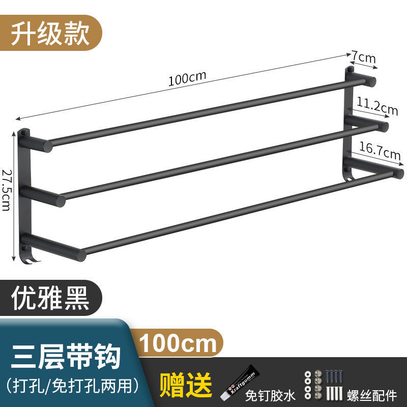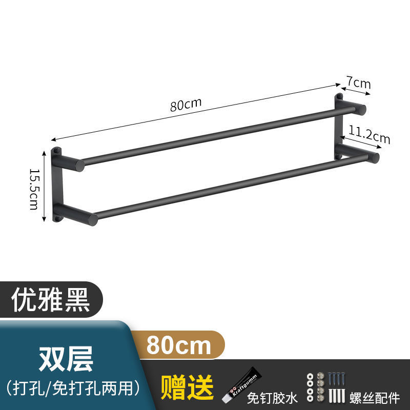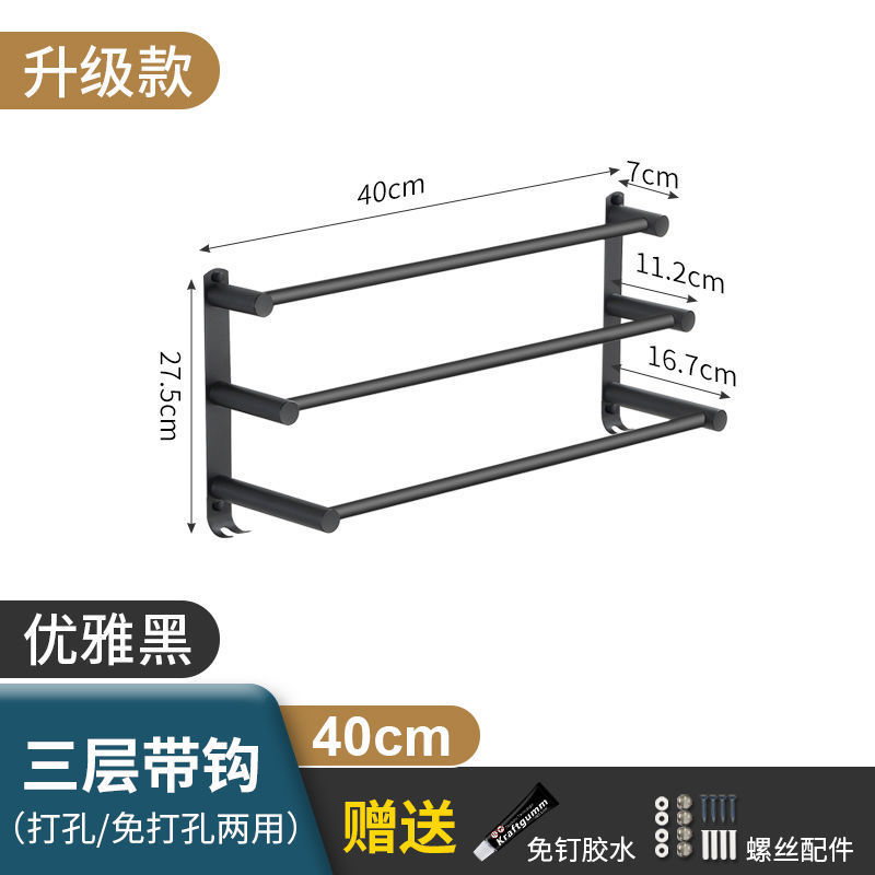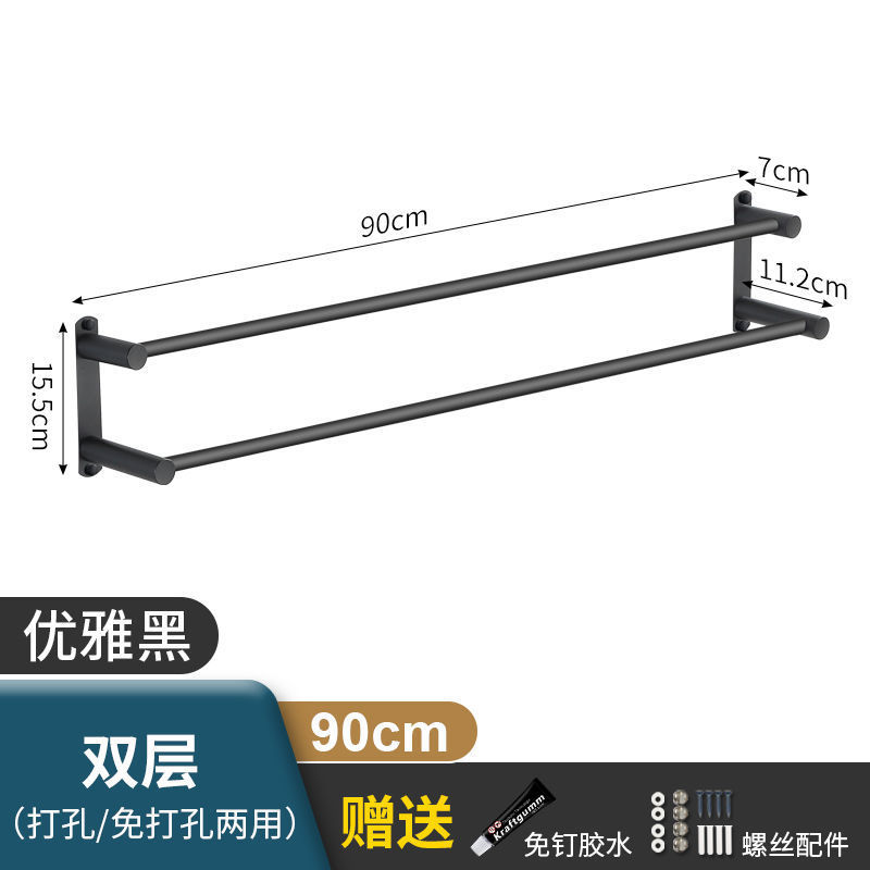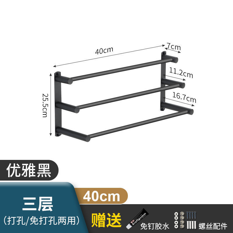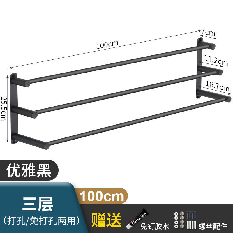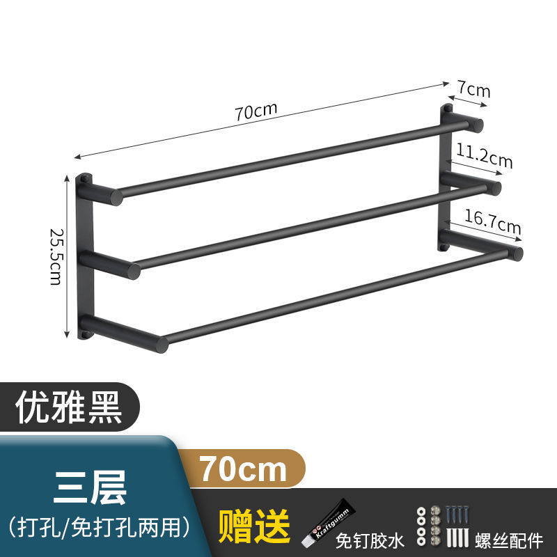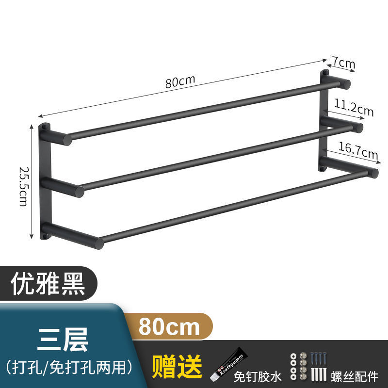 Черная вешалка для полотенец из нержавеющей стали без перфорации, подвесная вешалка для полотенец, вешалка для полотенец для туалета, ванной комнаты, стеллаж для хранения туалета, настенный подвесной