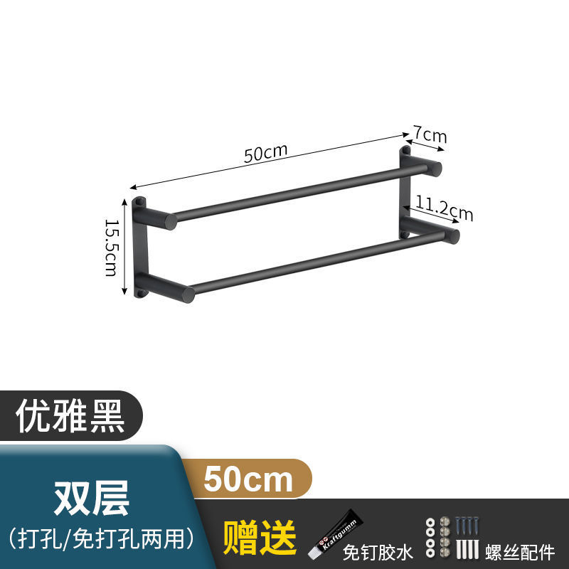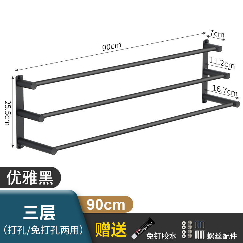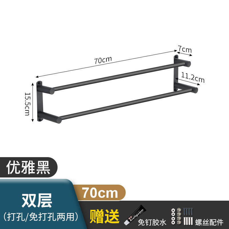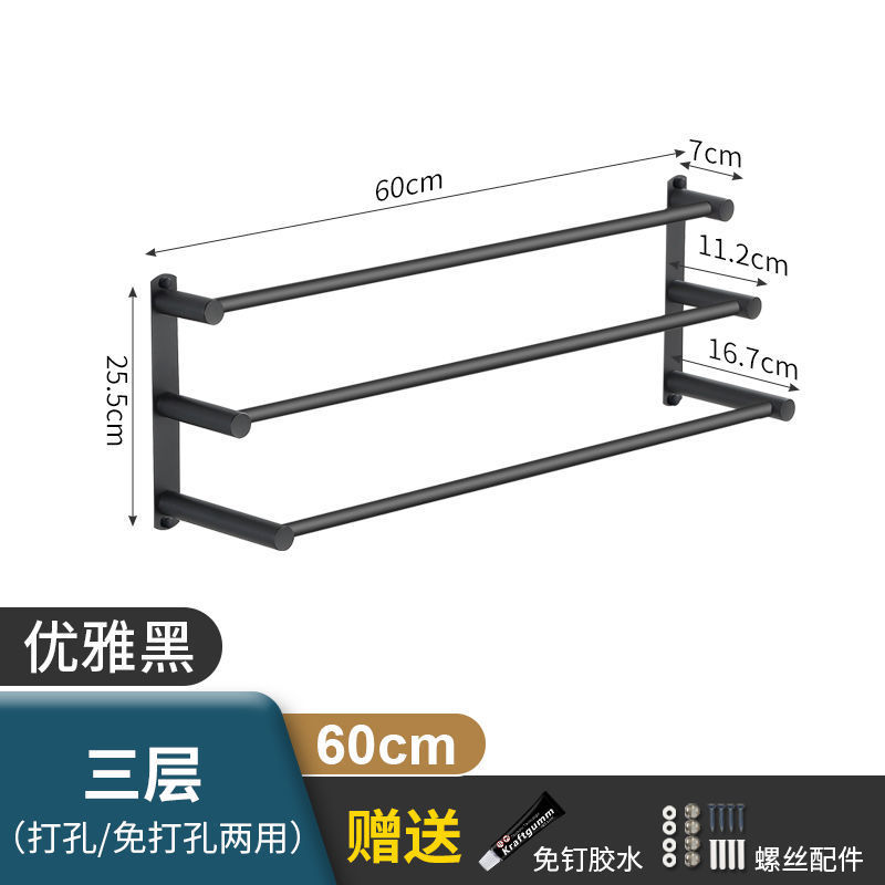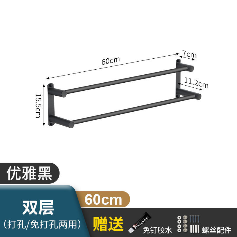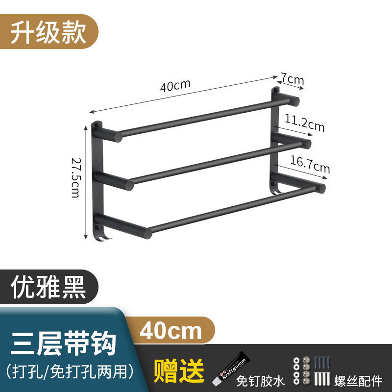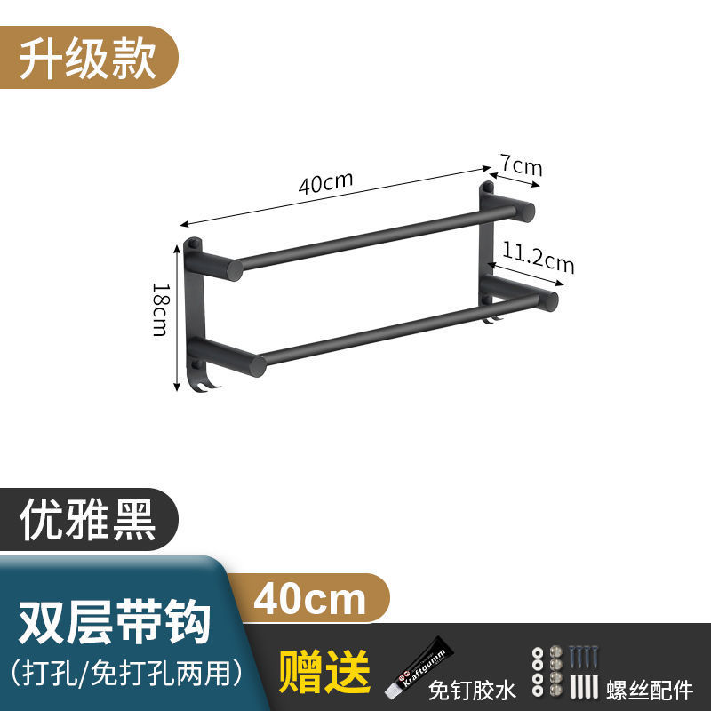 Черная вешалка для полотенец из нержавеющей стали без перфорации, подвесная вешалка для полотенец, вешалка для полотенец для туалета, ванной комнаты, стеллаж для хранения туалета, настенный подвесной