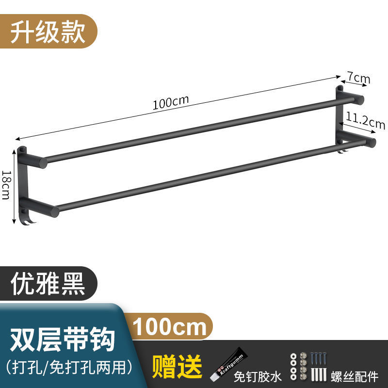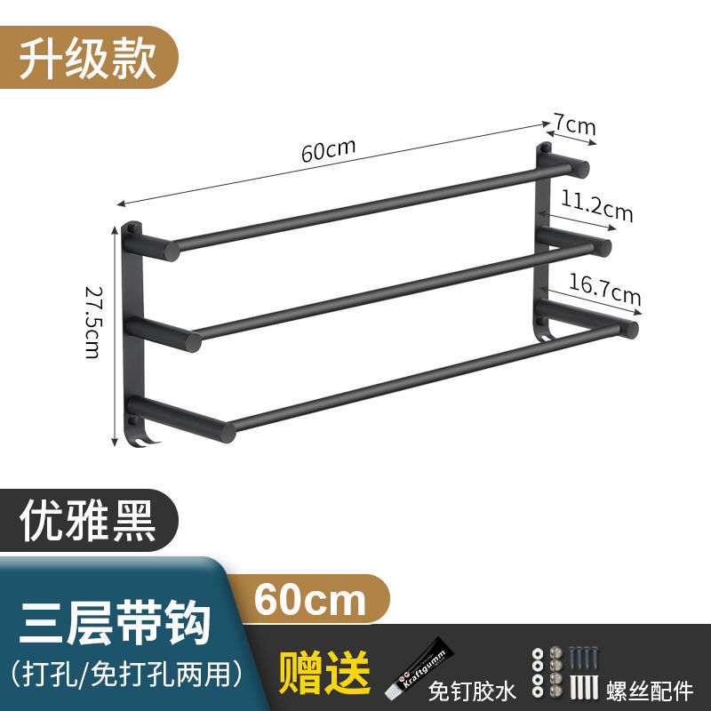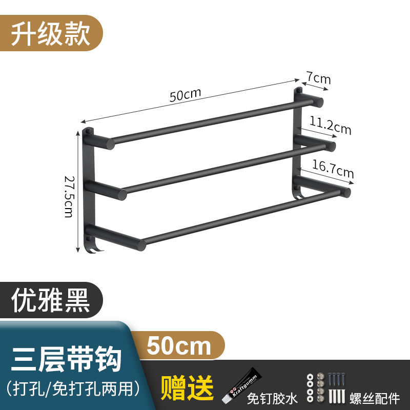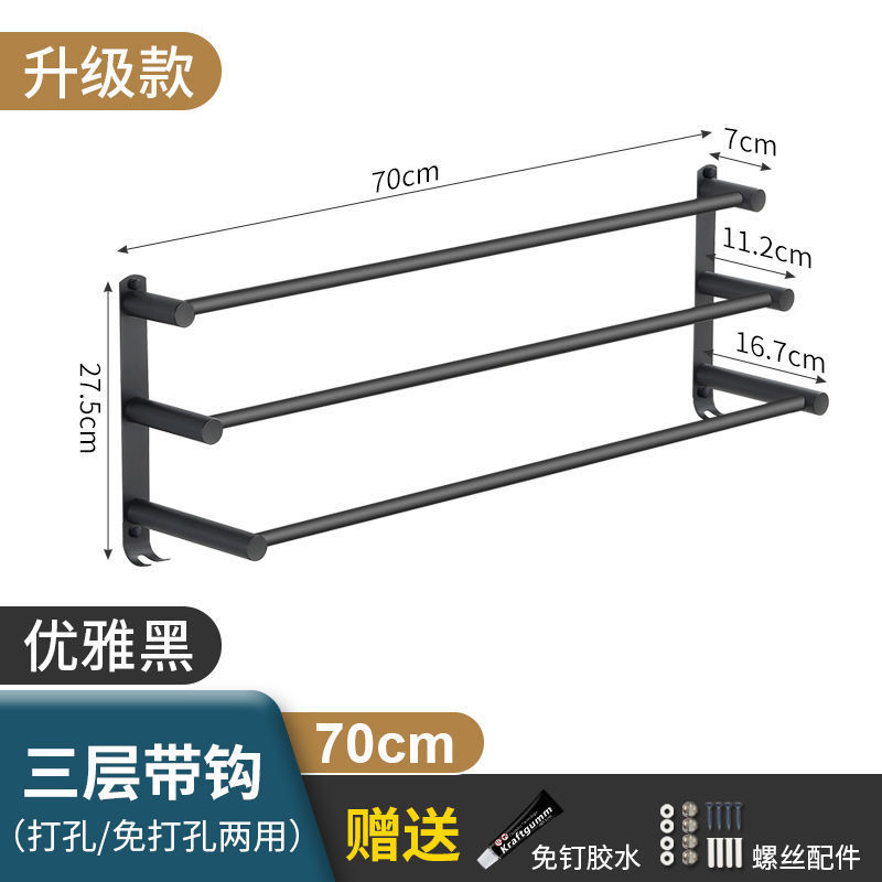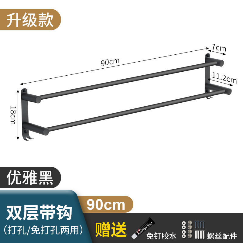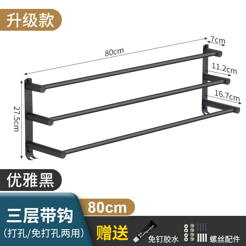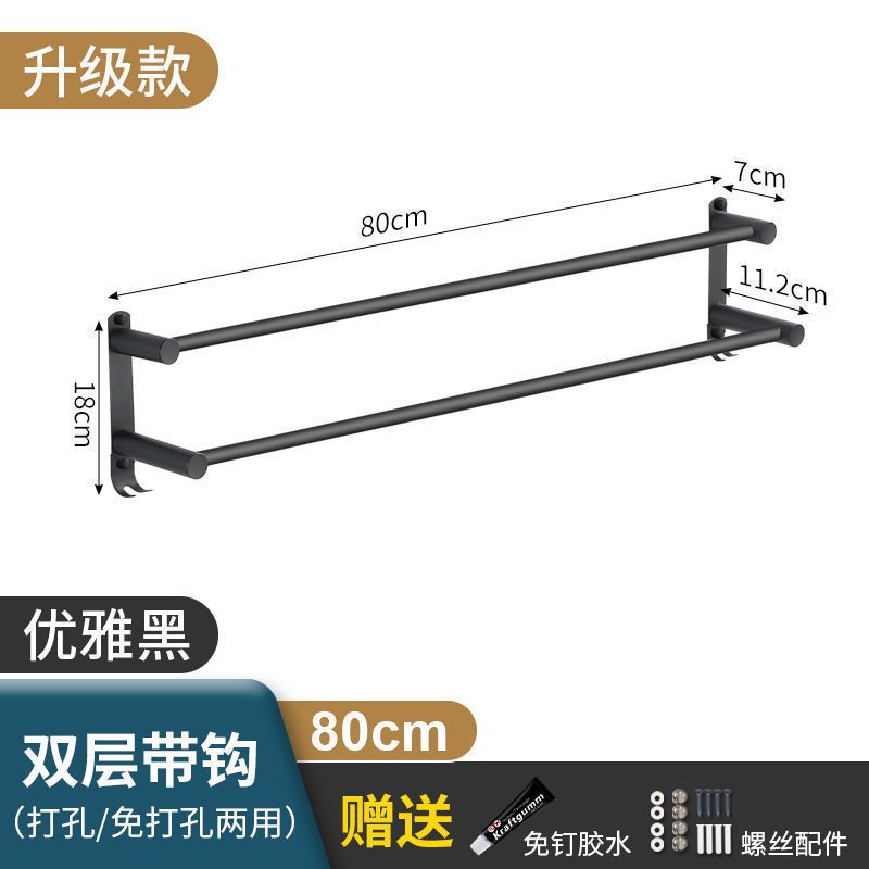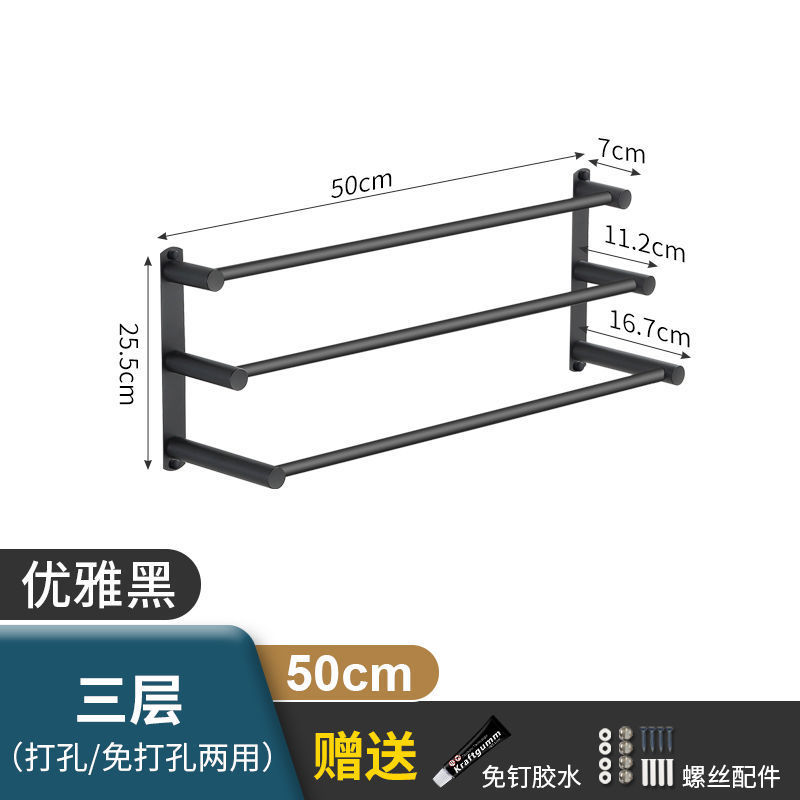 Черная вешалка для полотенец из нержавеющей стали без перфорации, подвесная вешалка для полотенец, вешалка для полотенец для туалета, ванной комнаты, стеллаж для хранения туалета, настенный подвесной