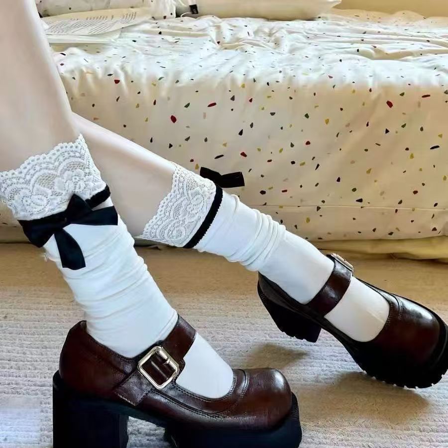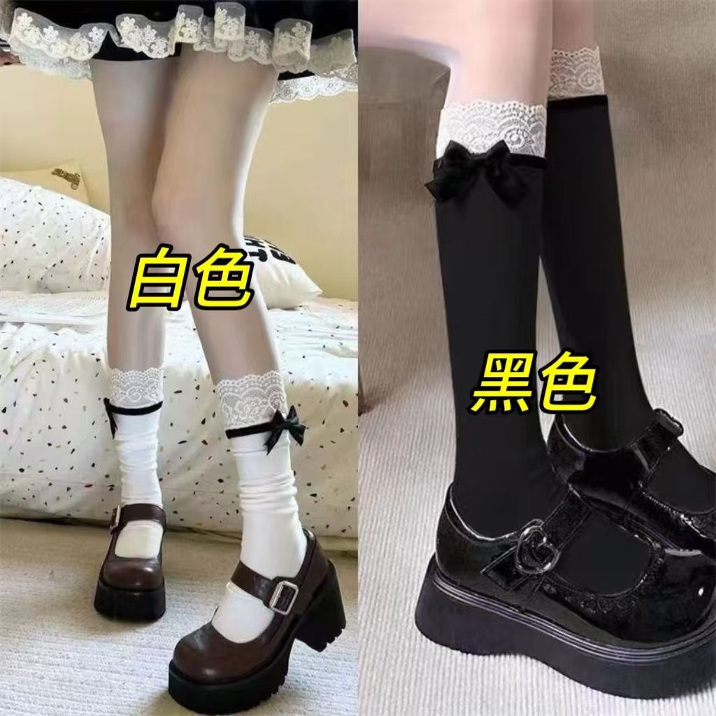 Весенне-летние новые милые носки с бантом в стиле Лолиты, белые кружевные носки до середины икры jk