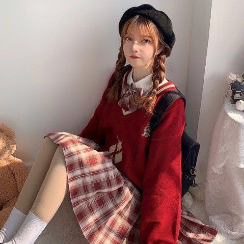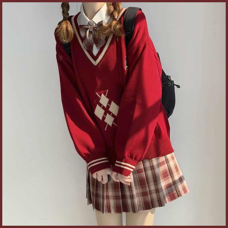 Оптовая продажа 130kg внутренняя одежда больших размеров jk Рождественский и новогодний свитер красная одежда для женщин японский стиль jk униформа осень и зима