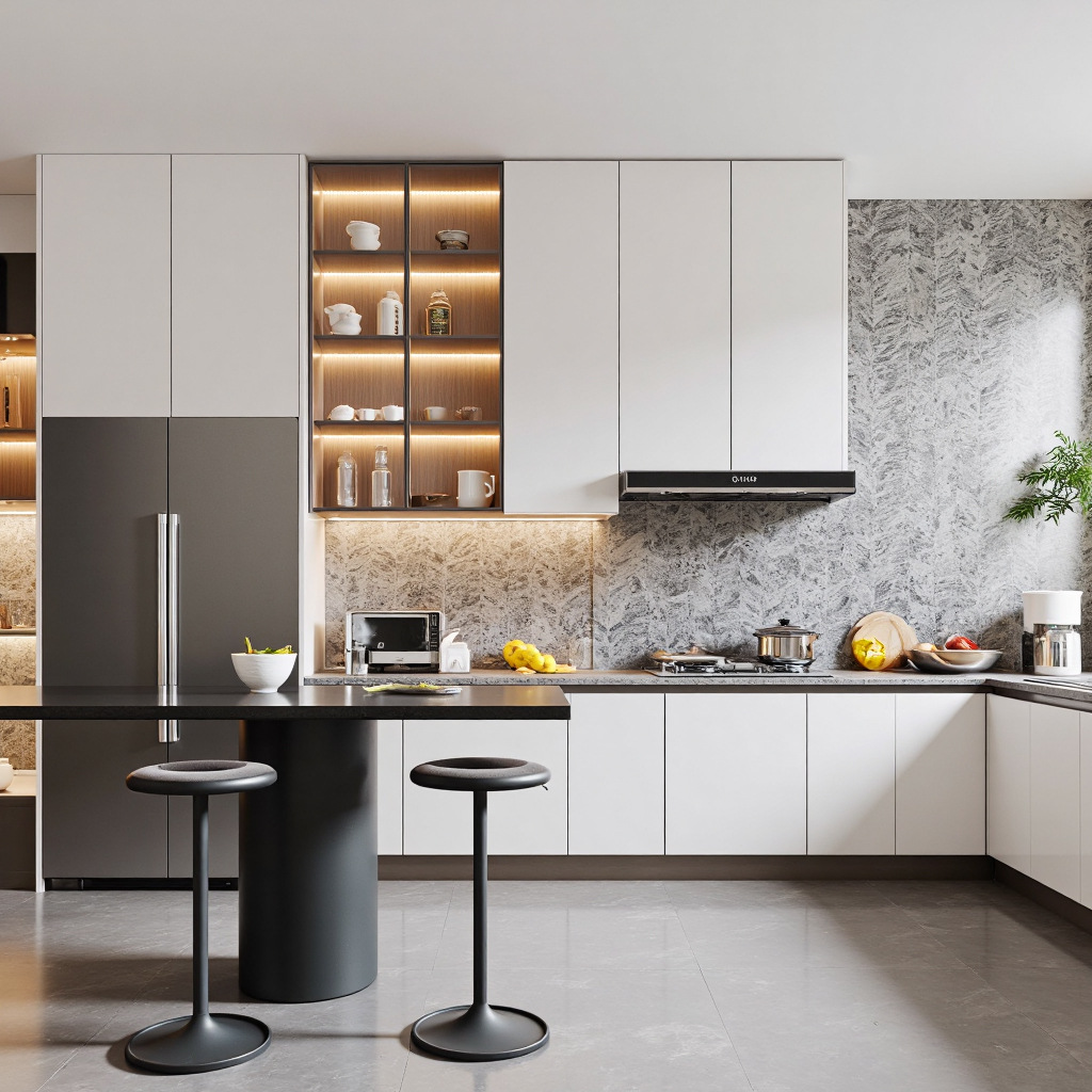 Заказное изготовление шкафов из нержавеющей стали 304 для дома, открытые L-образные интегрированные шкафы, фабрика Фошань