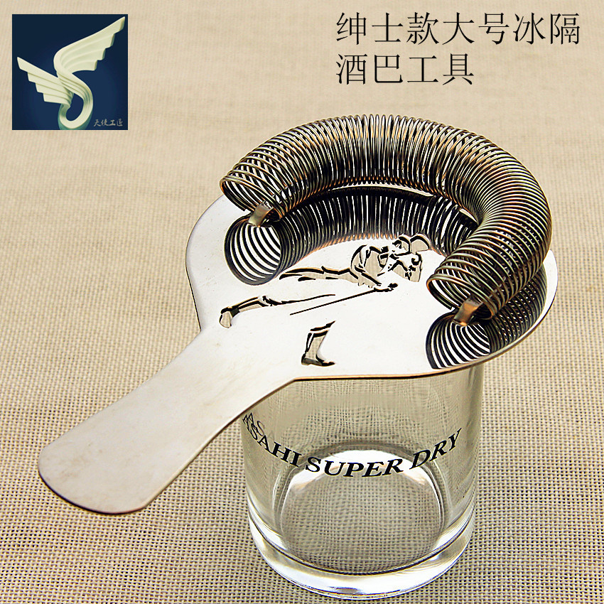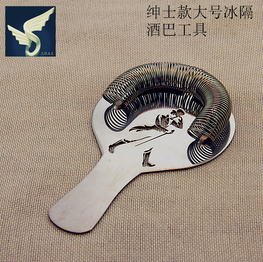 我厂专业生产各款冰隔工具,这个产品有各种叫法,有叫格冰器,隔冰器,过滤器,滤冰器,,,是酒吧餐吧工具之一,材质有430和304,可电镀各种颜色增加美观性,产品主要组成是弹簧和钢板成形和手柄,可随客户要求定制生产。