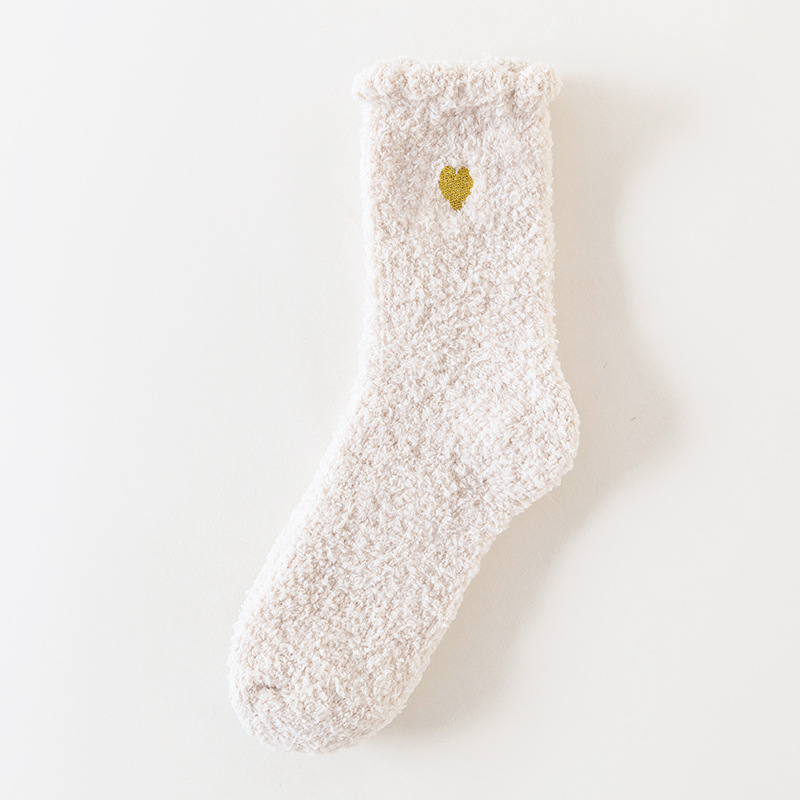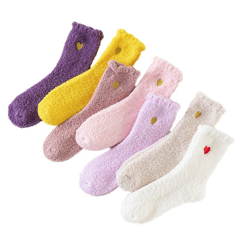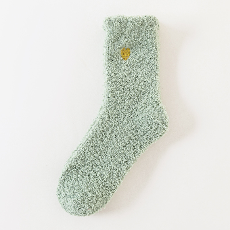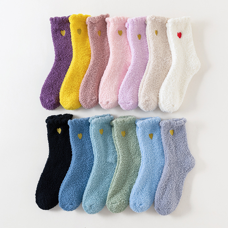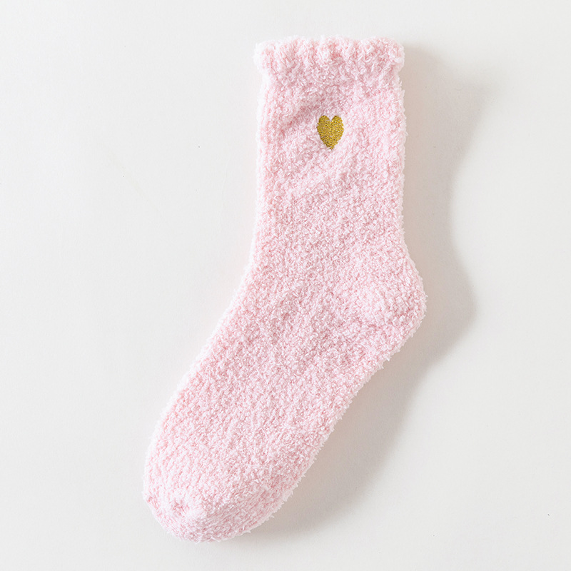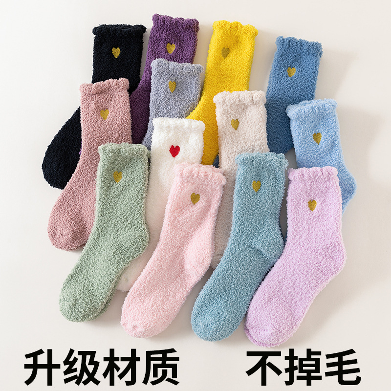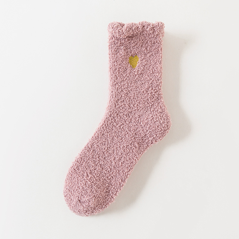 Осенние и зимние женские носки из кораллового флиса, толстые носки-тапочки с вышивкой в виде сердца, носки для сна, теплые носки для беременных для трансграничных продаж.