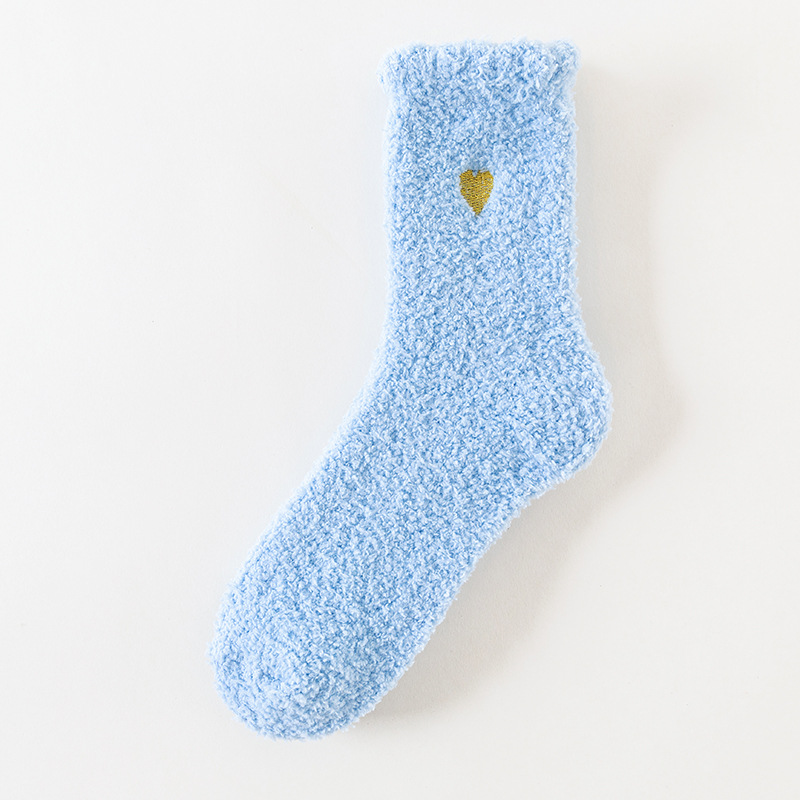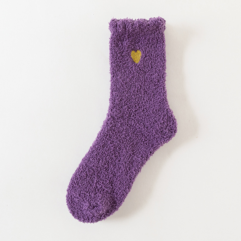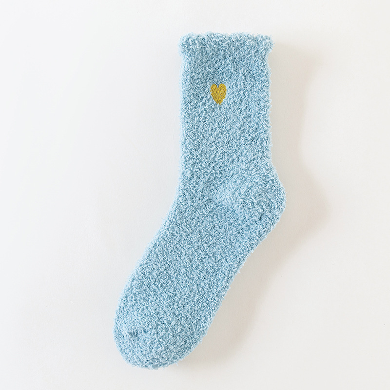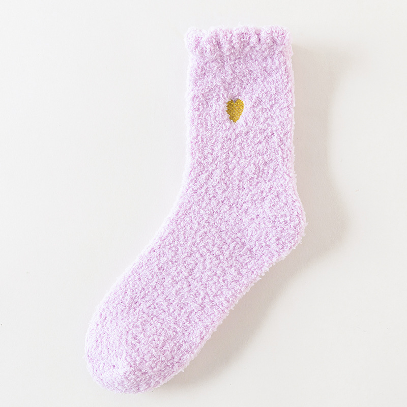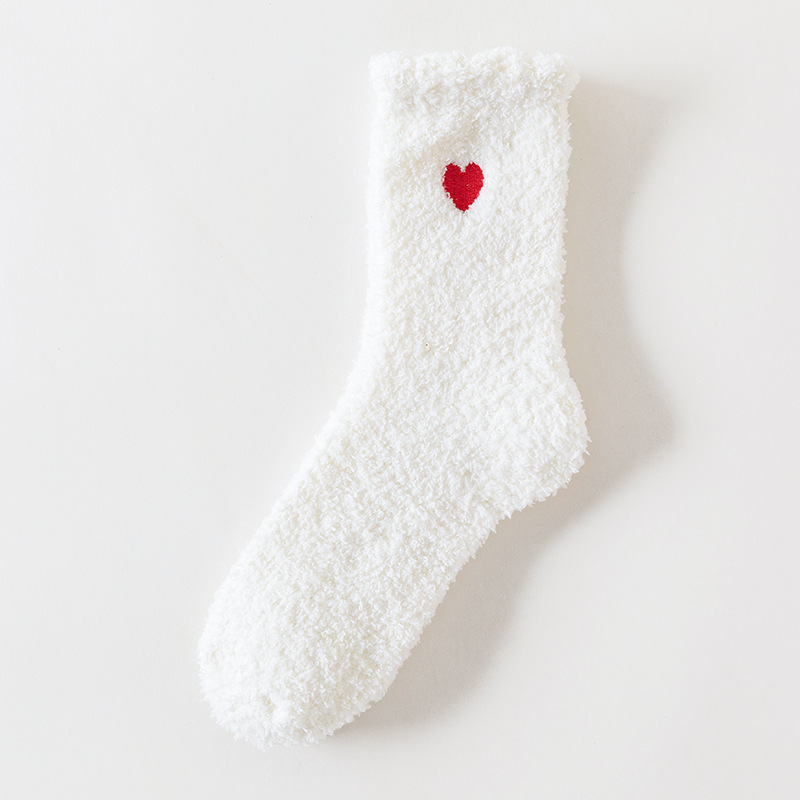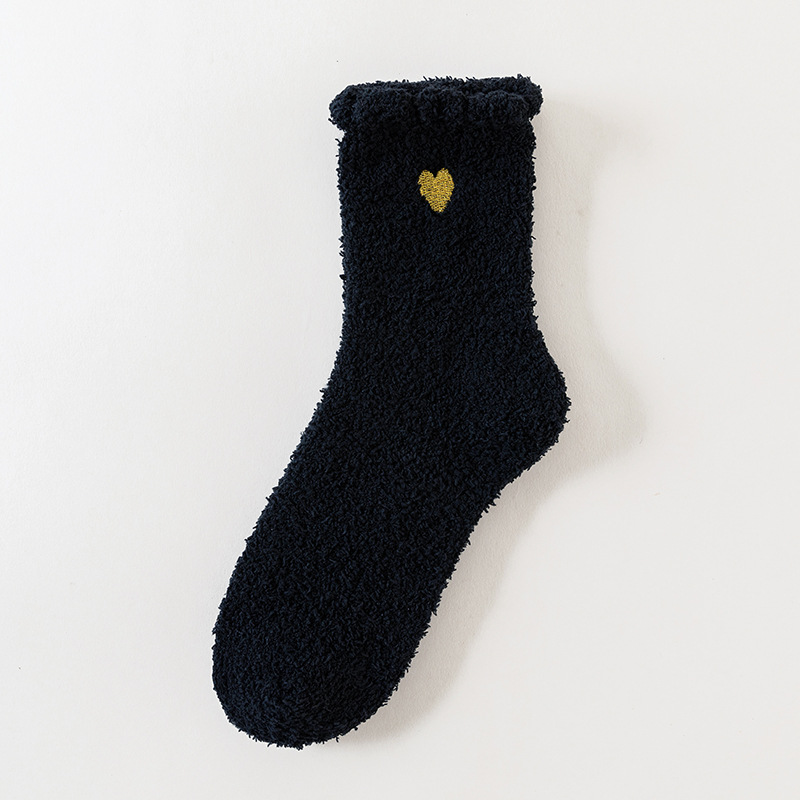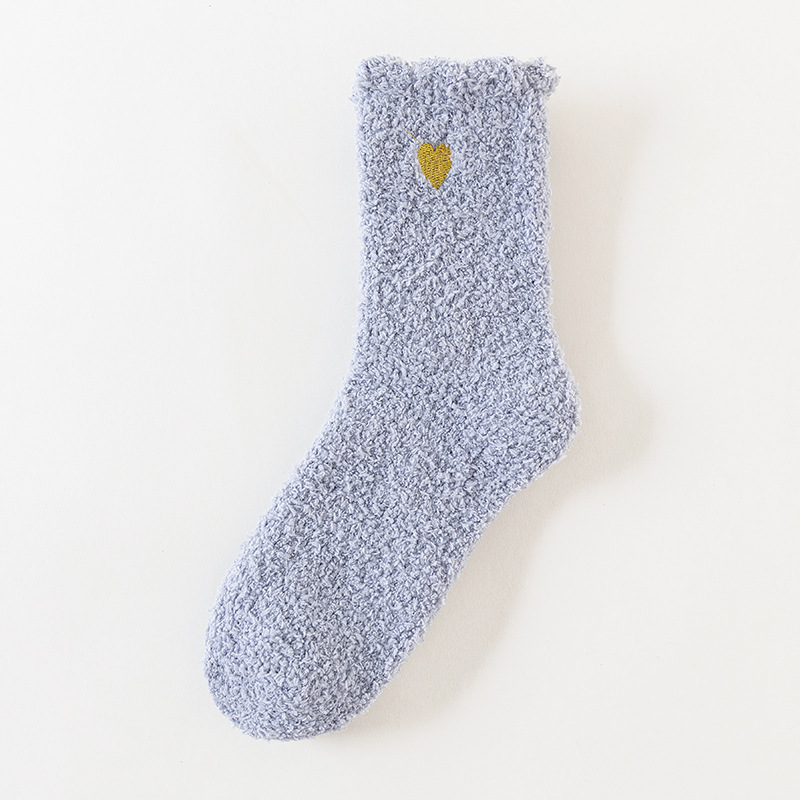Осенние и зимние женские носки из кораллового флиса, толстые носки-тапочки с вышивкой в виде сердца, носки для сна, теплые носки для беременных для трансграничных продаж.