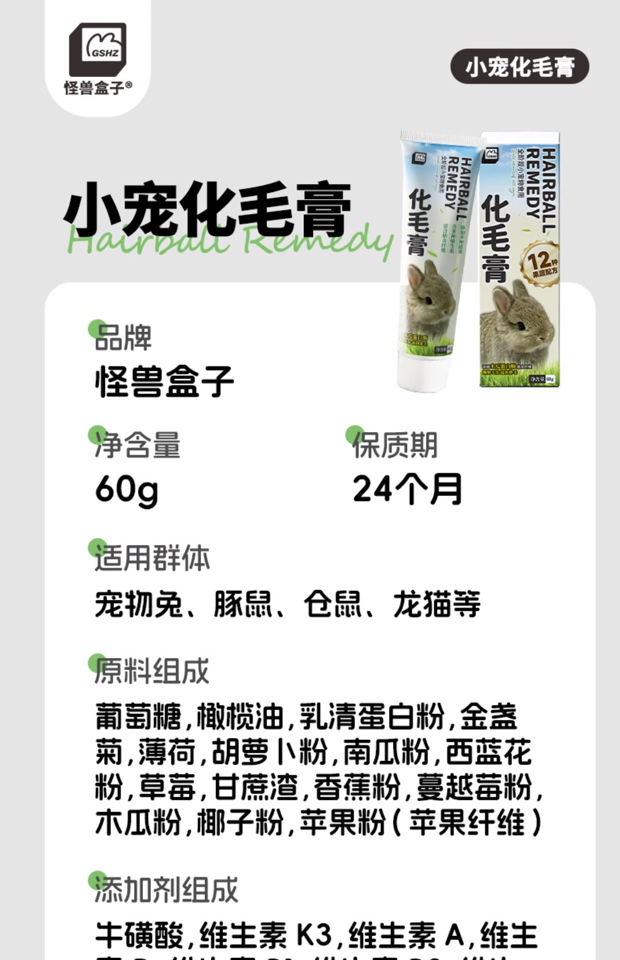 Monster Box Rabbit Специальные питательные продукты Формула фруктов и овощей Крем для депиляции с папайей Питательные продукты для кроликов Питательный крем