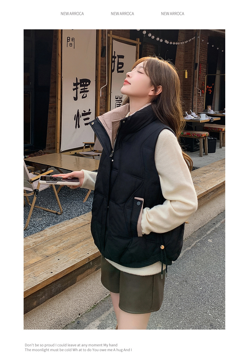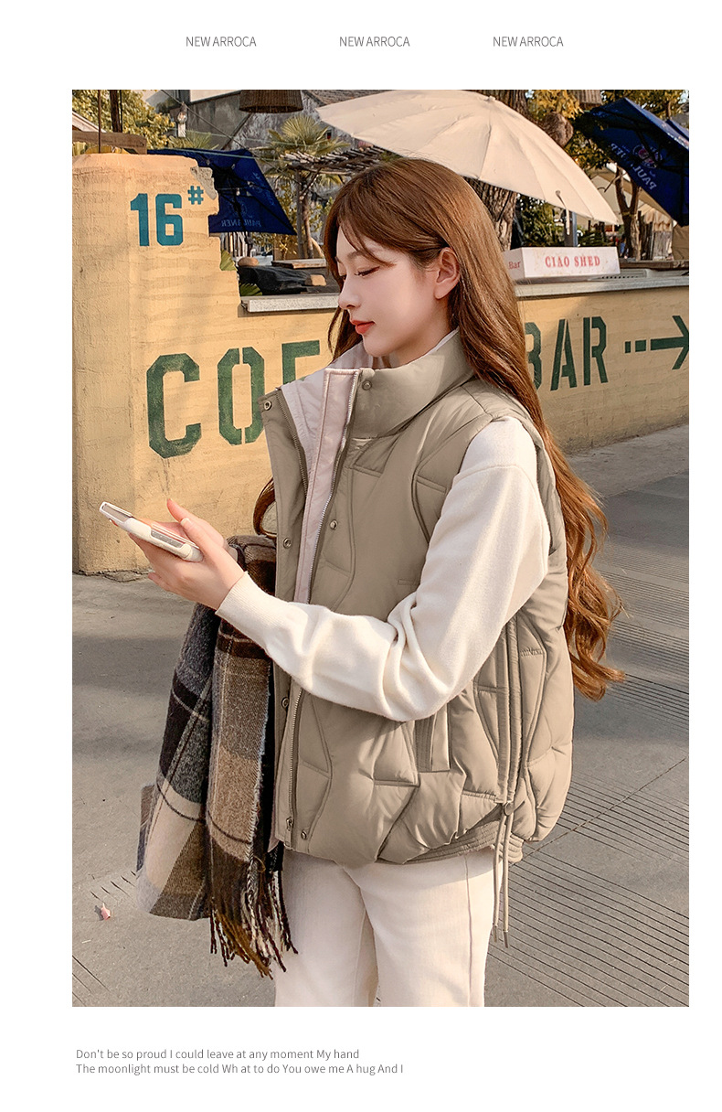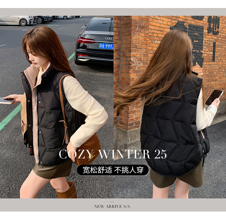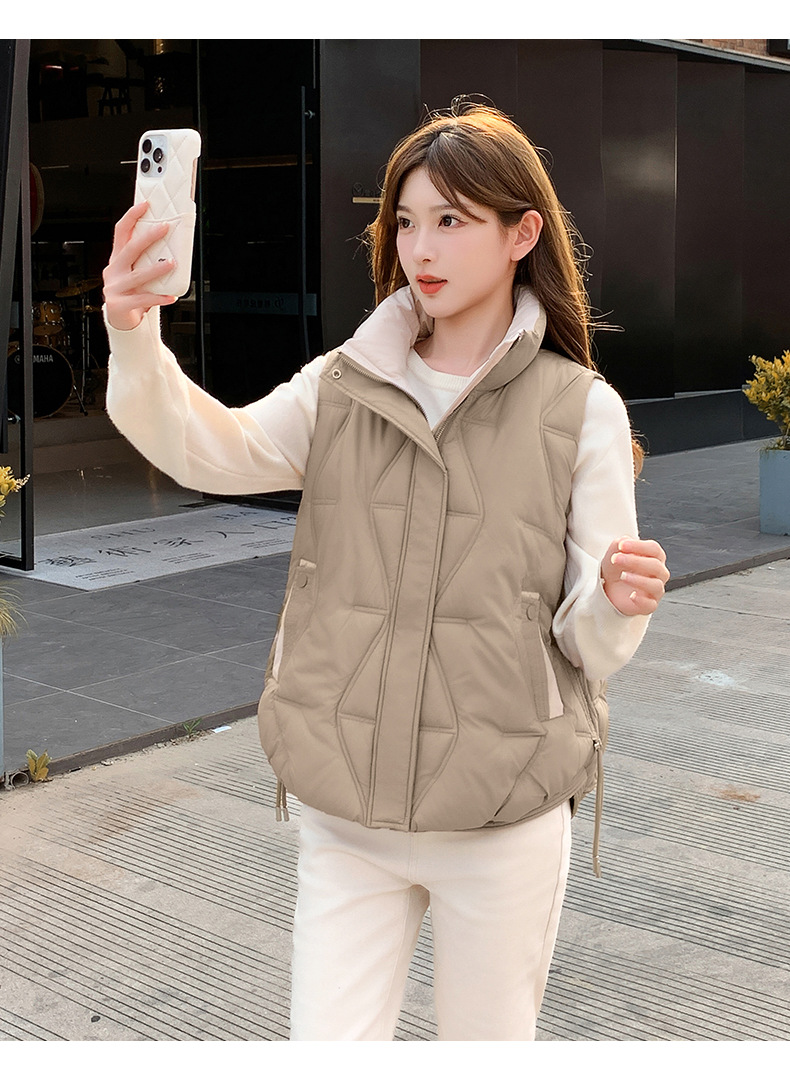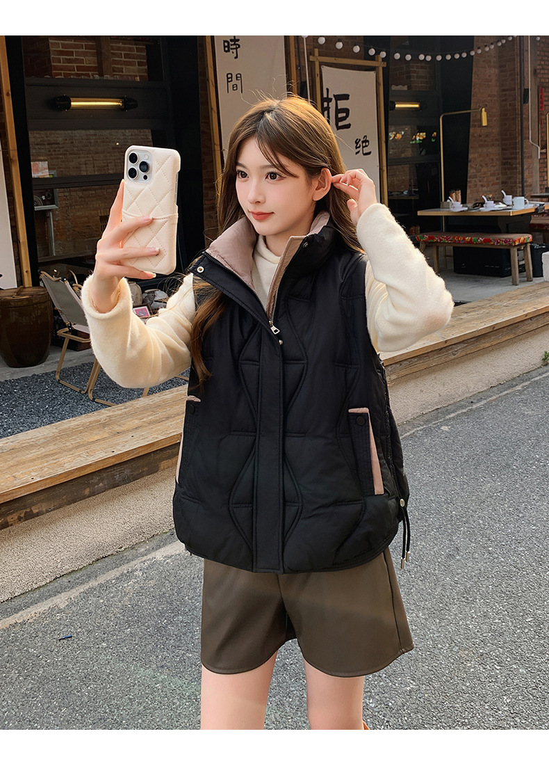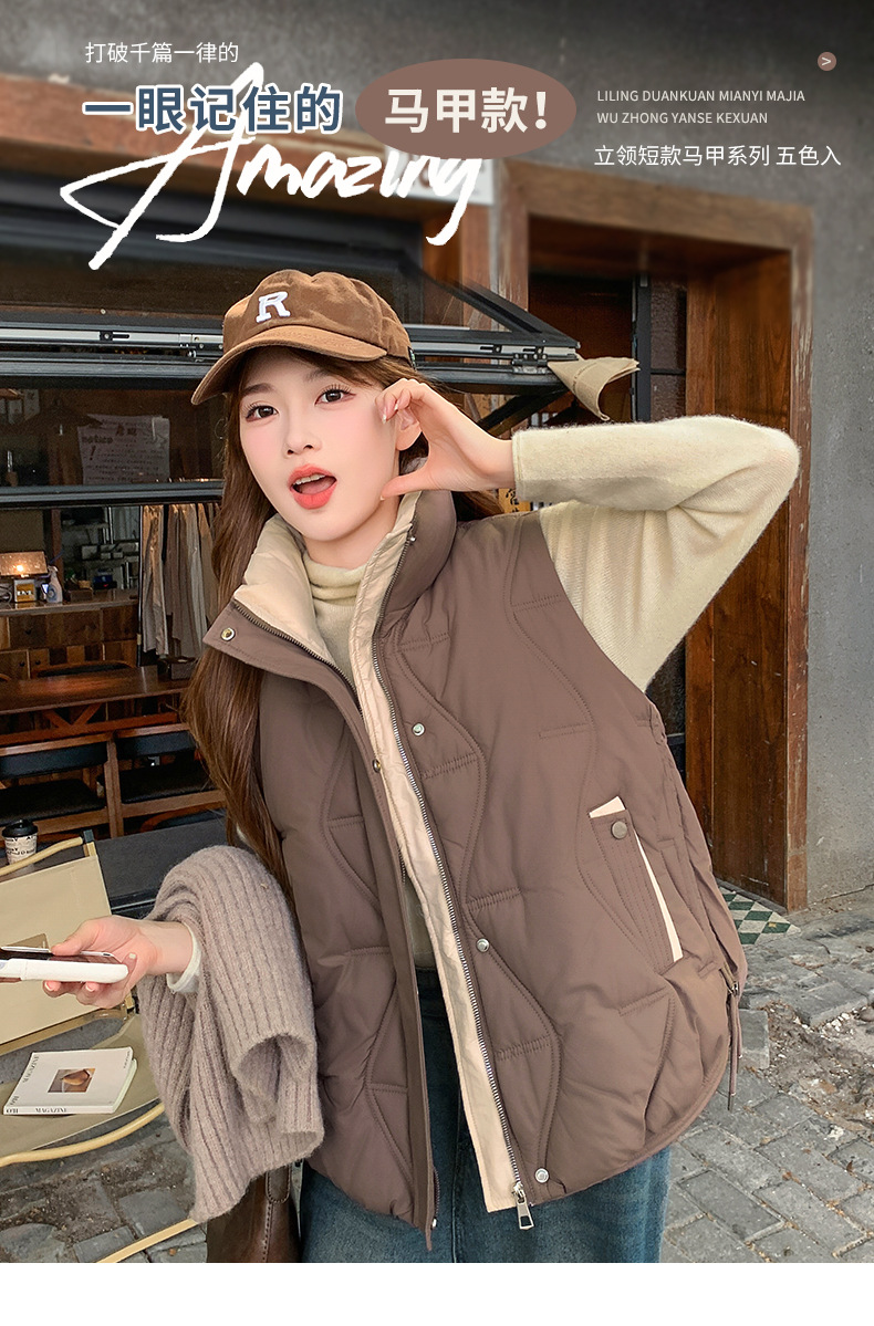 Женский короткий хлопковый жилет, модный новый хлопковый жилет, зимний хлопковый жилет без рукавов, модный универсальный утолщенный жилет с воротником-стойкой, модный