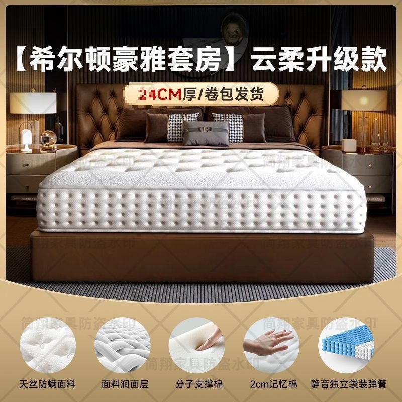Матрас Hilton Five Hotel из пены с эффектом памяти, бесшумный независимый пружинный матрас, супермягкий утолщенный рулонный комплект