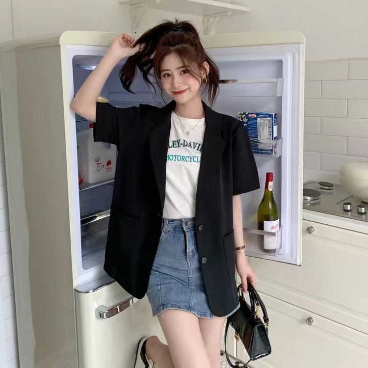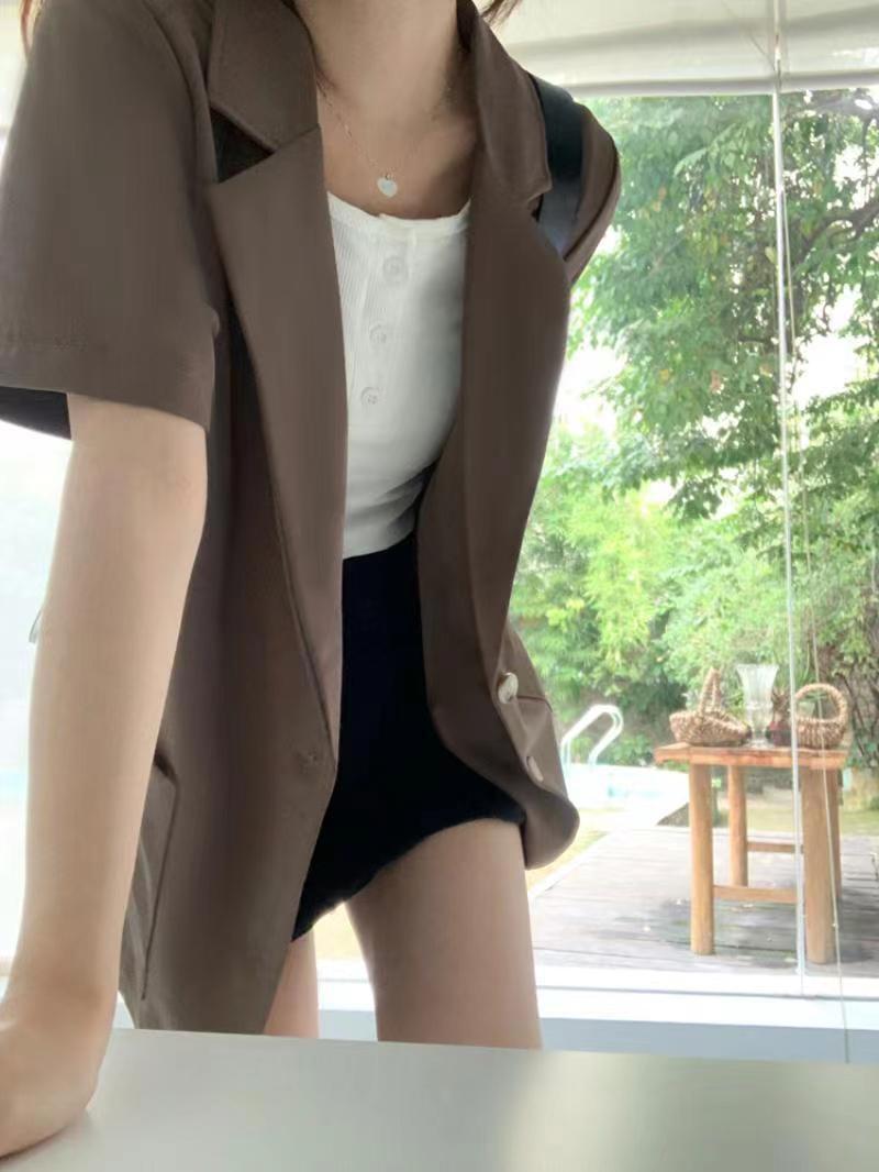 Женские летние модные нишевые повседневные универсальные топы с короткими рукавами в костюмном стиле