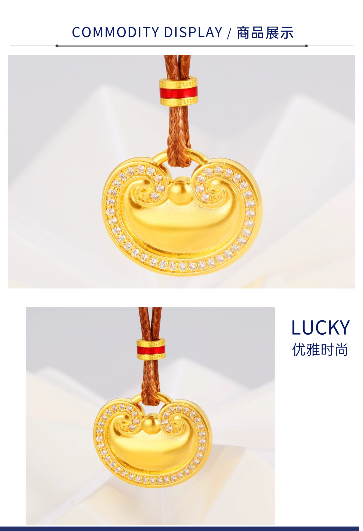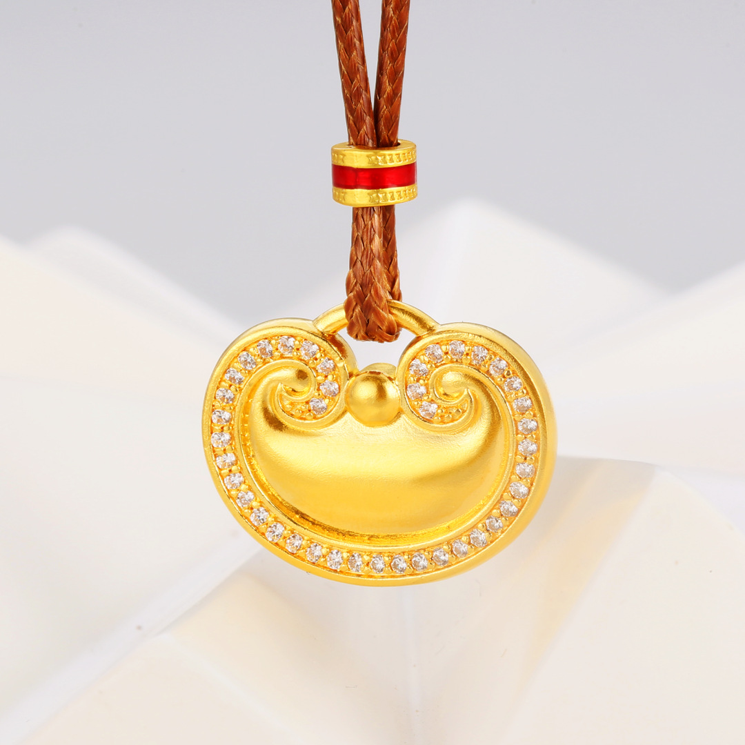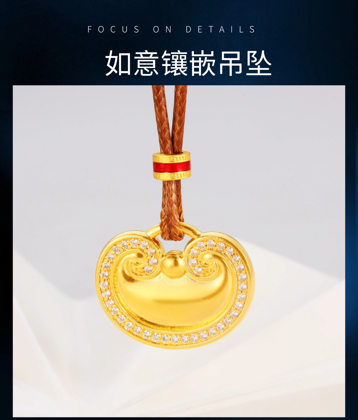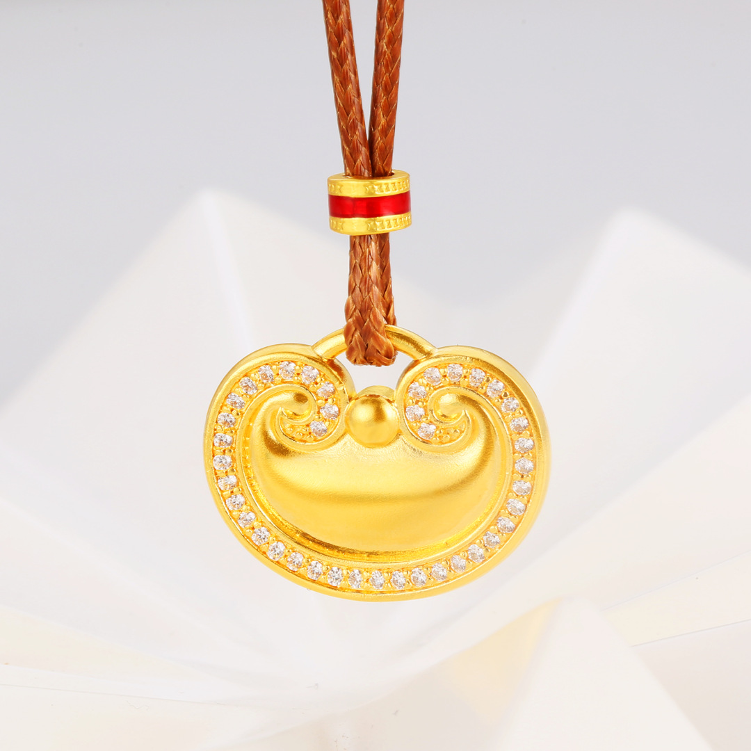 Позолоченный серебряный кулон Zhou Bai Na с инкрустацией Ruyi, небольшой слиток, модный универсальный кулон Ruyi в стиле ретро-XQDZ0020