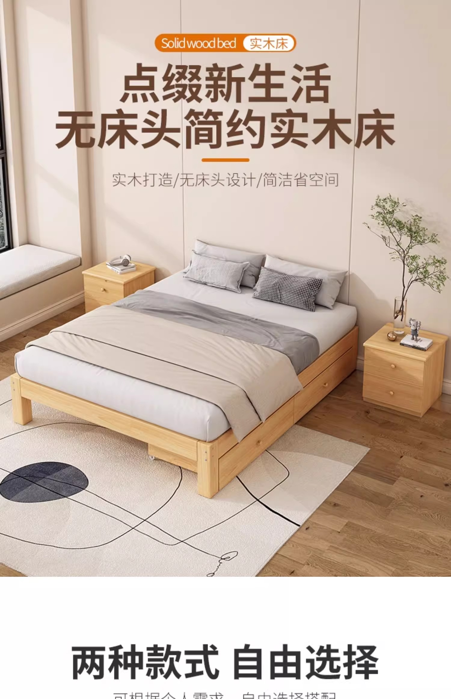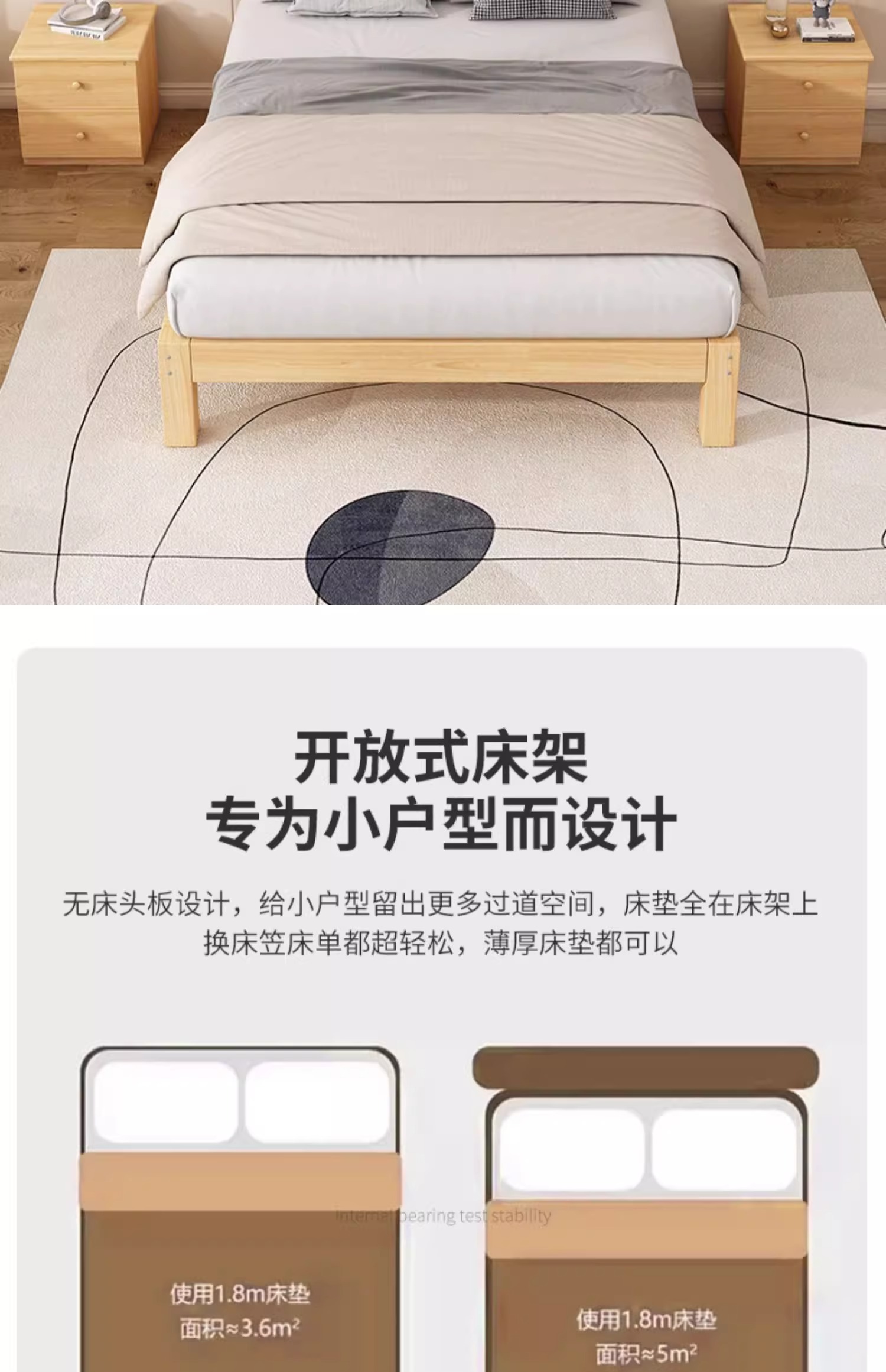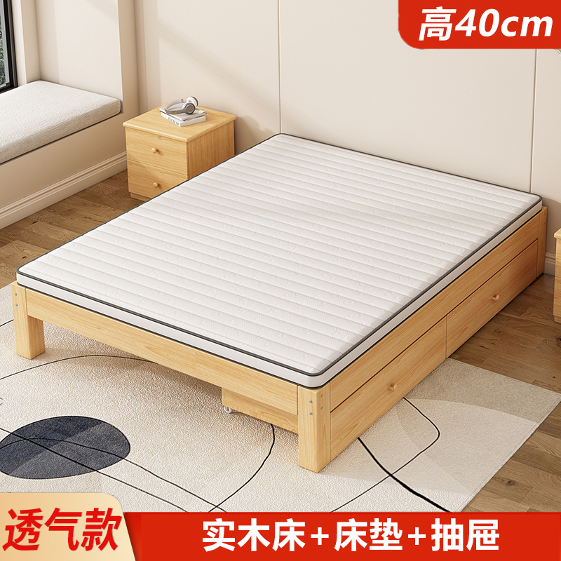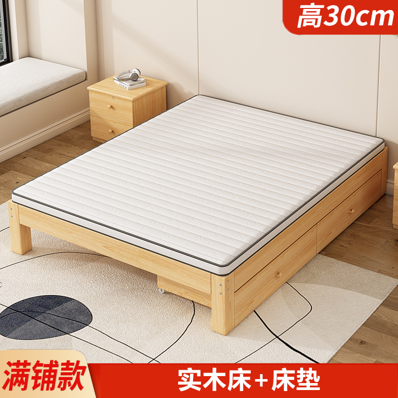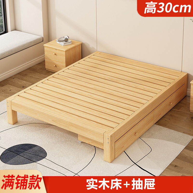 Каркас кровати из массива дерева в стиле татами, без прикроватной тумбочки, для аренды комнаты, B&B, низкая кровать, односпальная кровать для дома