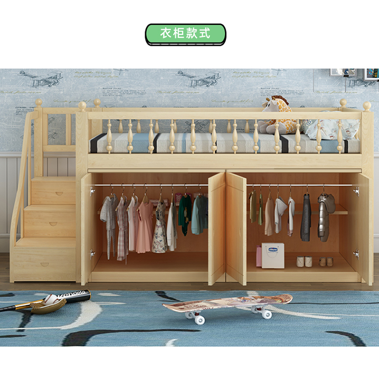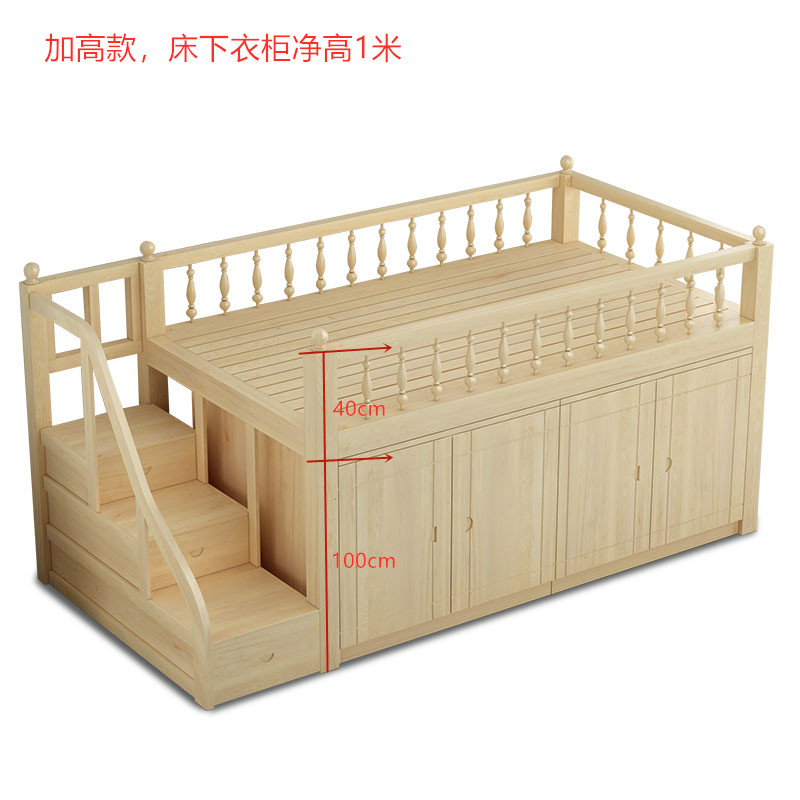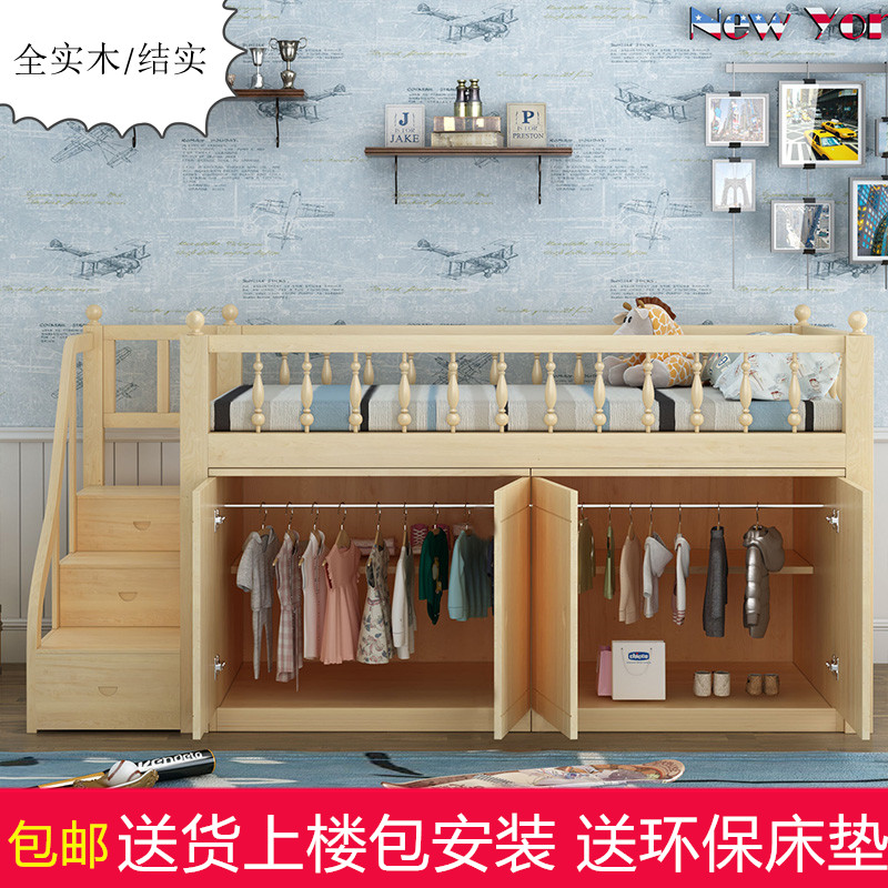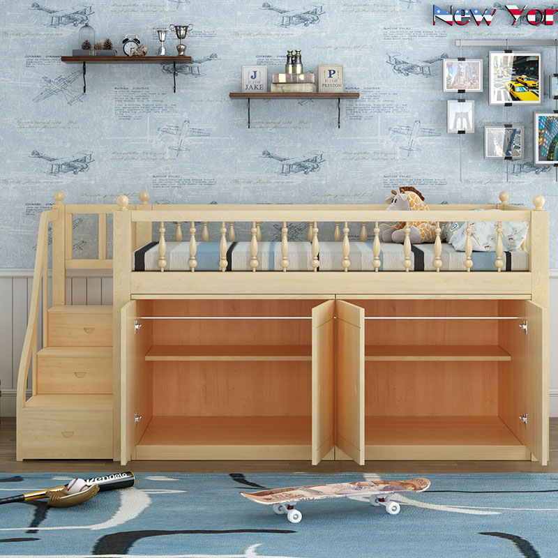 Шкаф для взрослых из цельного дерева, детская кровать средней высоты, шкаф под кроватью, многофункциональная кровать для хранения большой вместимости, современная и простая