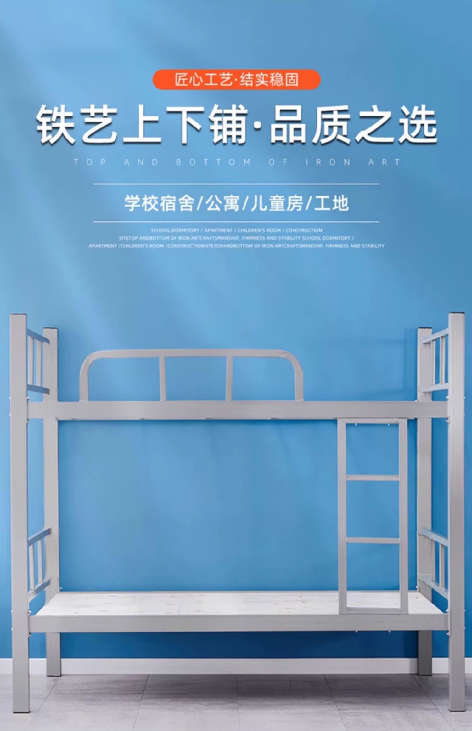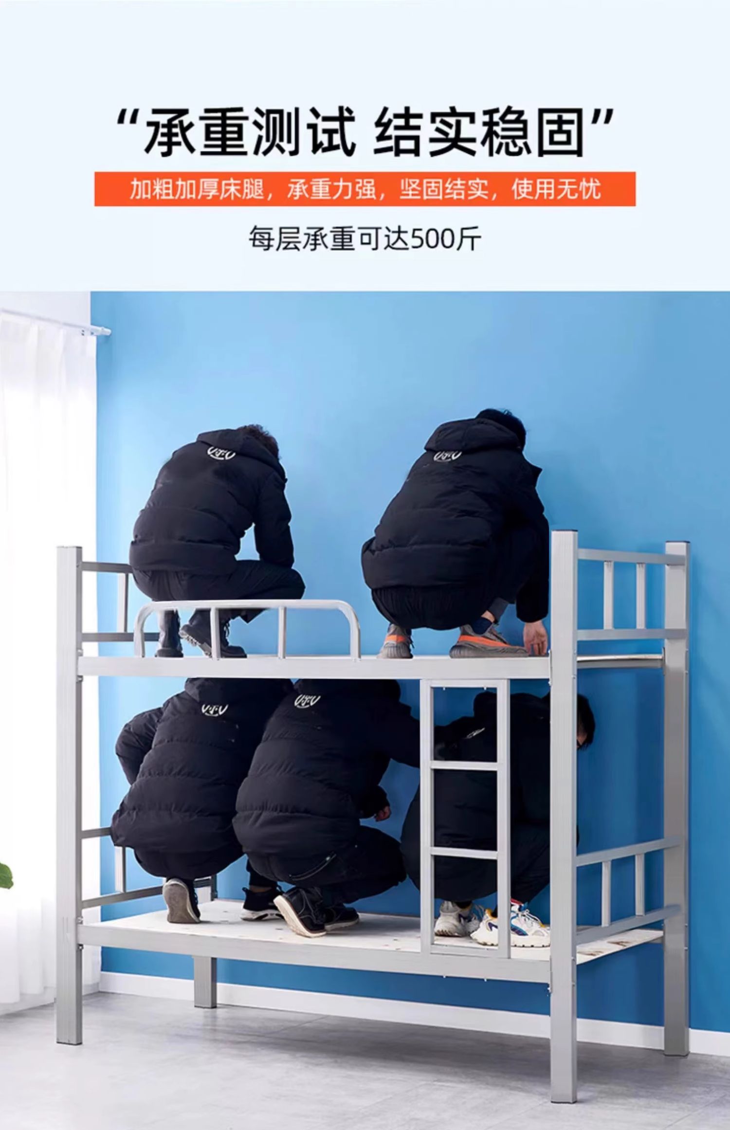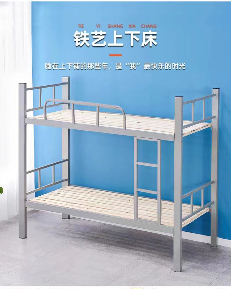 Двухъярусная кровать из железа для общежития персонала, двухъярусная односпальная кровать для студентов, двухэтажная кровать с железным каркасом, кованая конструкция с усиленной конструкцией.