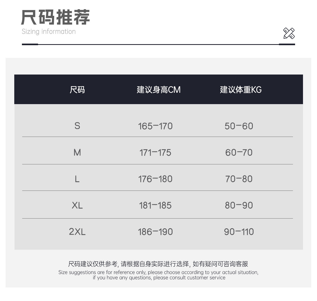 S; M; L; XL; XXL