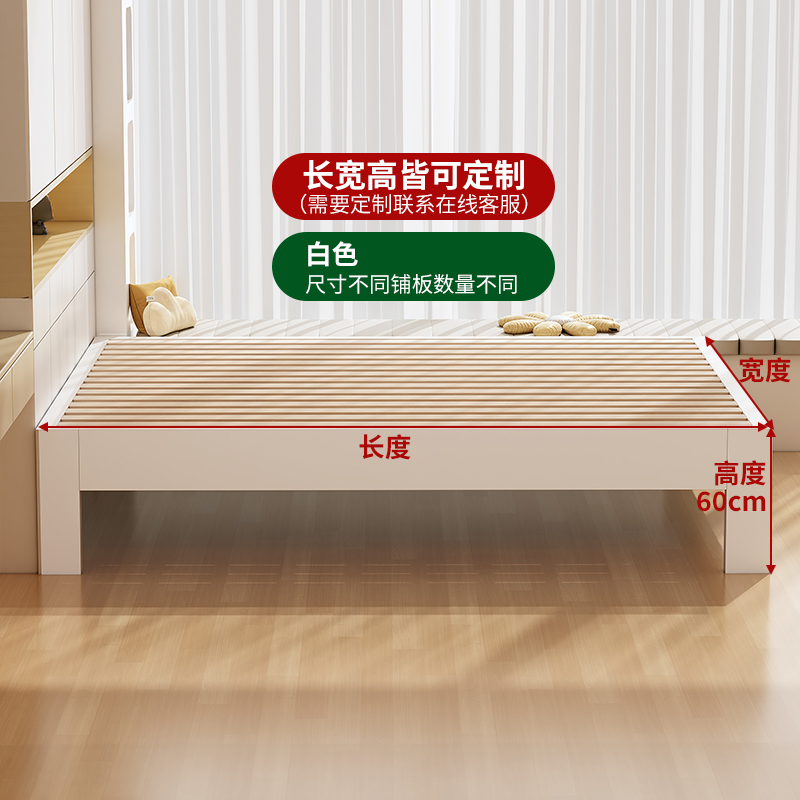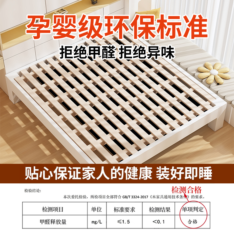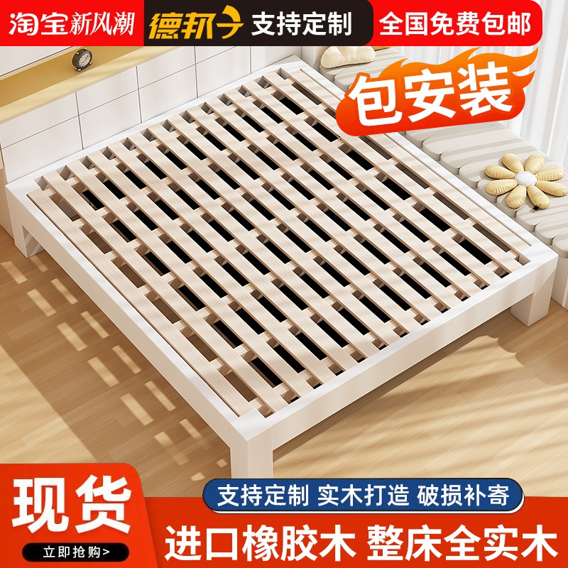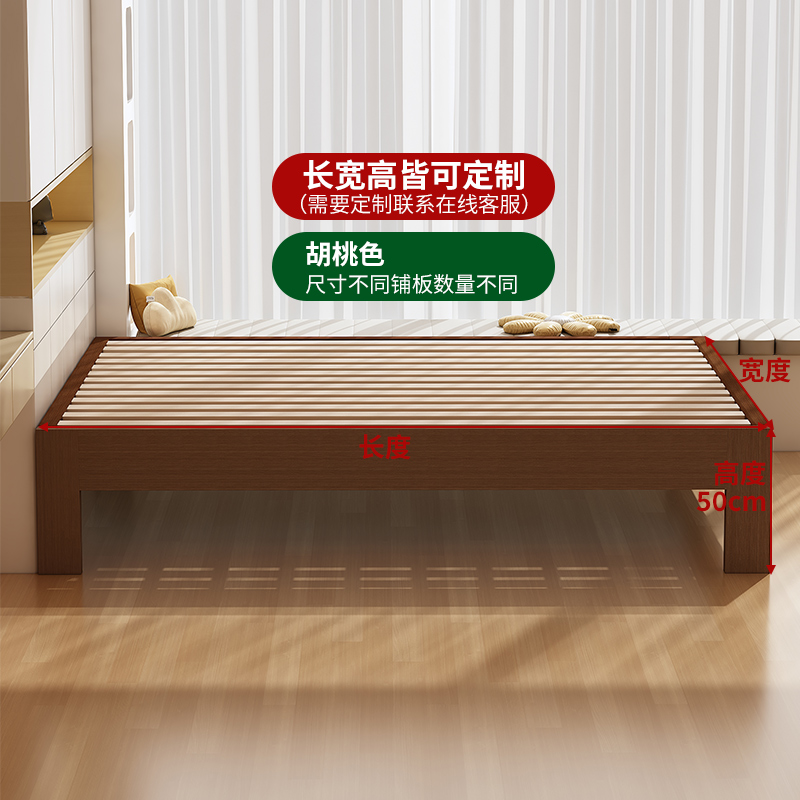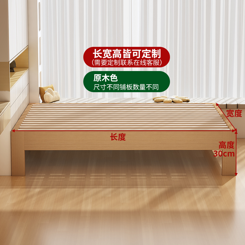 Кровать из массива дерева для аренды дома, двуспальная кровать для спальни, простая кровать 1.5m без изголовья, кровать с реечным каркасом для маленькой квартиры.