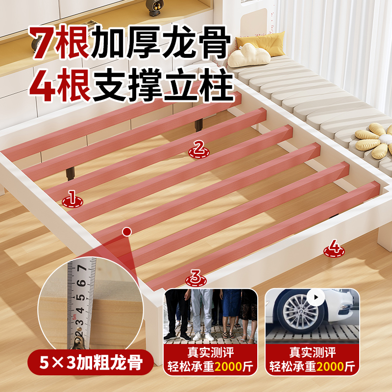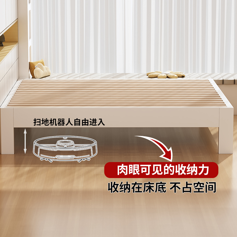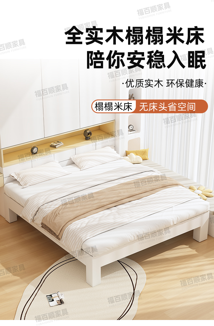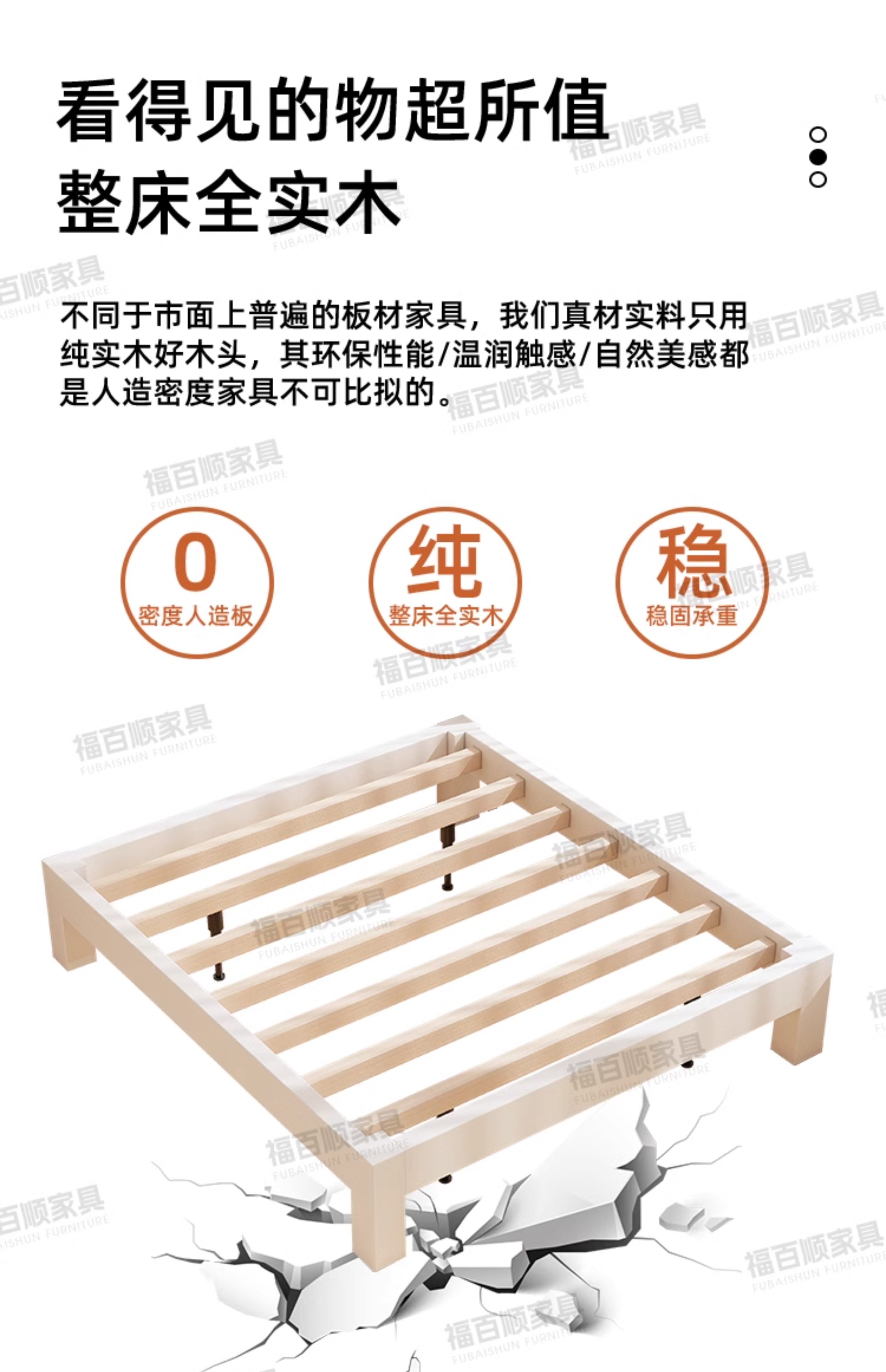 Кровать из массива дерева для аренды дома, двуспальная кровать для спальни, простая кровать 1.5m без изголовья, кровать с реечным каркасом для маленькой квартиры.