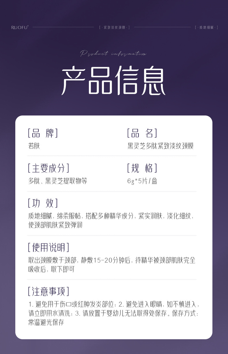 Ruofuhei Ganoderma lucidum пептидная укрепляющая и осветляющая маска для шеи