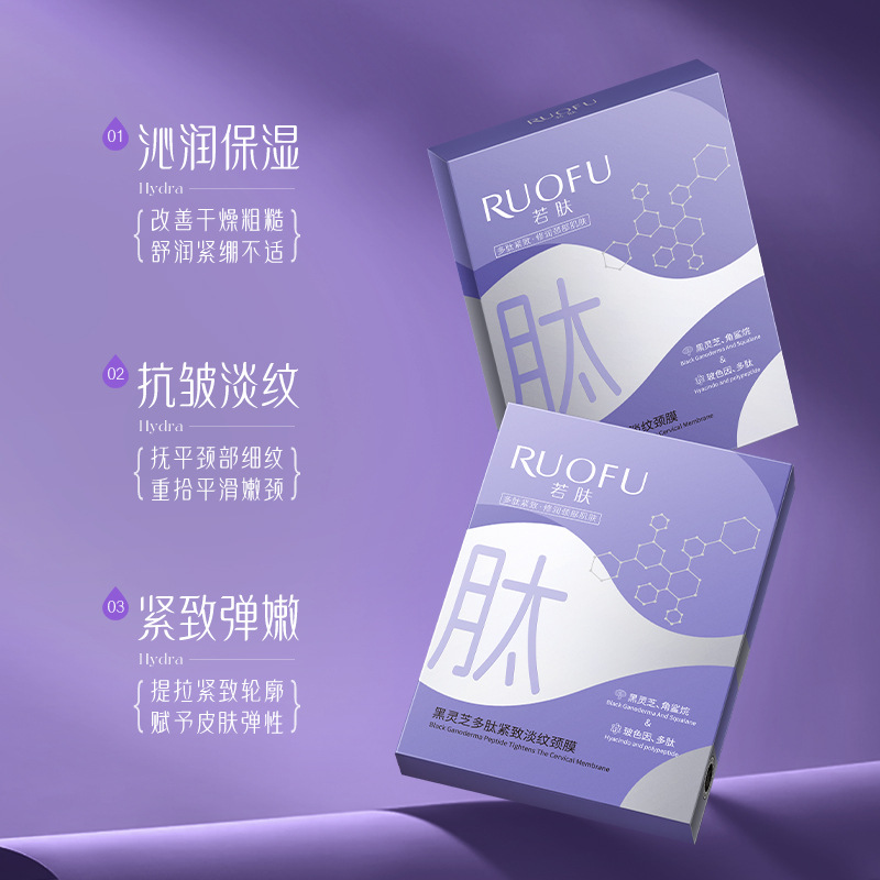 Ruofu Black Ganoderma Polypeptide Укрепляющая и осветляющая маска для шеи Лифтинговая укрепляющая и осветляющая линии шеи Красота лебединой шеи Патч для ухода за шеей