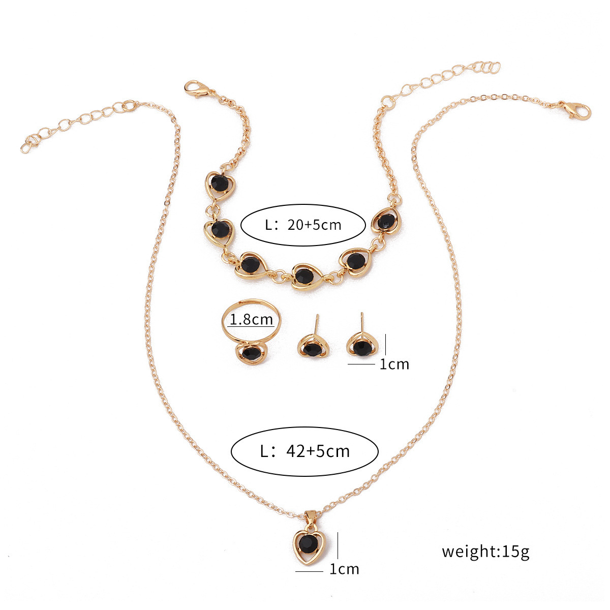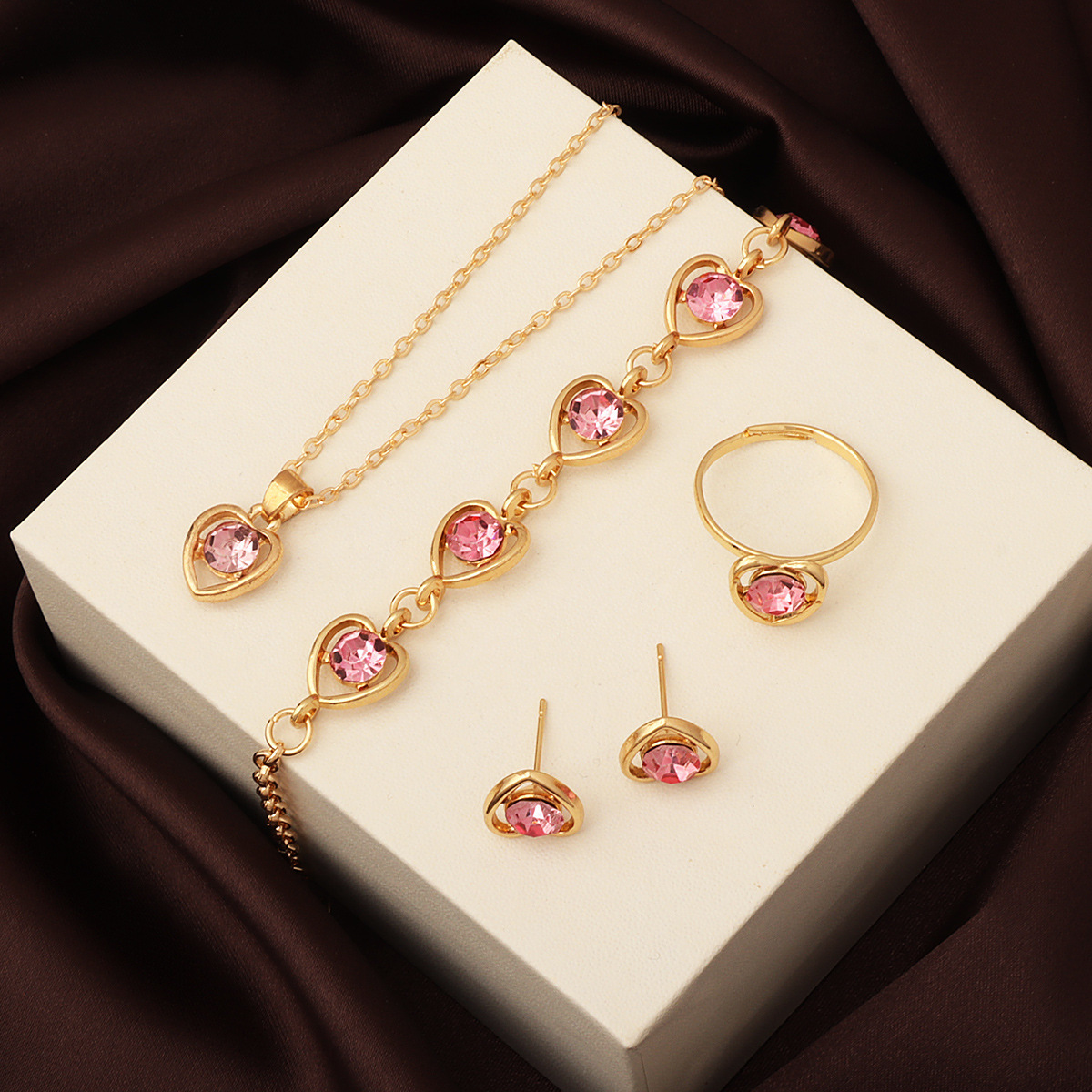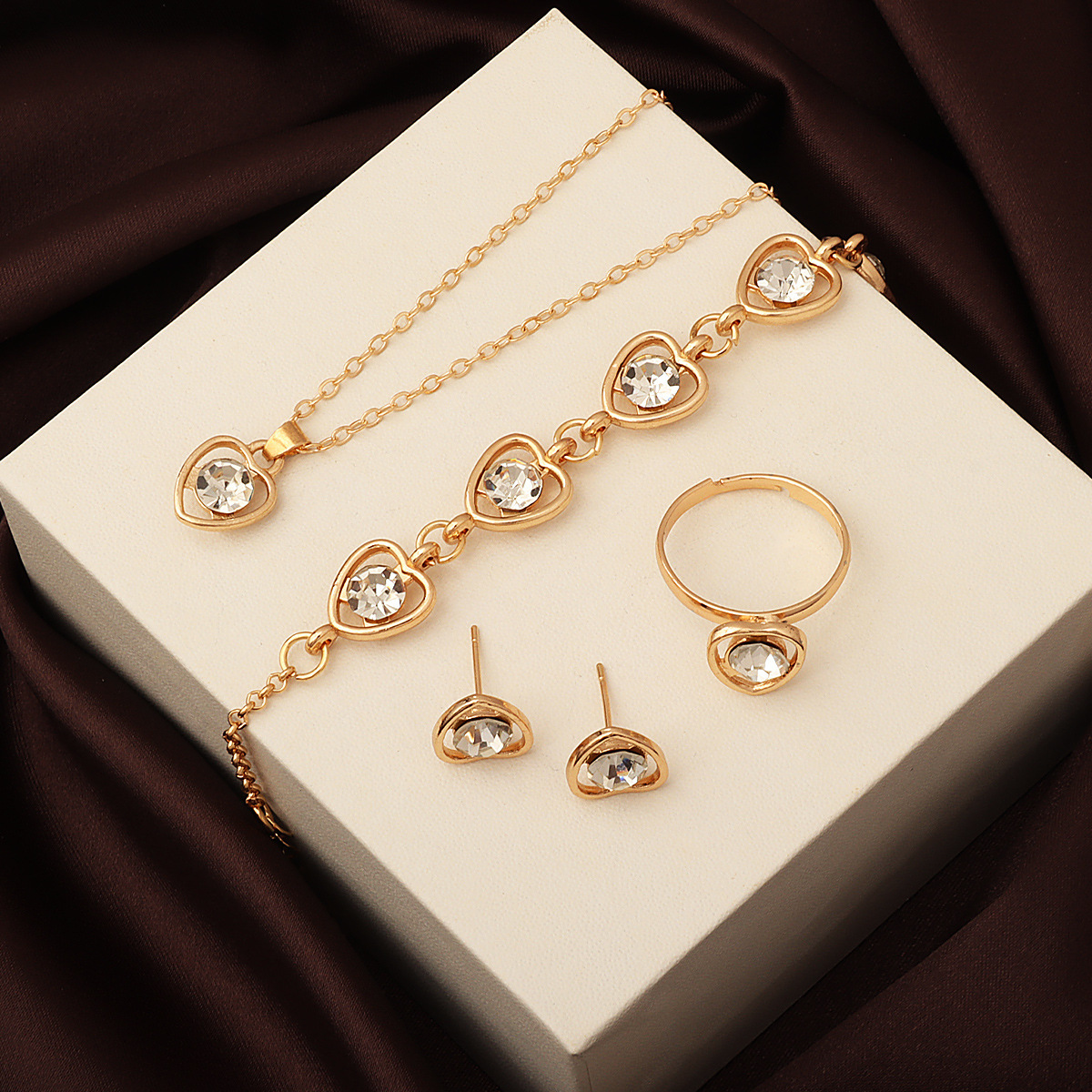 Европейский и американский хит продаж, модный легкий роскошный полый комплект в форме сердца, ожерелье, серьги, кольцо, браслет, комплект из четырех предметов, оптовая продажа, готовый склад