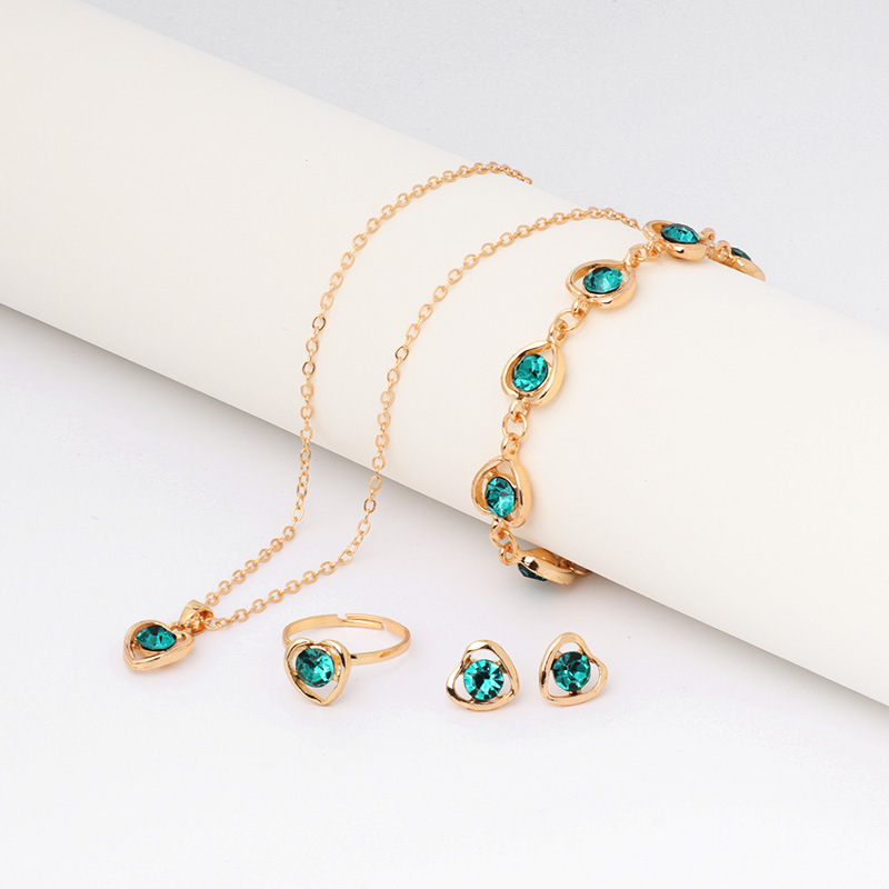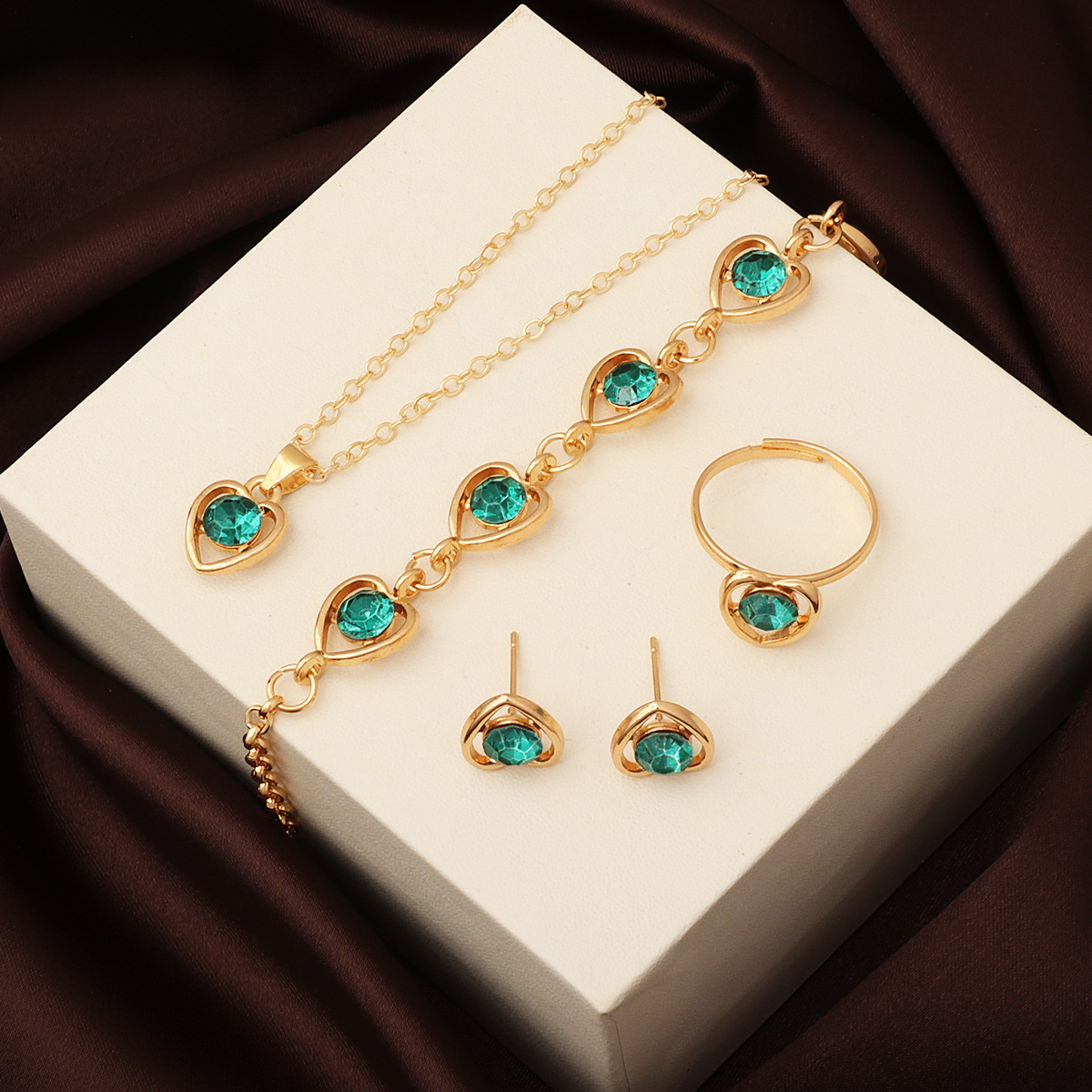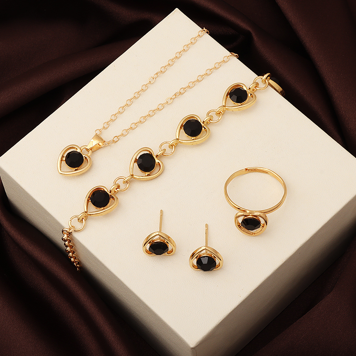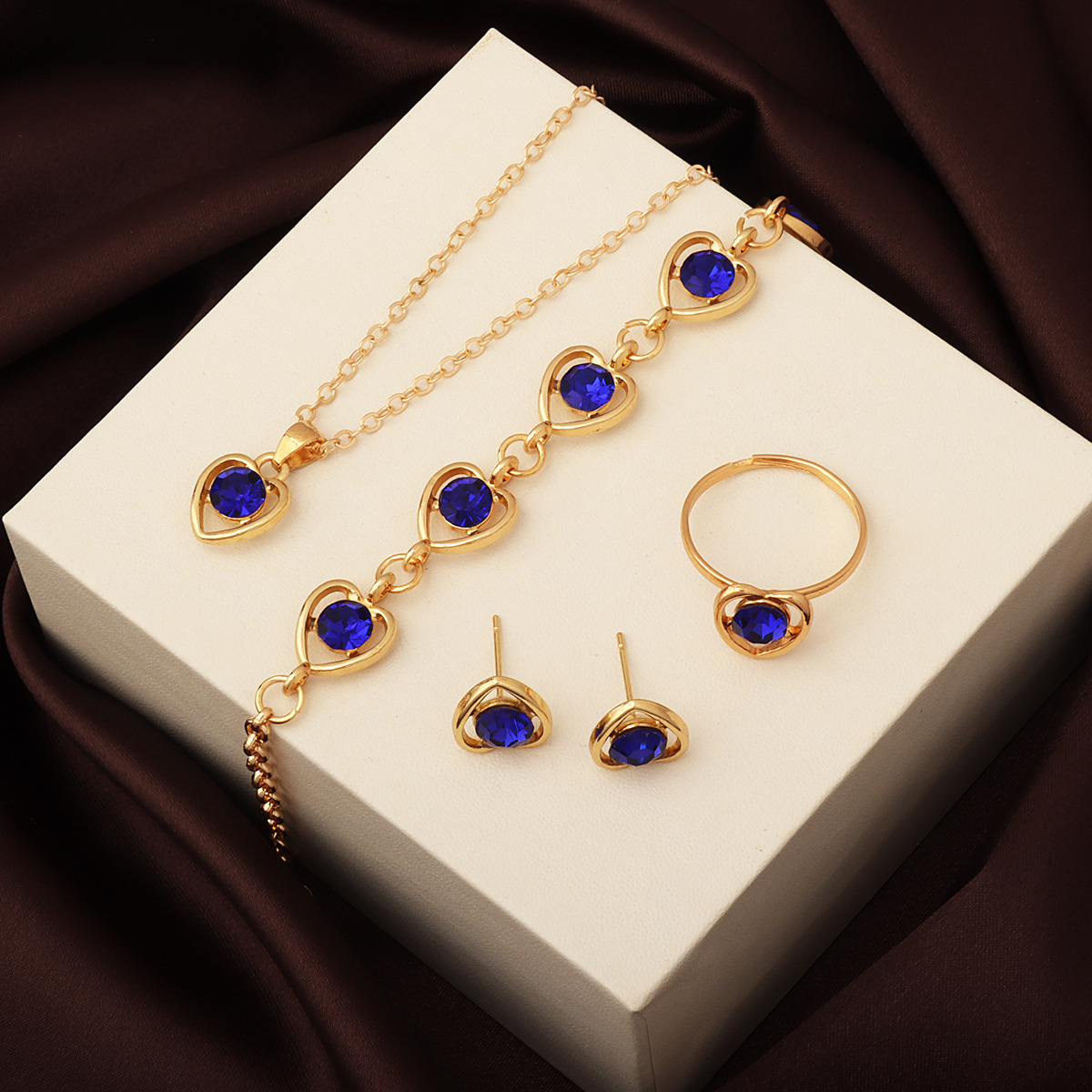 Европейский и американский хит продаж, модный легкий роскошный полый комплект в форме сердца, ожерелье, серьги, кольцо, браслет, комплект из четырех предметов, оптовая продажа, готовый склад