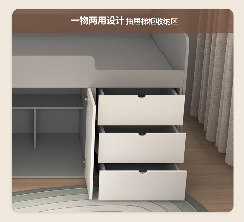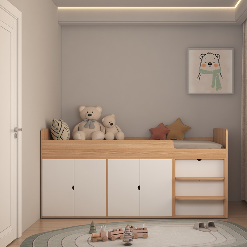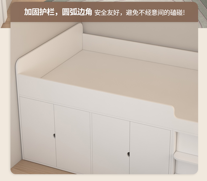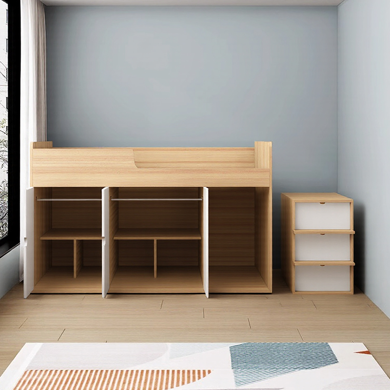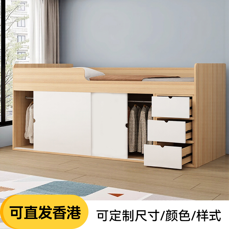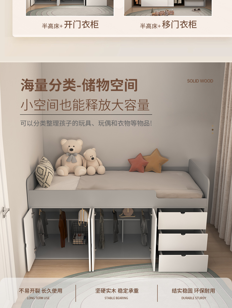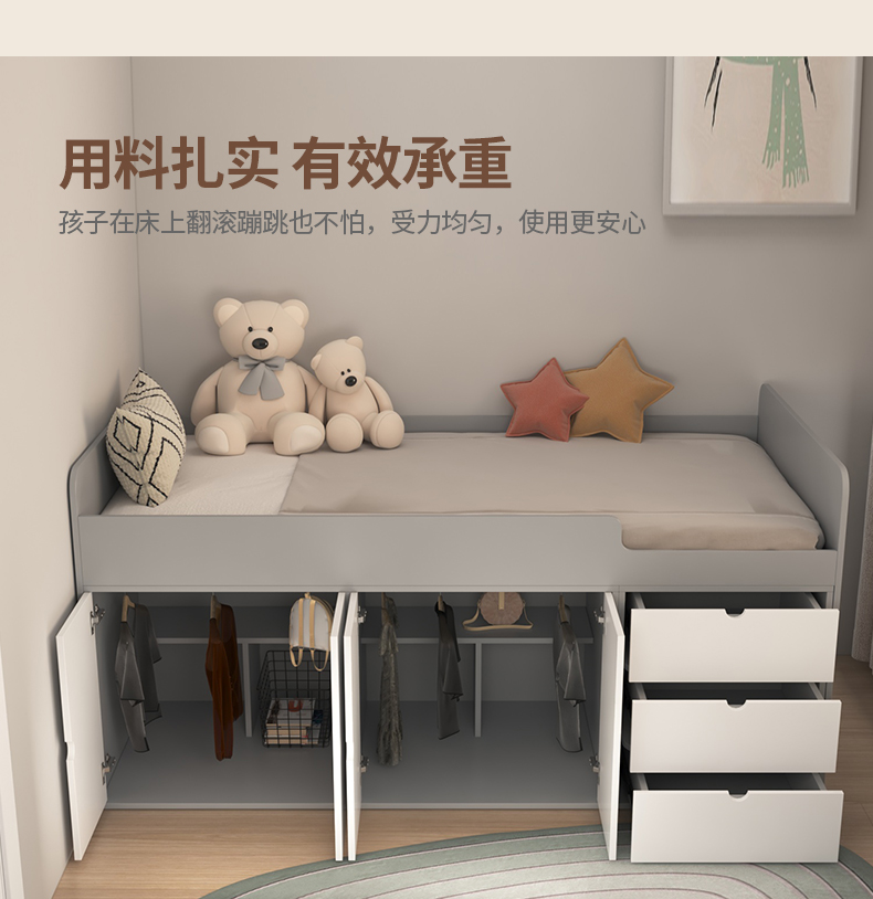Небольшая двухъярусная кровать для маленькой квартиры с многофункциональным ограждением, детская двухъярусная кровать из массива дерева для маленькой квартиры с приподнятым шкафом для хранения вещей.