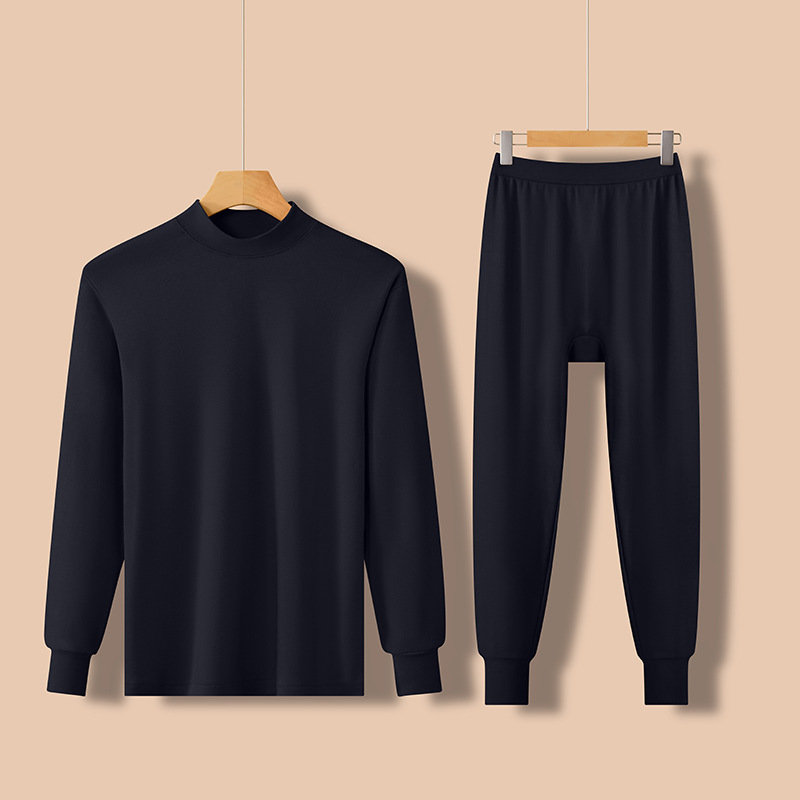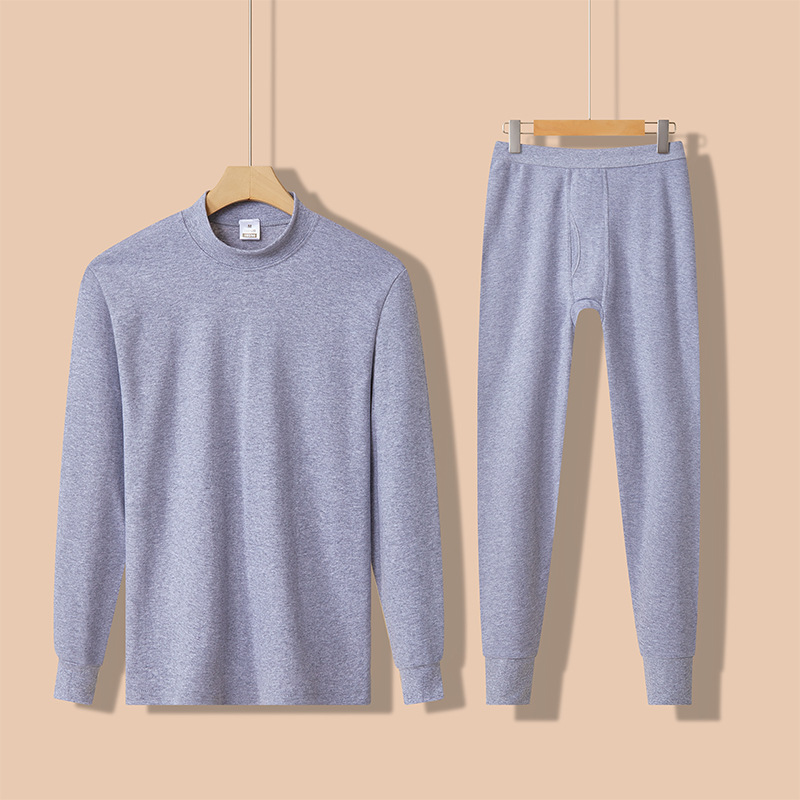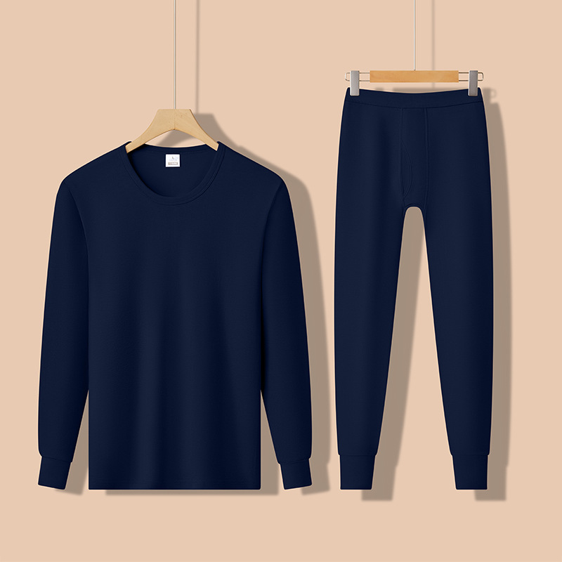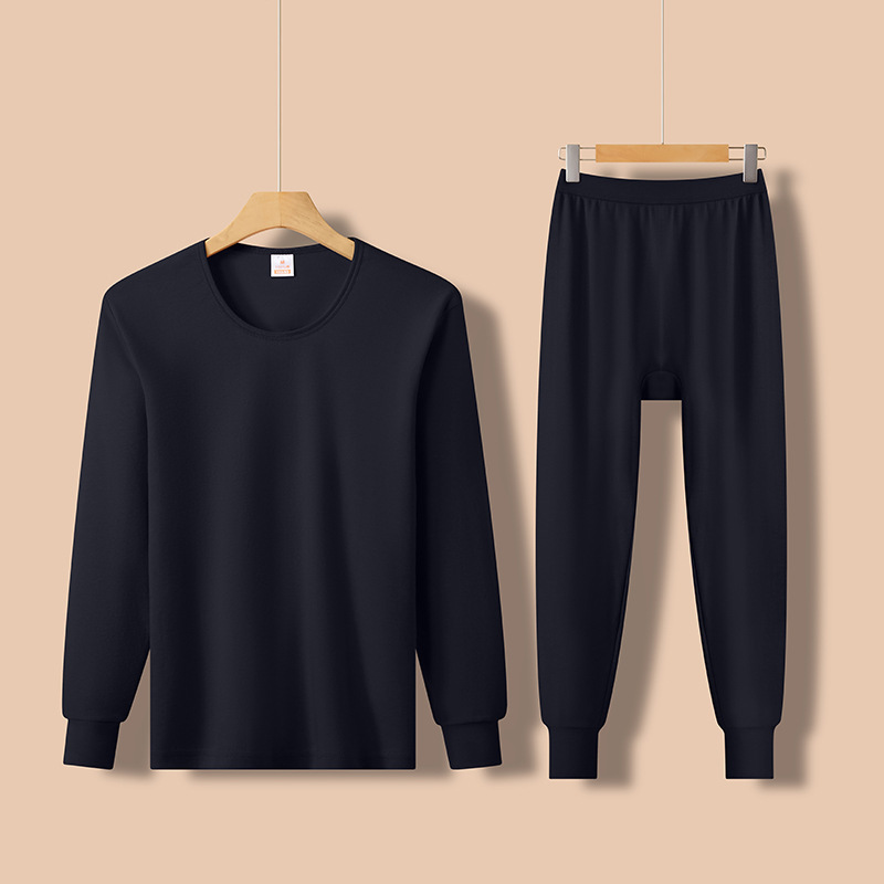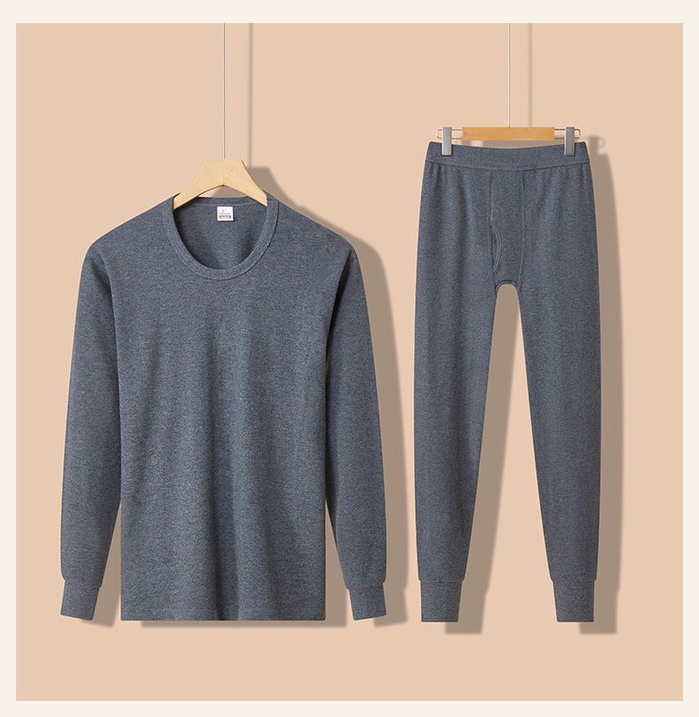 Мужской осенний комплект термобелья, чистый хлопок, тонкий, полный хлопок, теплый, круглый вырез, больших размеров, для среднего и пожилого возраста, оптом, зима.
