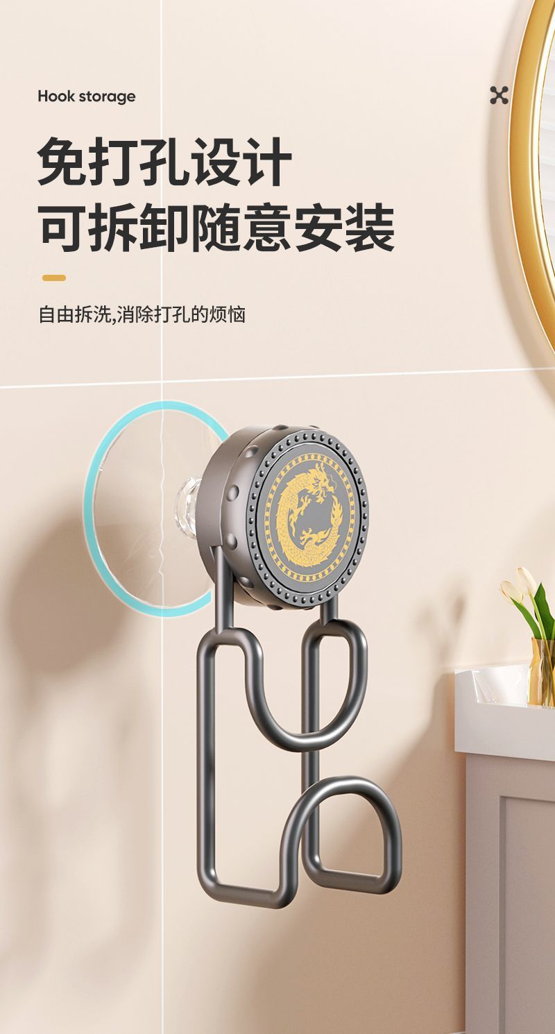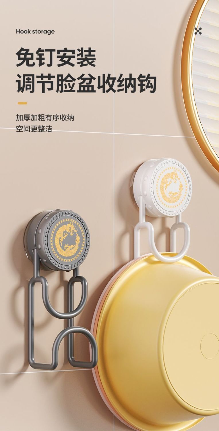 [Доставка в течение 24 часов] Подставка для умывальника с присоской, подвесной крючок для хранения умывальника, вращающийся крючок для умывальника, настенный монтаж без сверления.