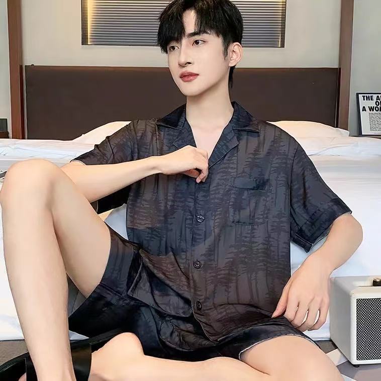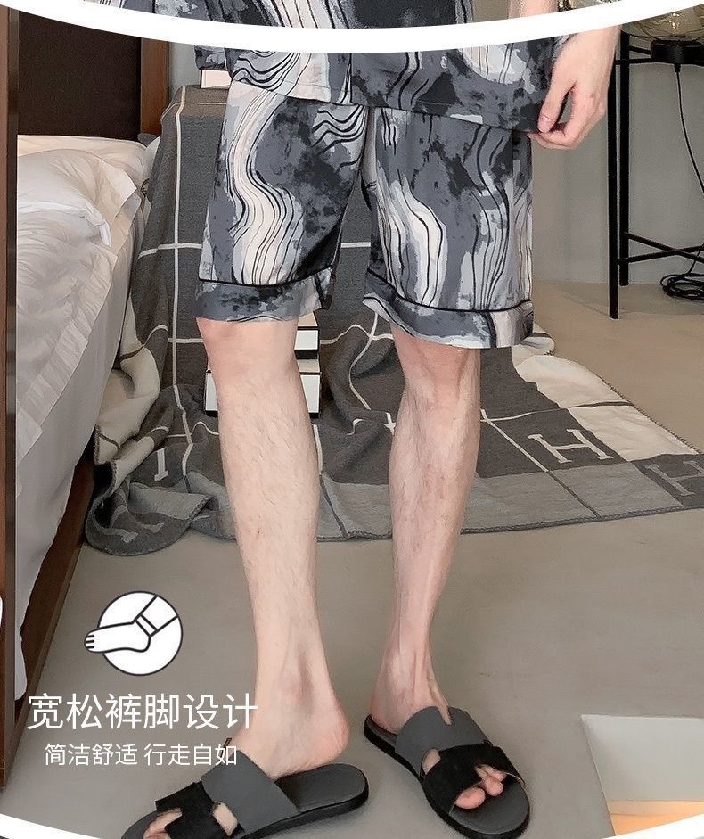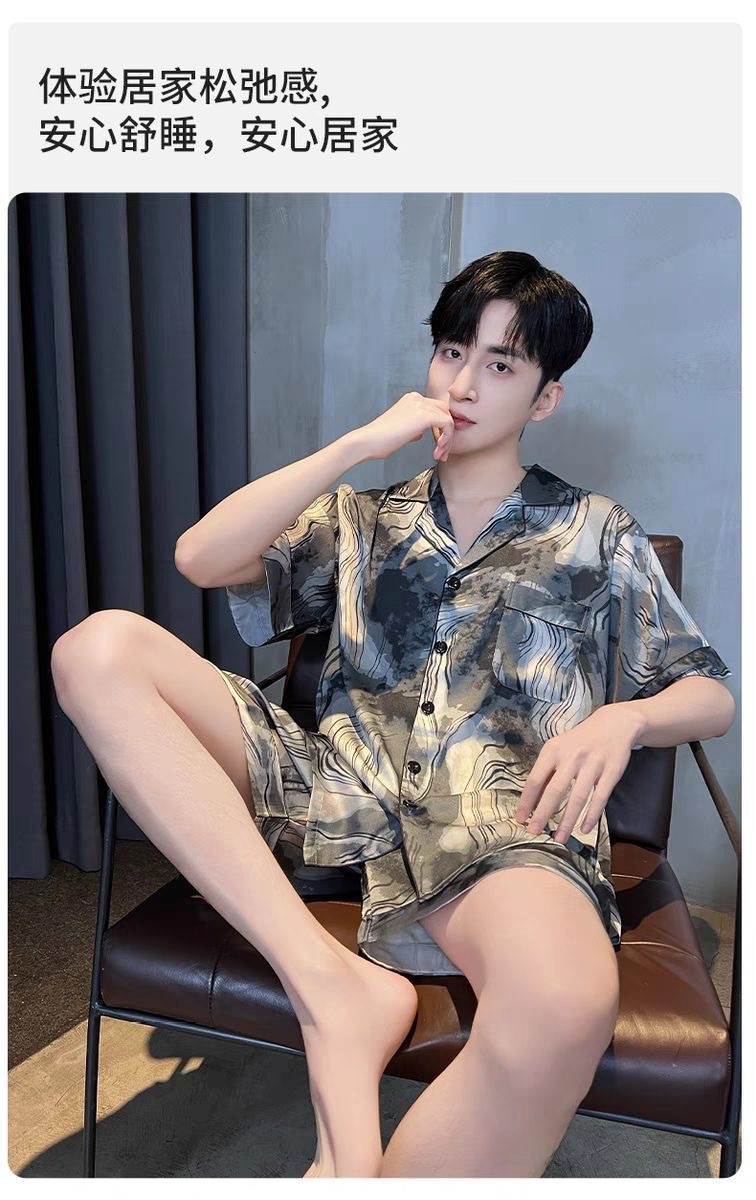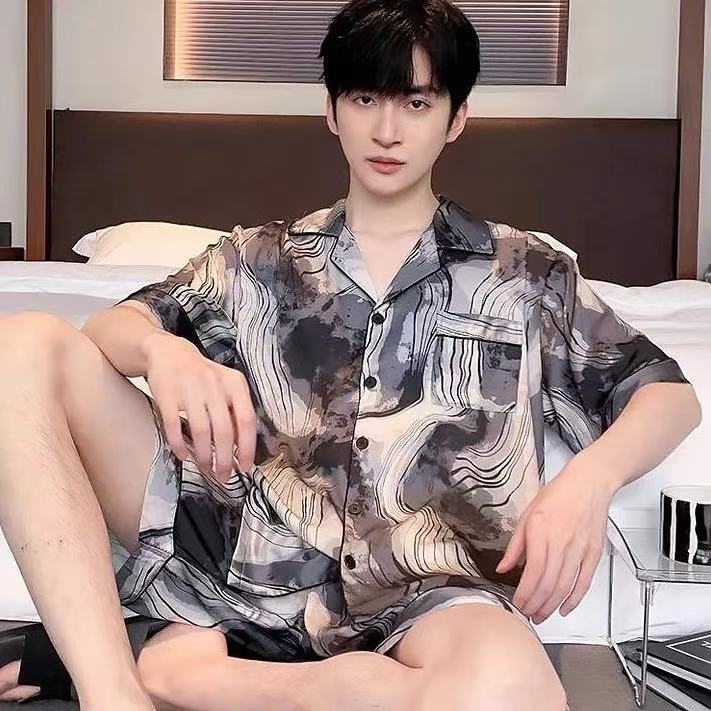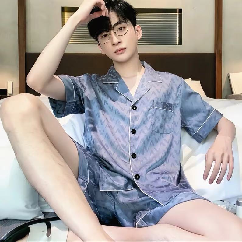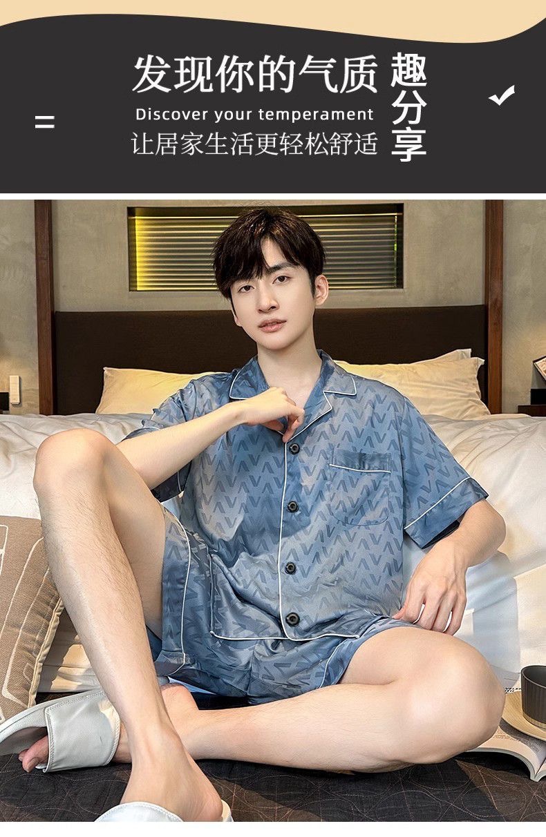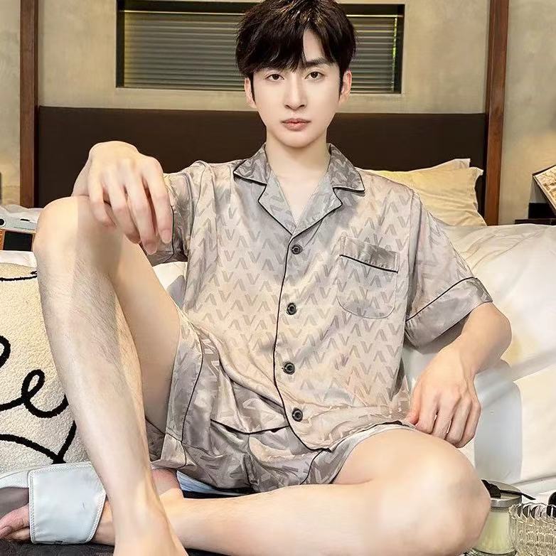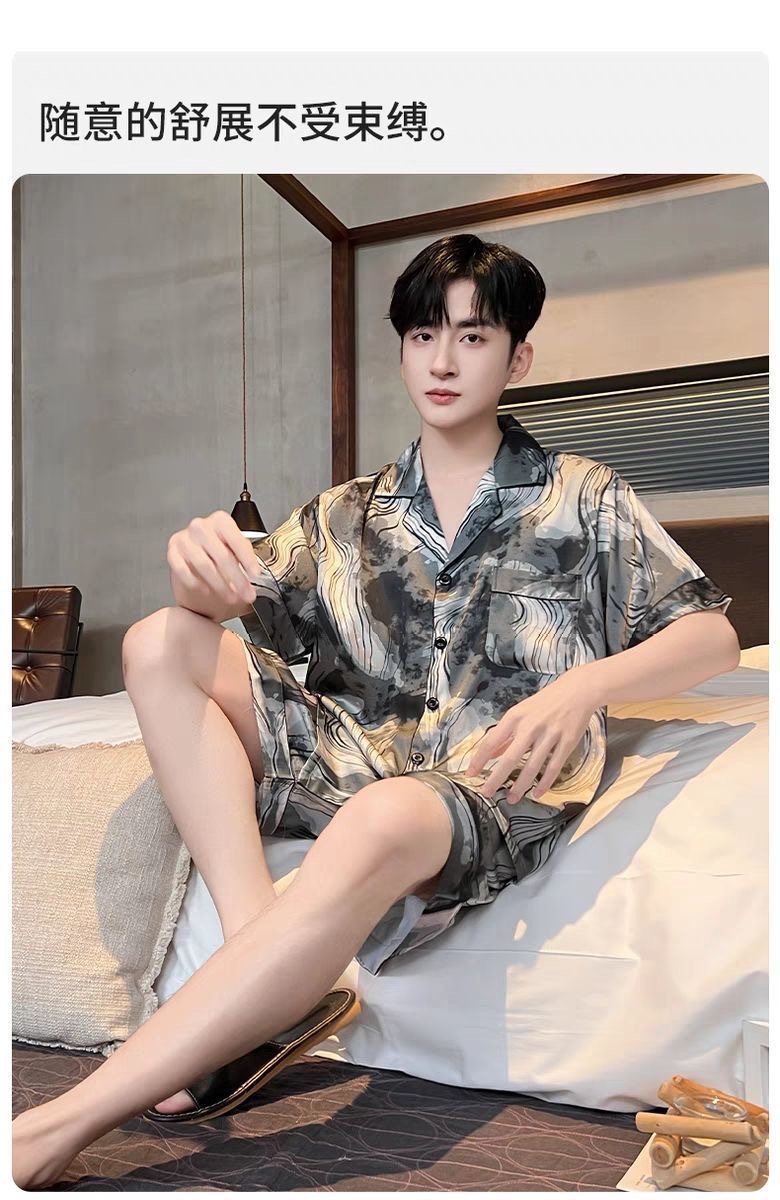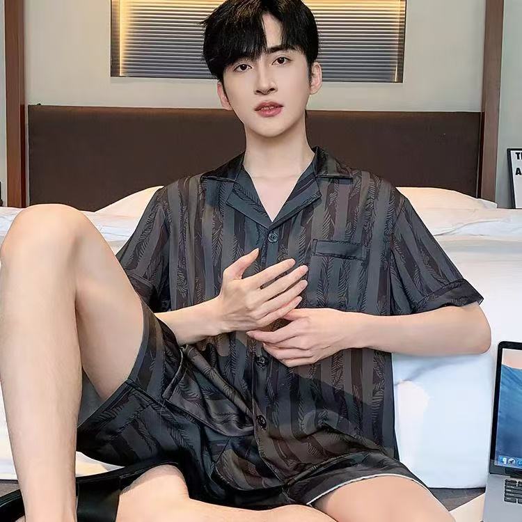 Новые пижамы для мужчин, летние, из ледяного шелка, с короткими рукавами, тонкие, свободные, молодежные, красивые, новые мужские пижамы, летний домашний костюм