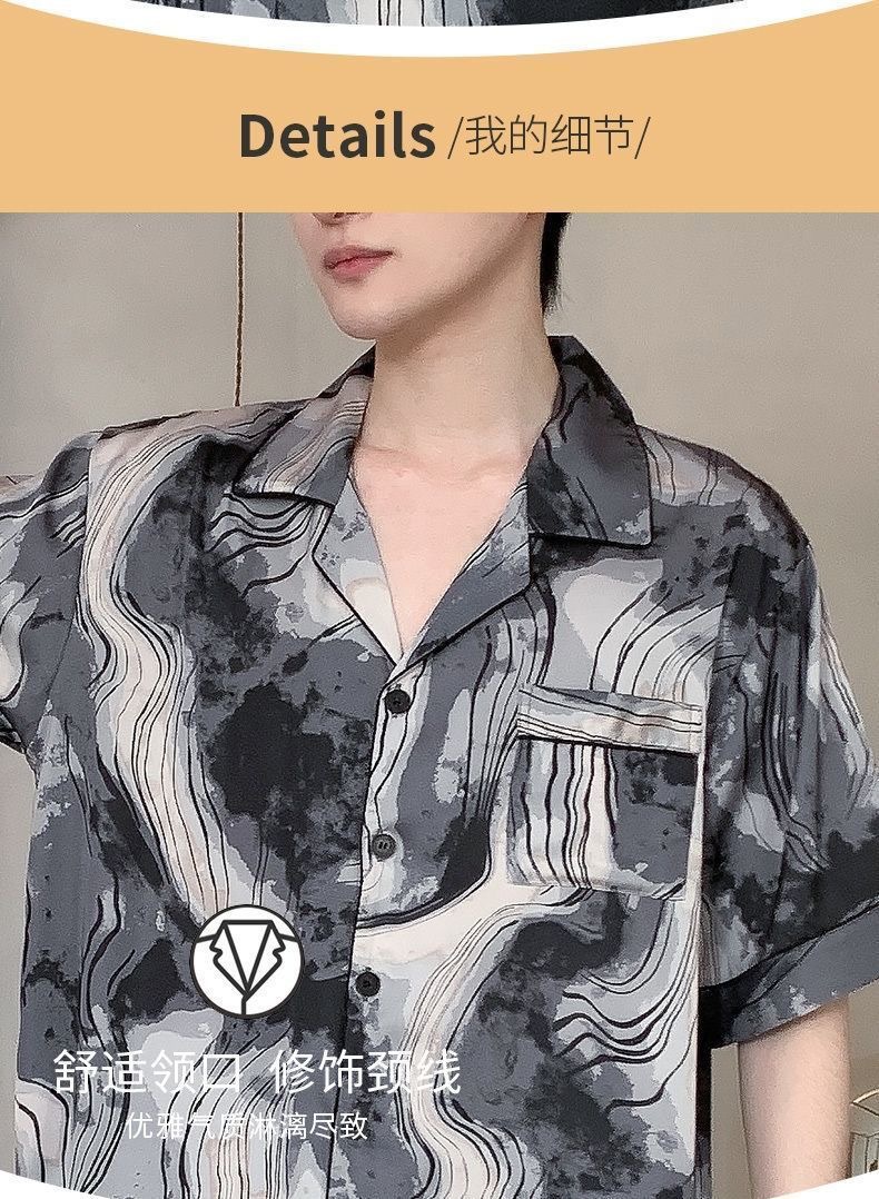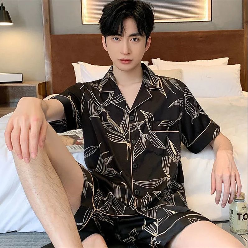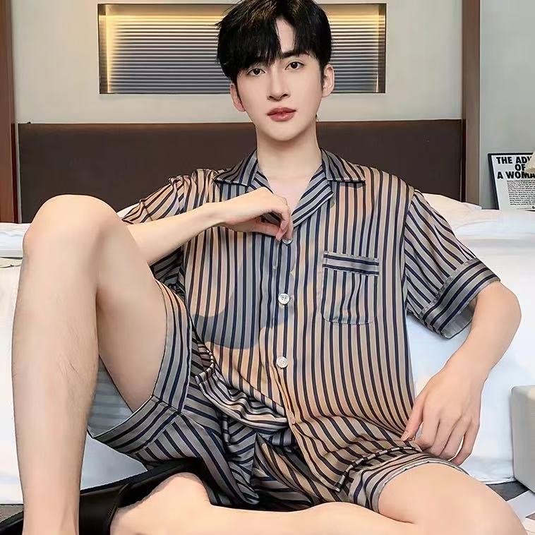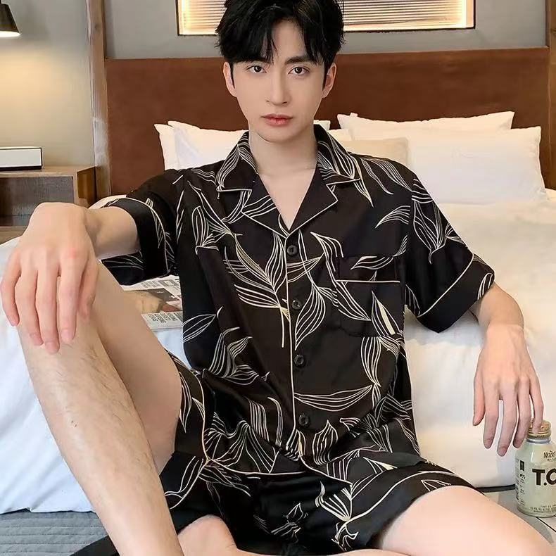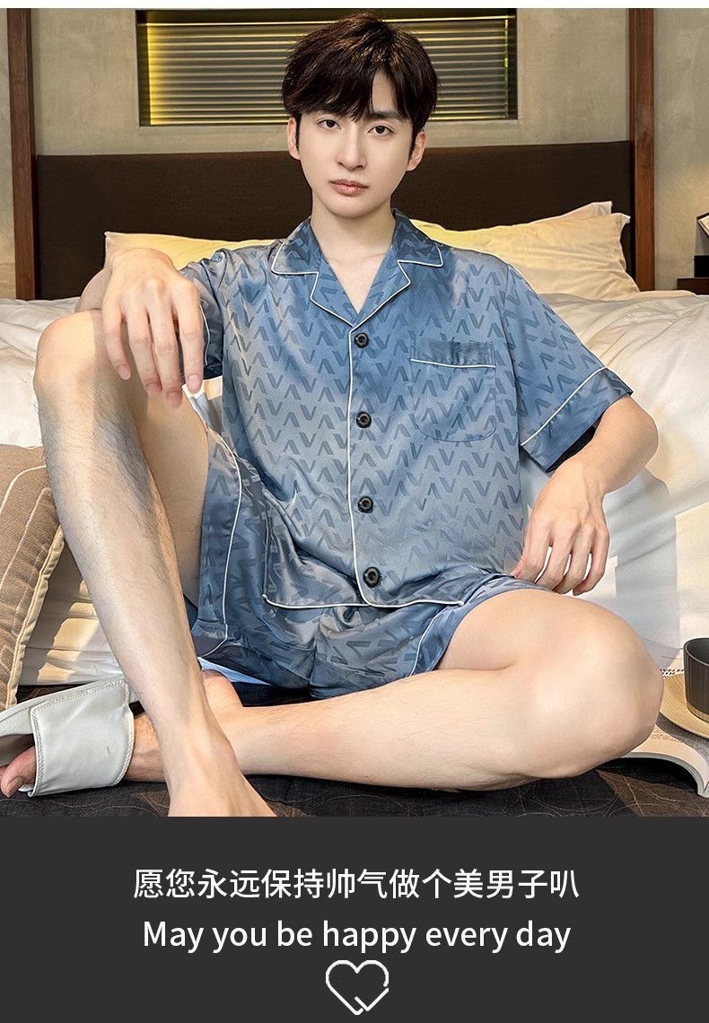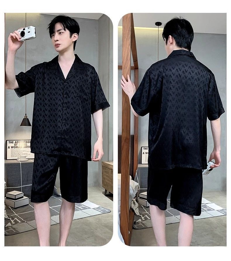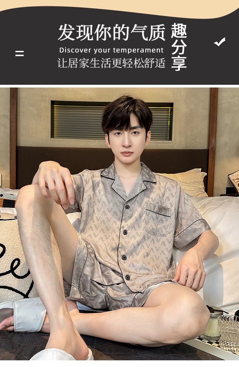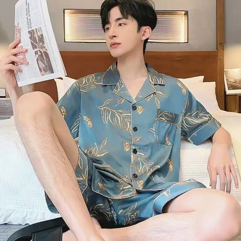 Новые пижамы для мужчин, летние, из ледяного шелка, с короткими рукавами, тонкие, свободные, молодежные, красивые, новые мужские пижамы, летний домашний костюм