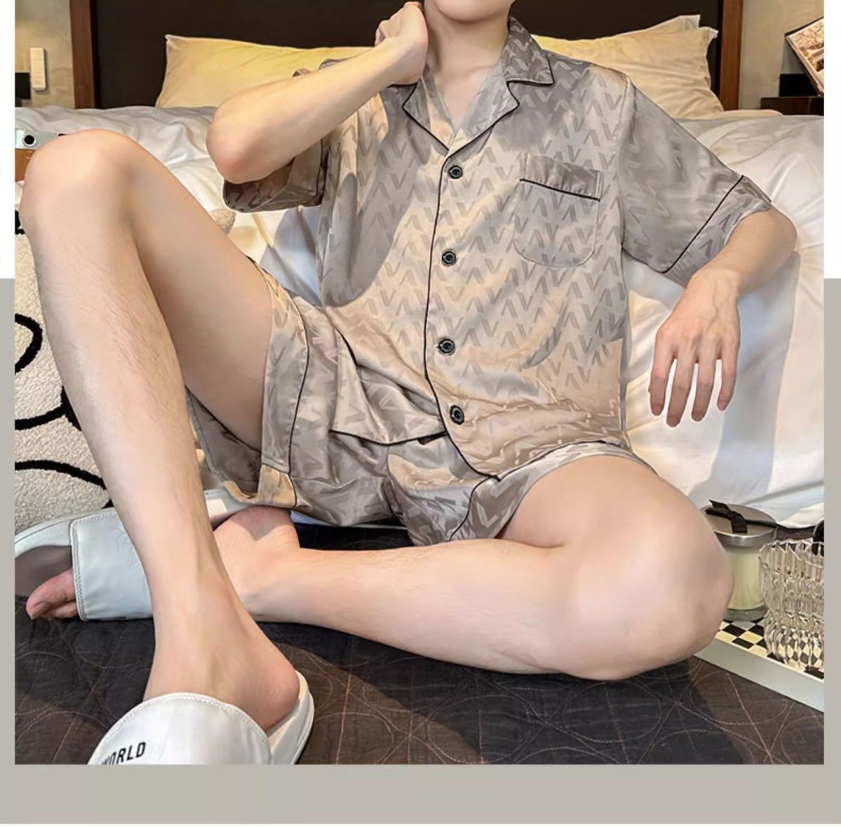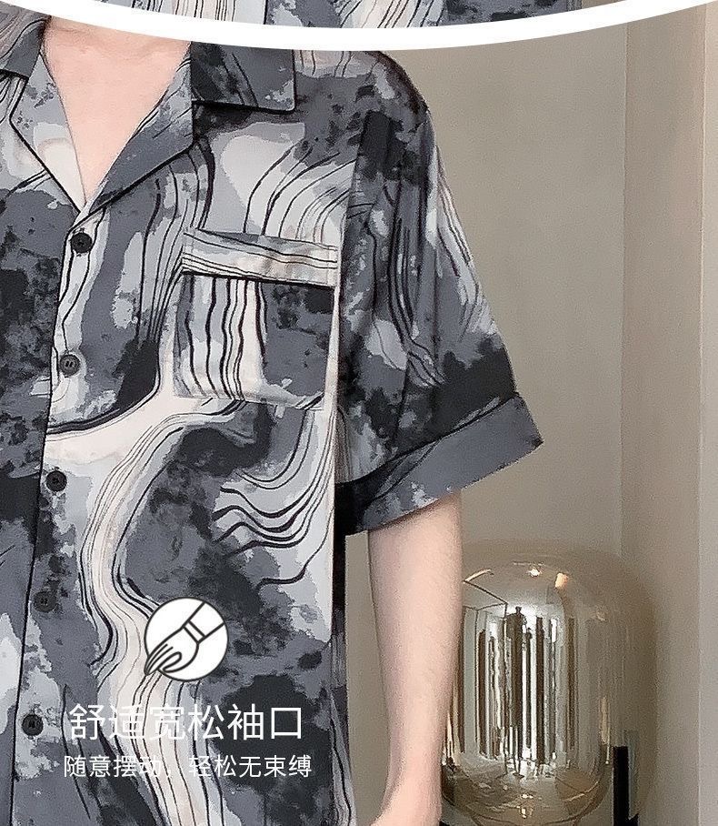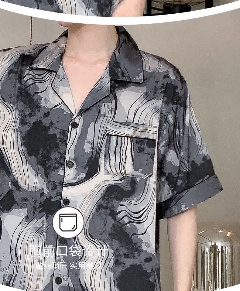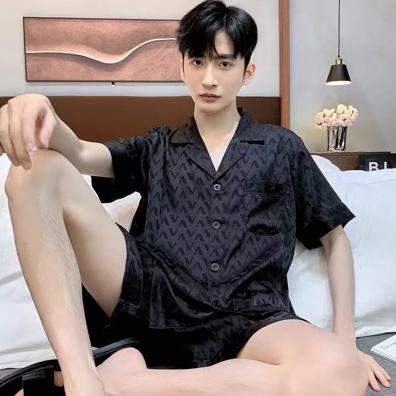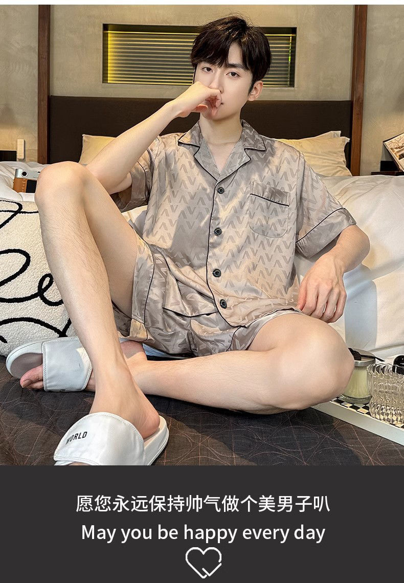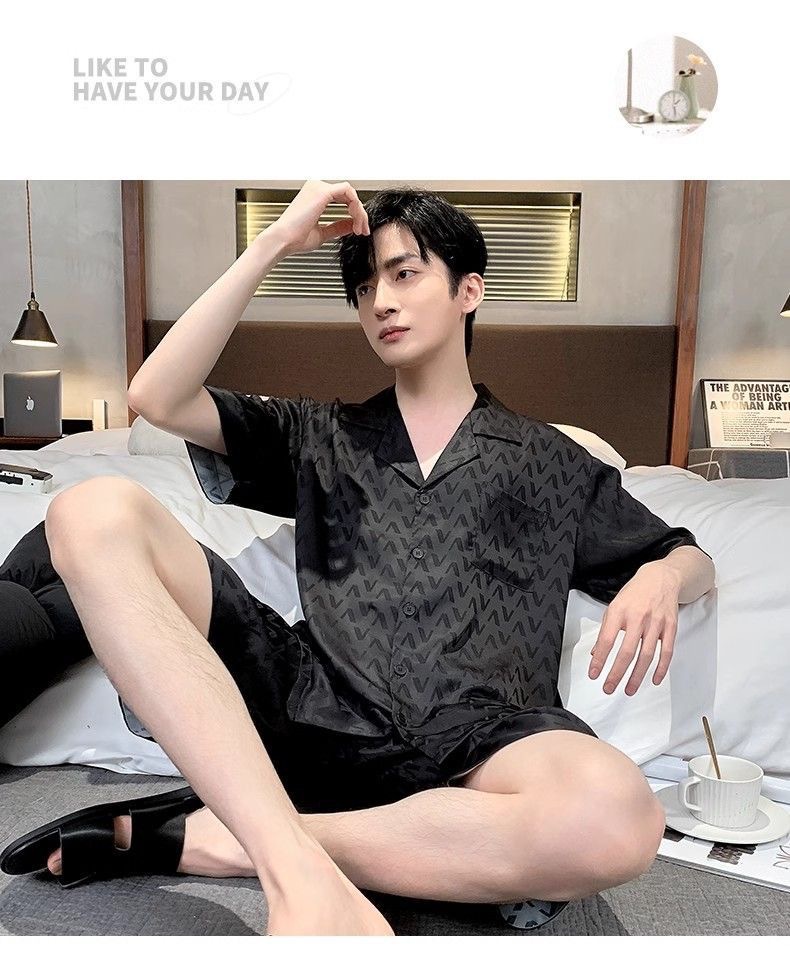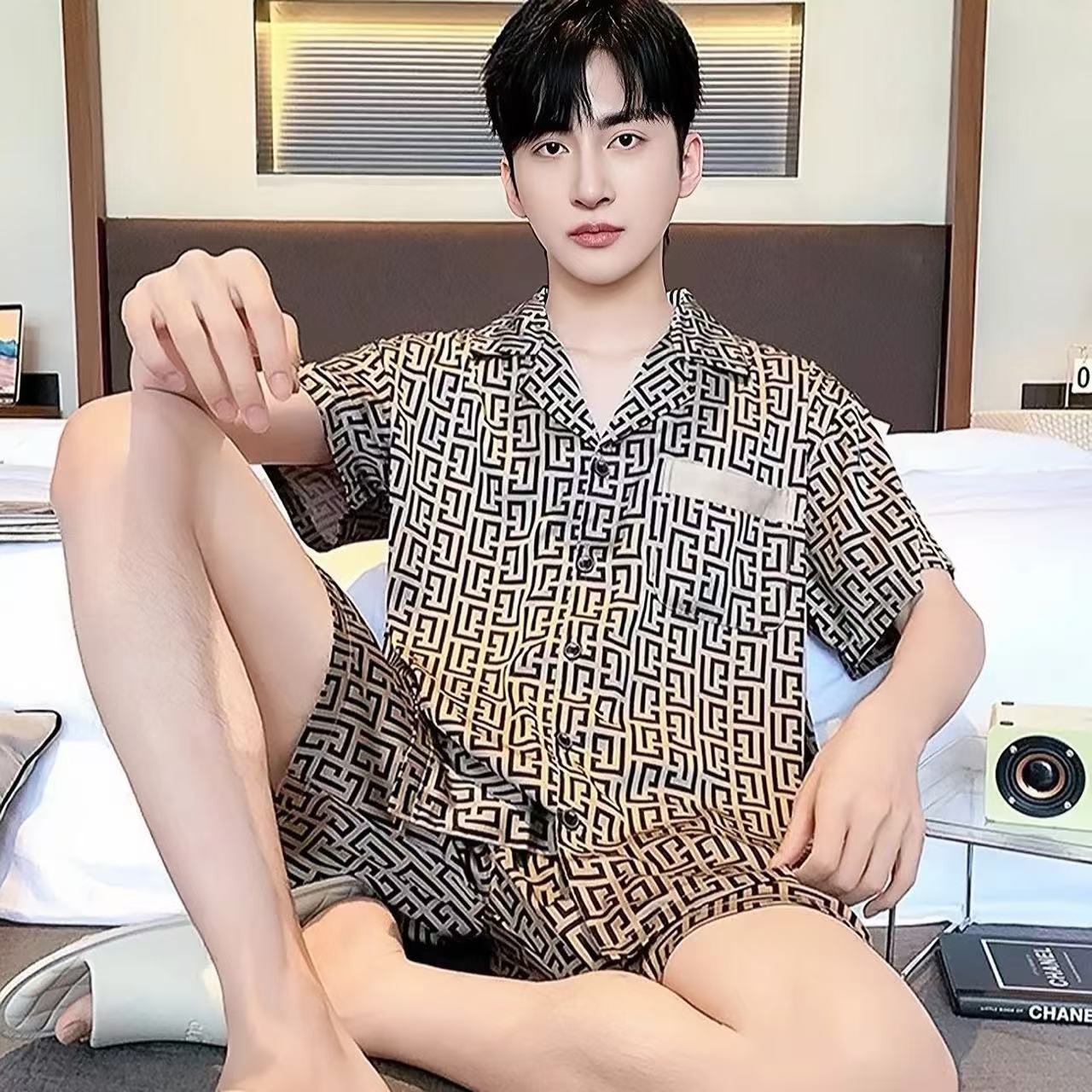 Новые пижамы для мужчин, летние, из ледяного шелка, с короткими рукавами, тонкие, свободные, молодежные, красивые, новые мужские пижамы, летний домашний костюм