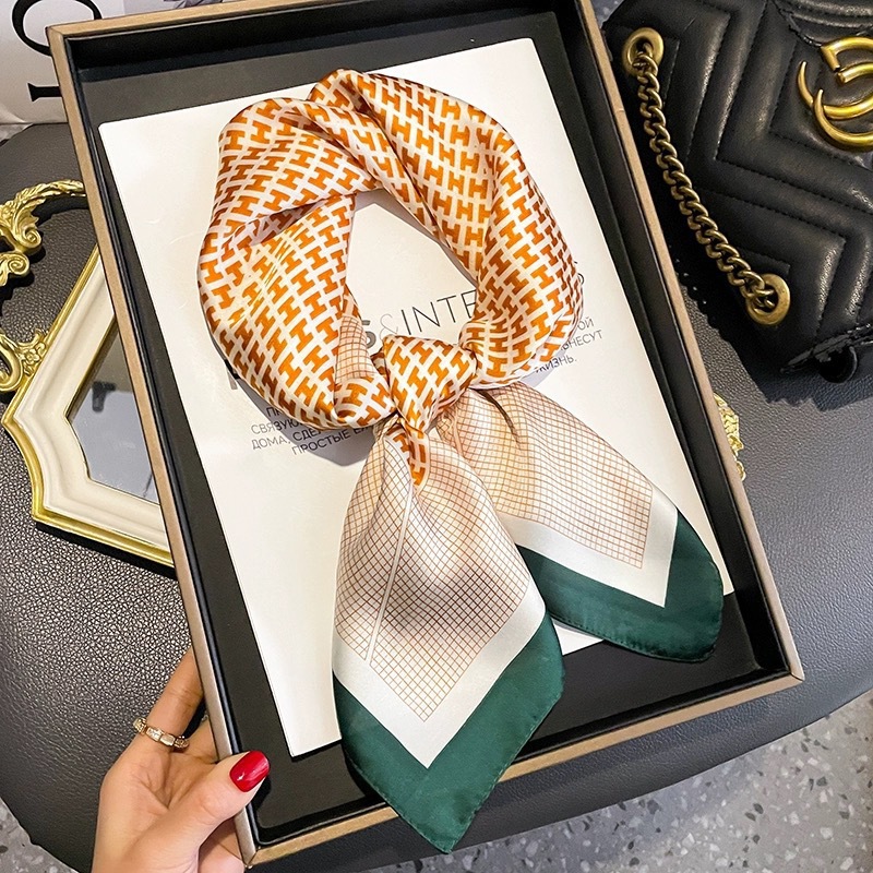 70 шелковых шарфов, женские модные маленькие квадратные шарфы в корейском стиле с буквенным принтом, декоративные шарфы для рабочего места, шарфы оптом