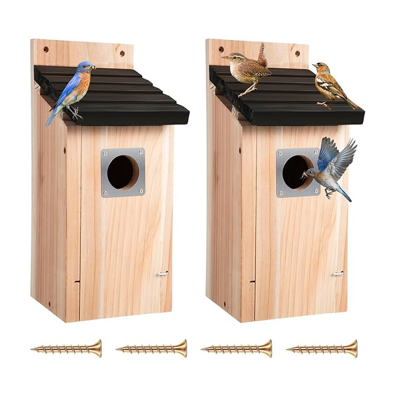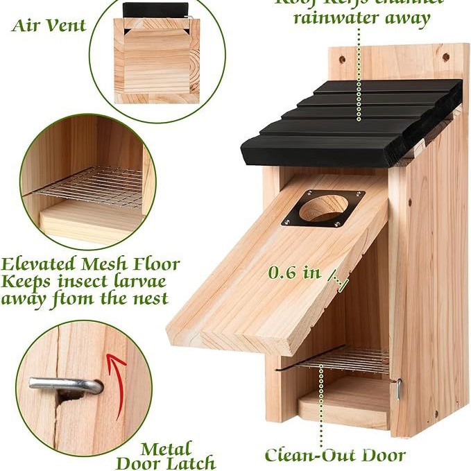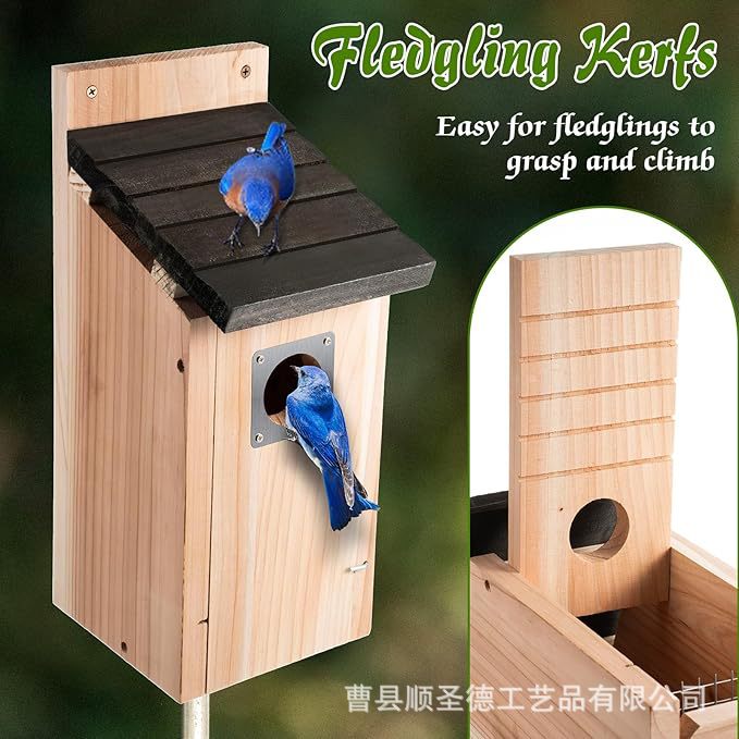 Деревянный домик для птиц, подвесной синий домик для птиц, садовая клетка для птиц, кормушка для птиц из цельного дерева, коробка для разведения кардиналов