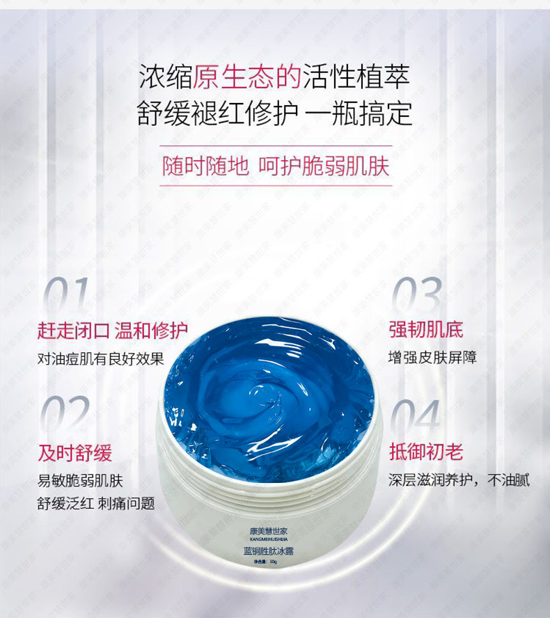 Линия для больниц: кристаллический лед с голубым медным пептидом, восстанавливающий эпидермис, для чувствительной кожи, кутикулы и кровяного шелка, гель для фабрики.