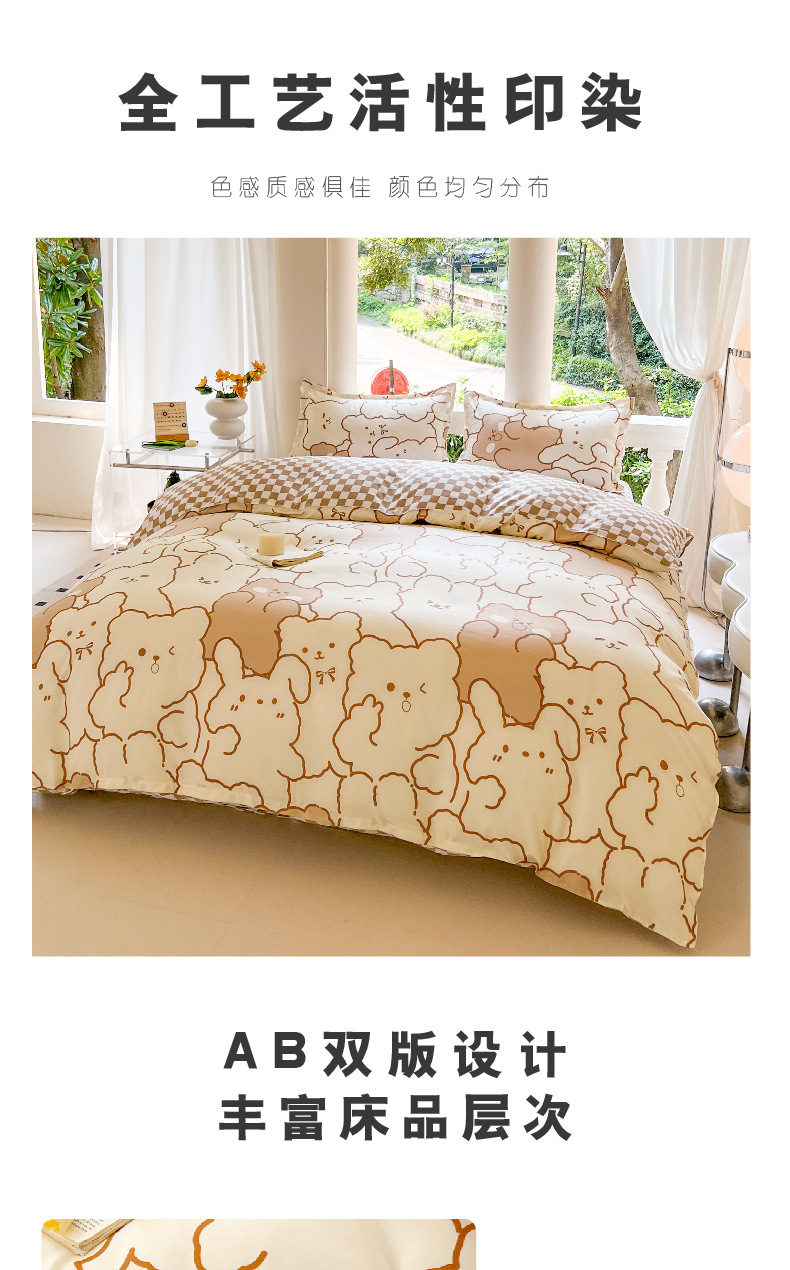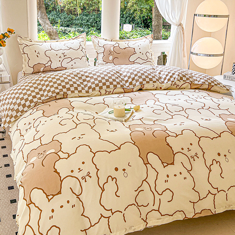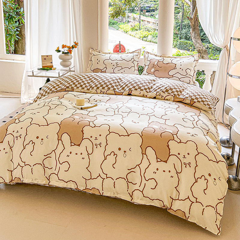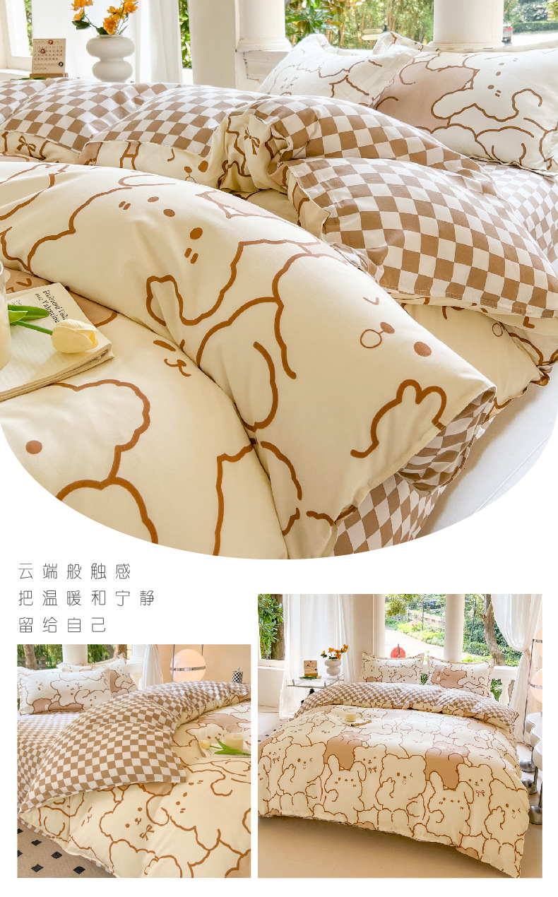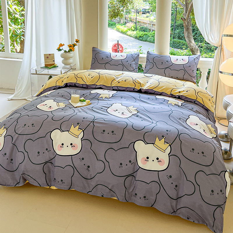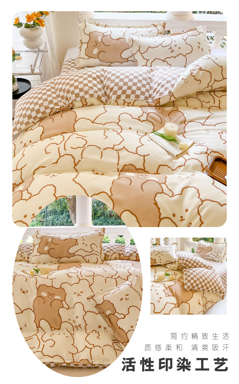 Свежий и простой комплект постельного белья из четырех предметов, комплект из трех предметов для студенческого общежития, зимнее постельное белье с мультяшным рисунком.