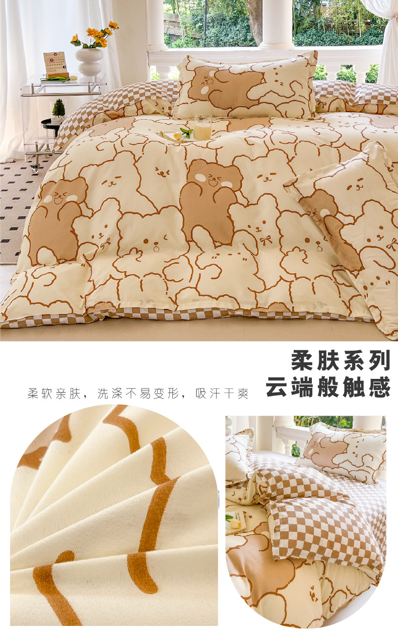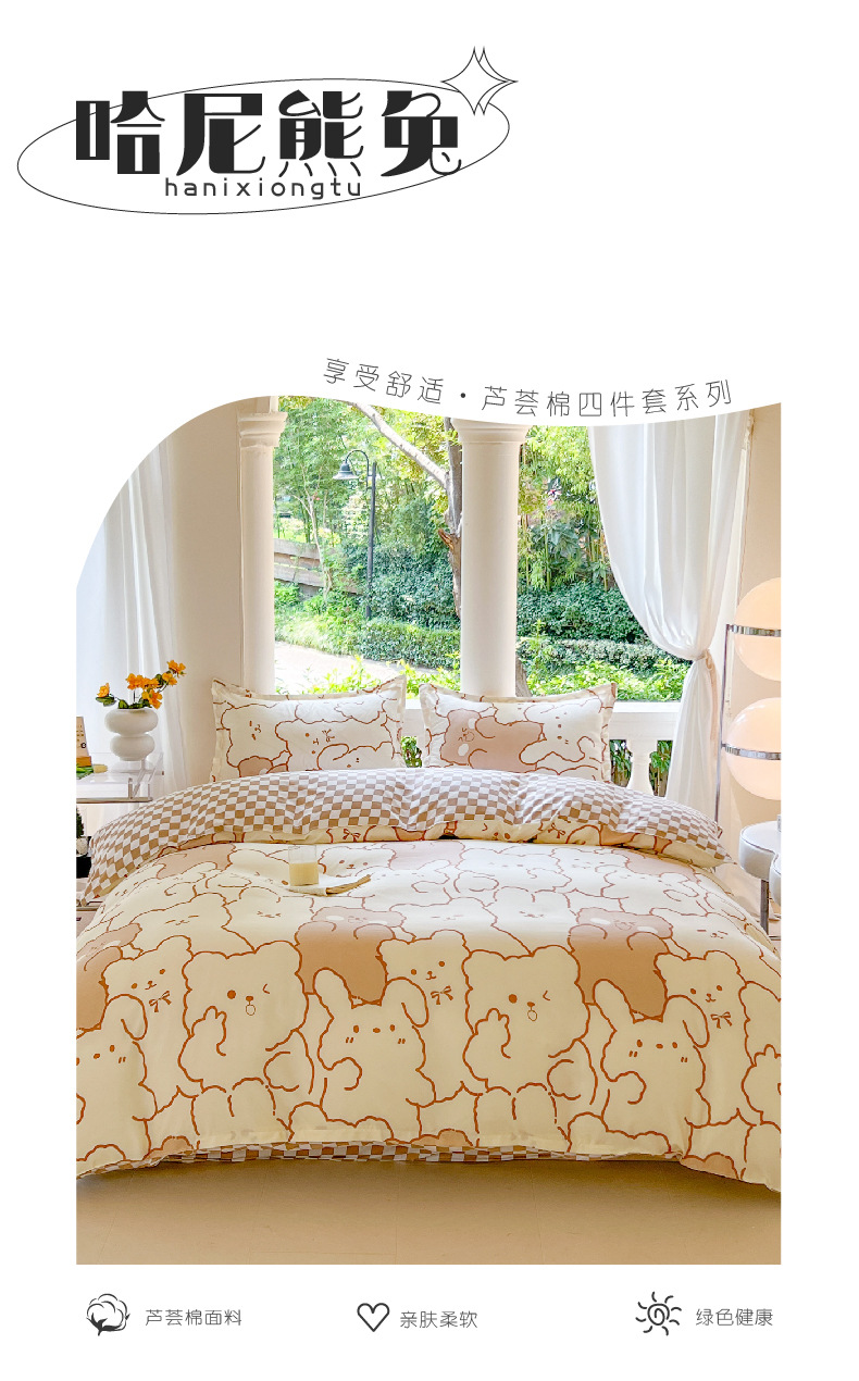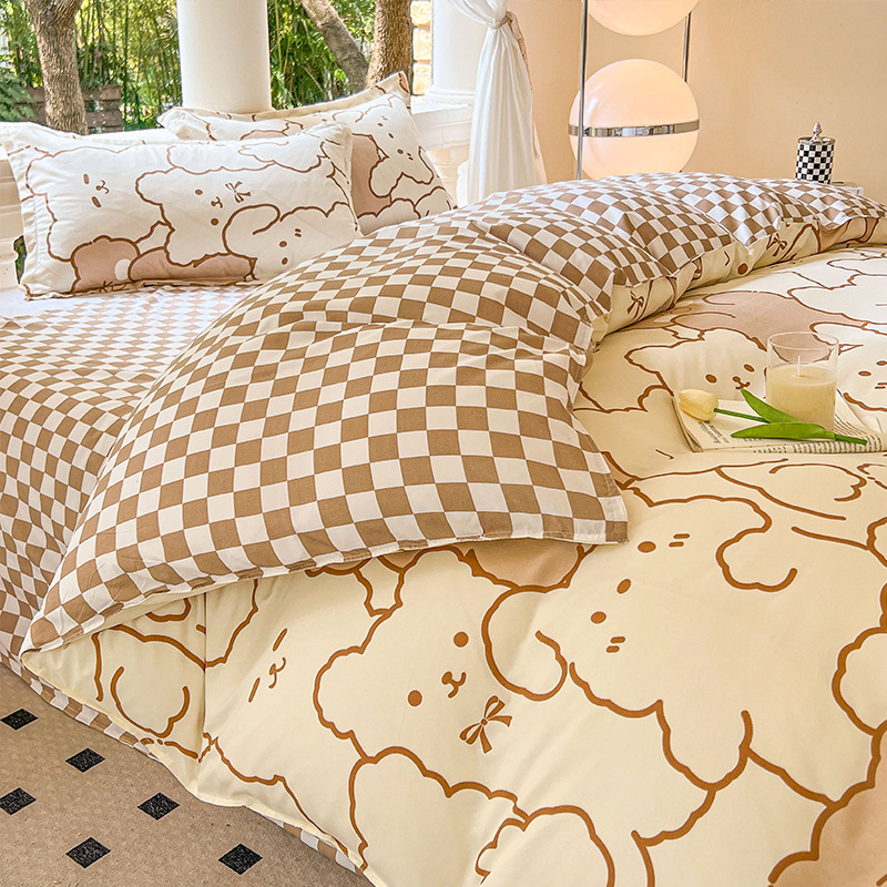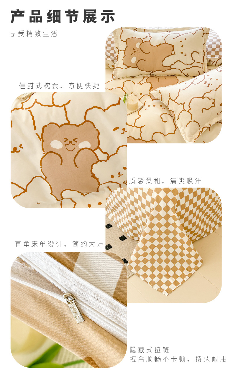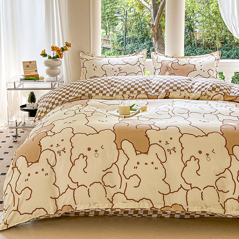 Свежий и простой комплект постельного белья из четырех предметов, комплект из трех предметов для студенческого общежития, зимнее постельное белье с мультяшным рисунком.