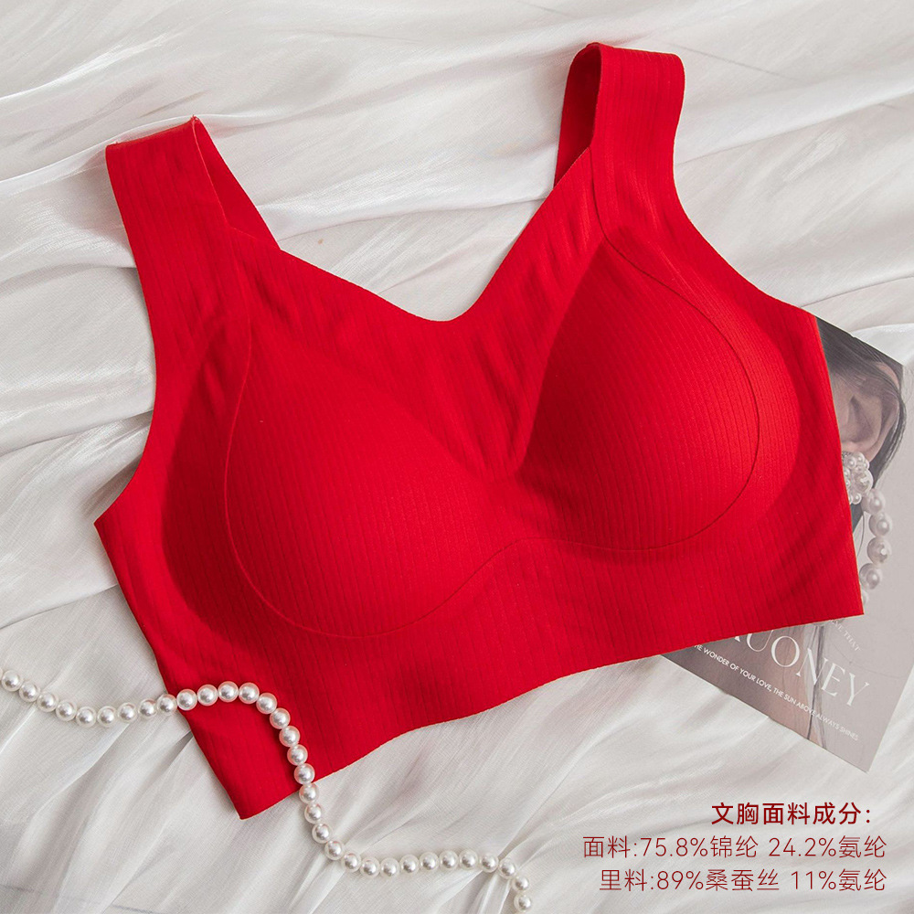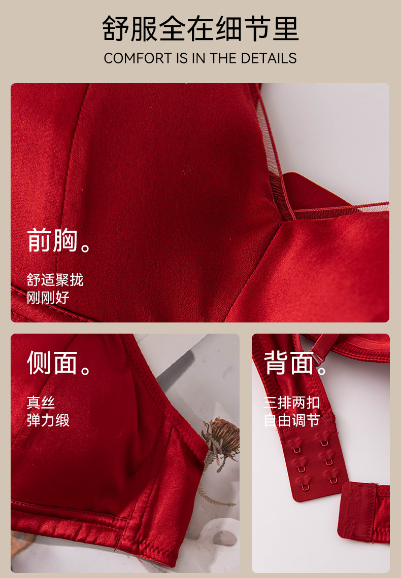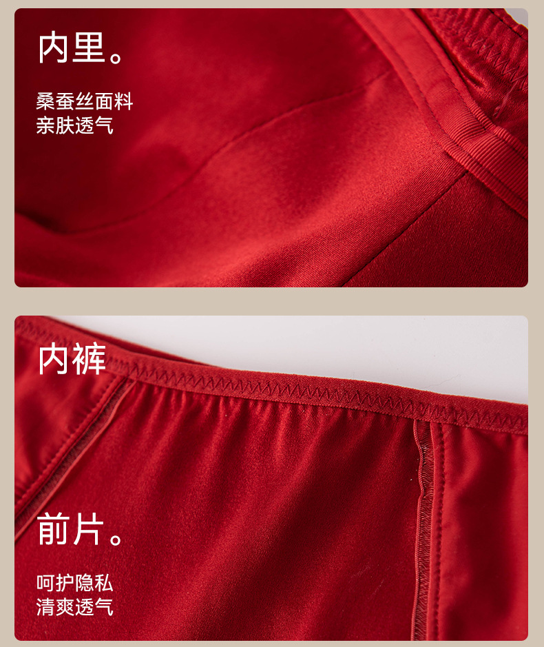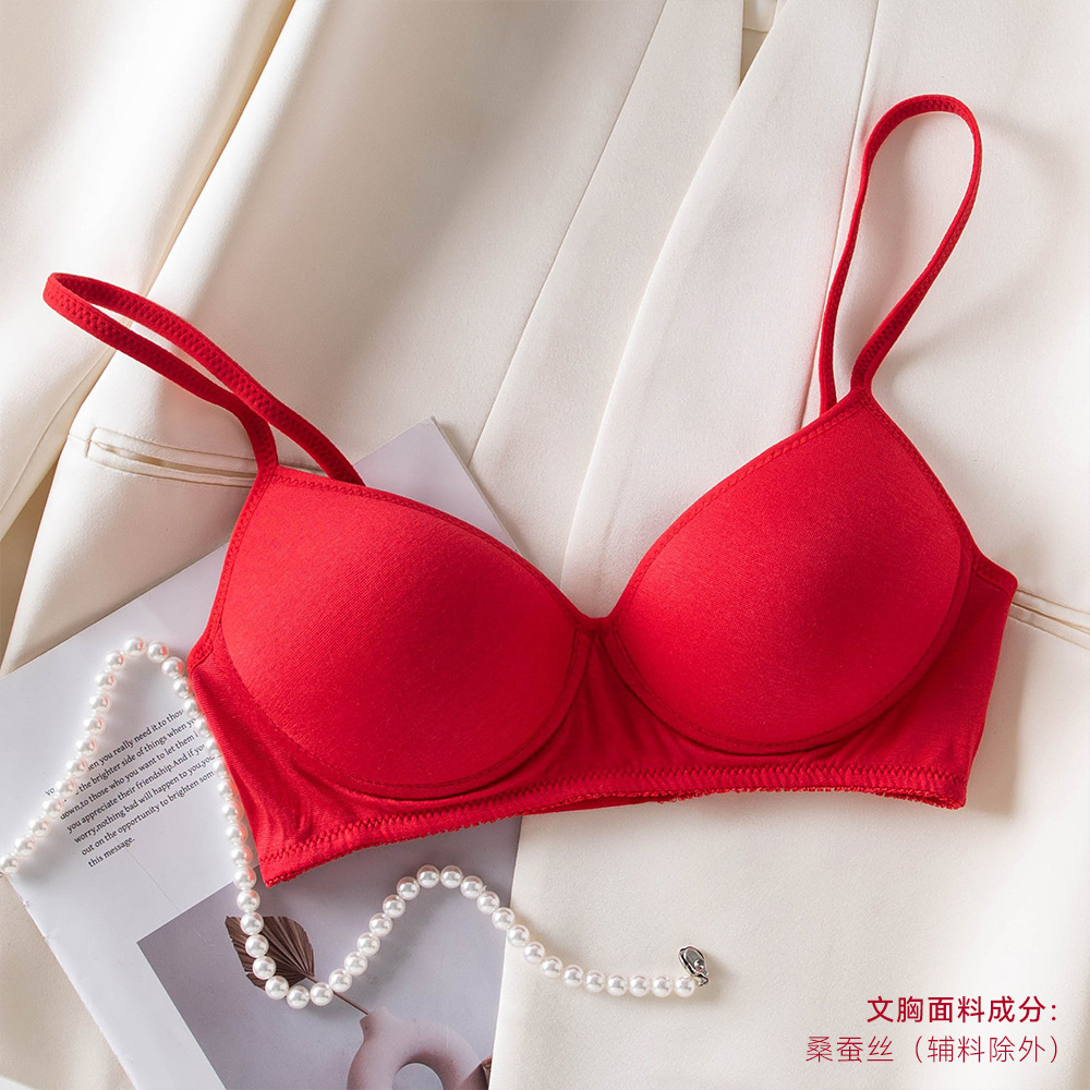 Новый комплект женского шелкового белья 2026 года, модель «Год Зодиака», ярко-красный, тонкий, для невесты на свадьбу, сексуальный бюстгальтер из тутового шелка