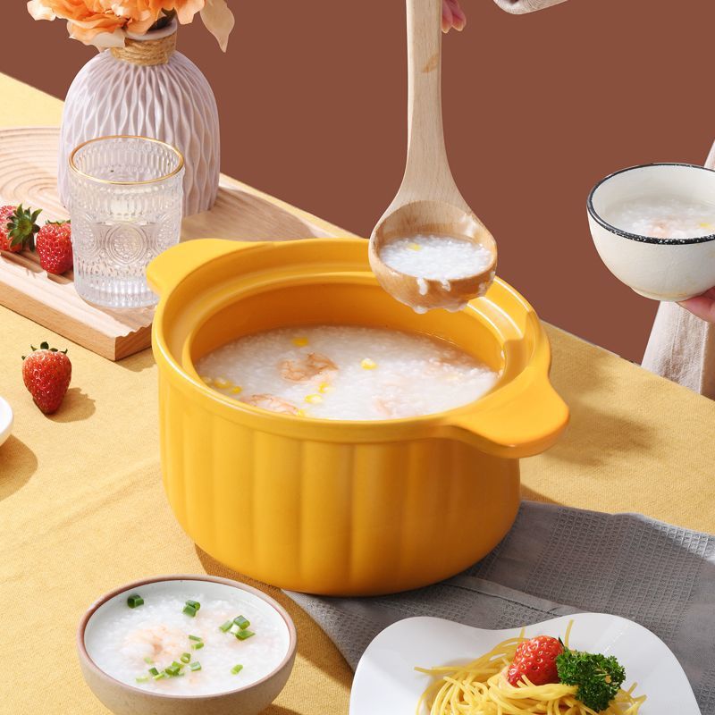 Модная милая керамическая кастрюля для супа с двумя ручками, устойчивая к высоким температурам, для домашнего использования, глиняная кастрюля для риса, подходит для газовых плит.