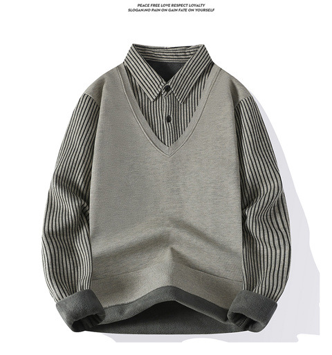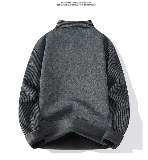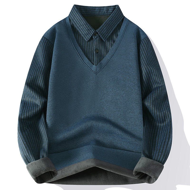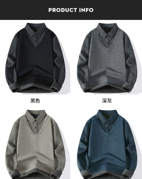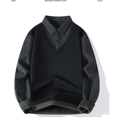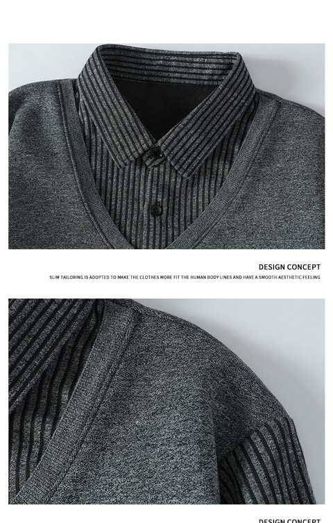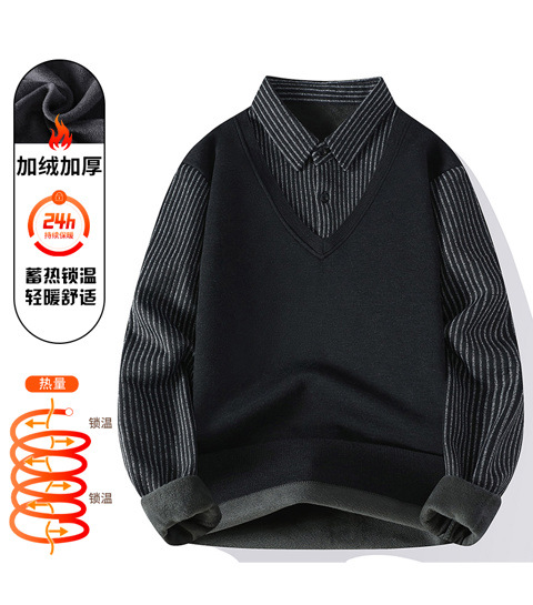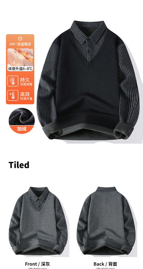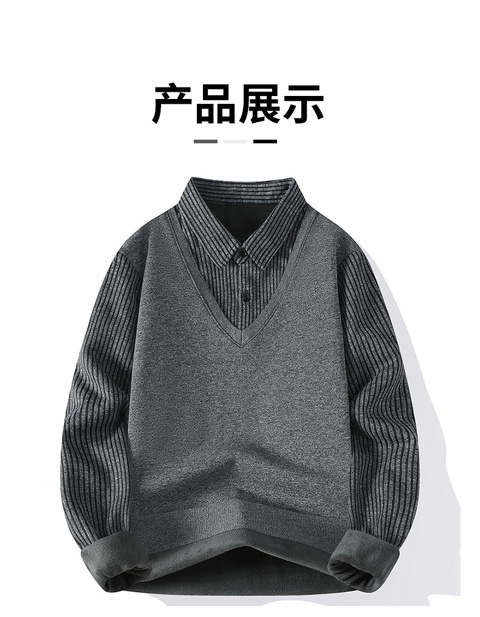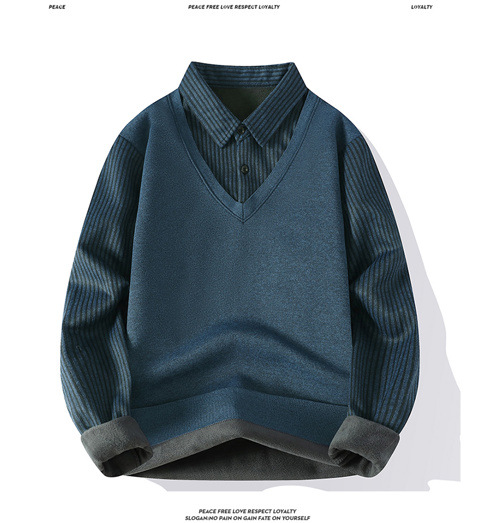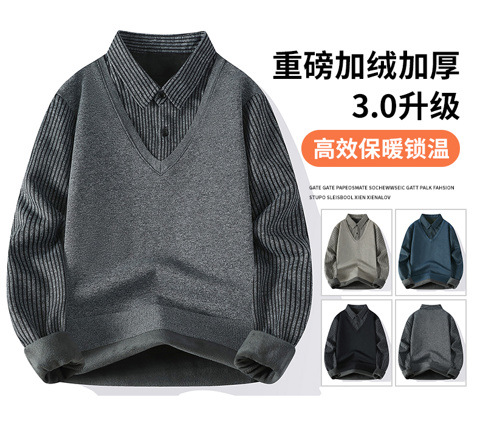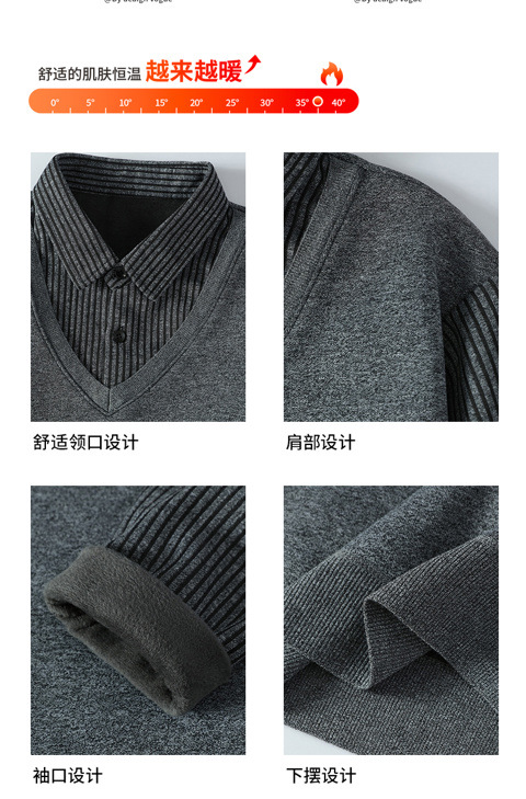Осенне-зимний утепленный теплый вязаный пуловер из искусственного меха в два слоя для делового повседневного стиля рубашки для мужчин среднего возраста