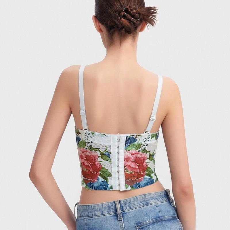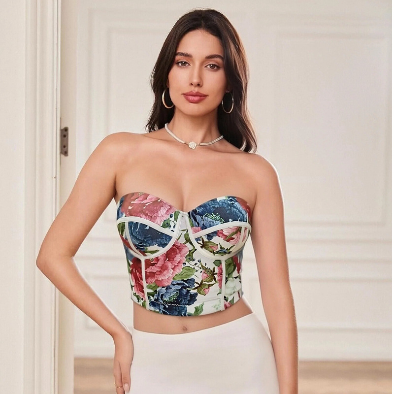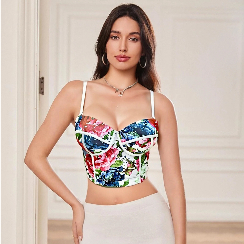 Женский укороченный топ-камизоль в европейско-американском стиле с эффектом пуш-ап, корсетом-бюстгальтером с косточками и вкладышами для груди.