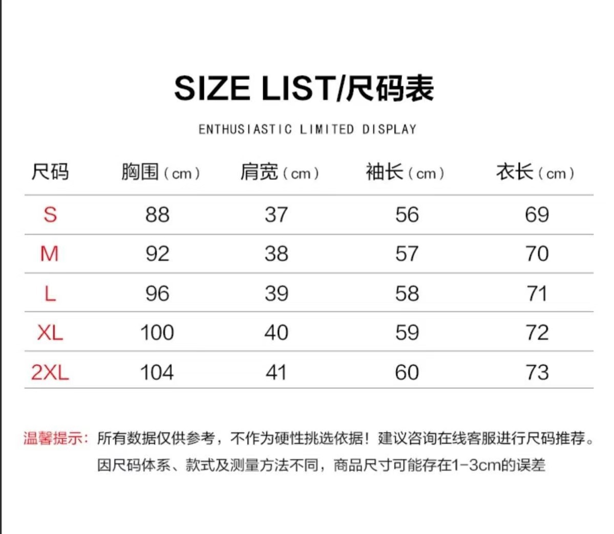 S; M; L; XL; XXL