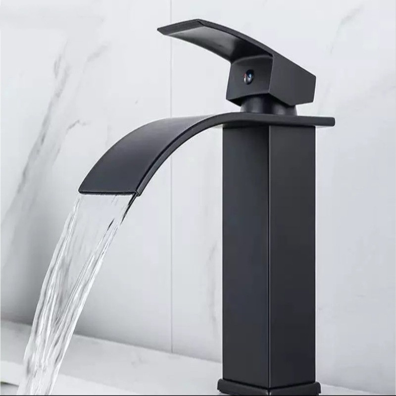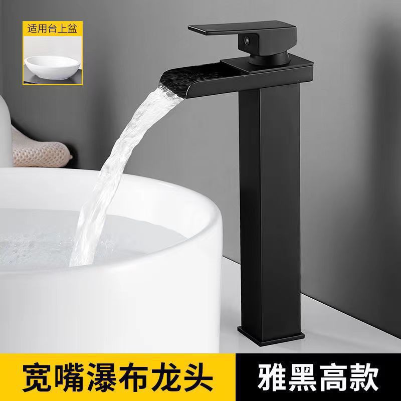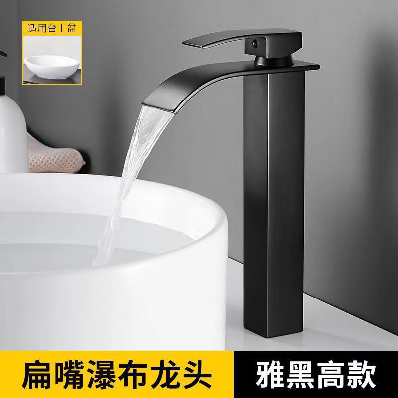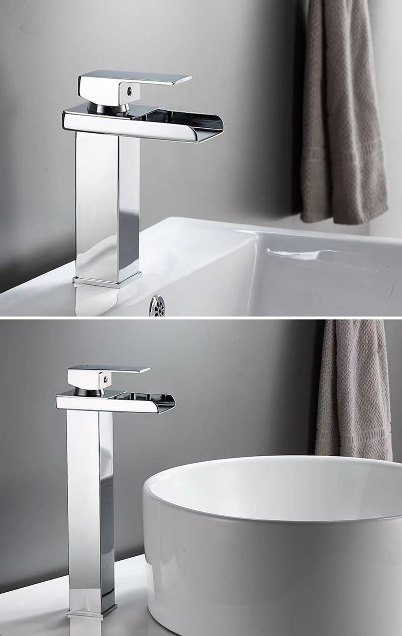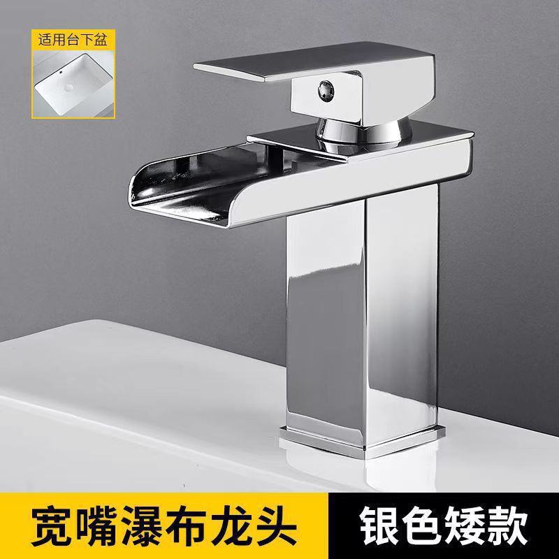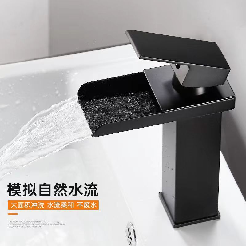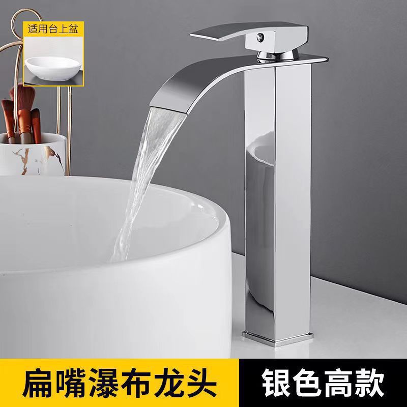 Смеситель для раковины в американском стиле из нержавеющей стали с широким изливом-водопадом, для умывальника на столешницу, с функцией горячей и холодной воды