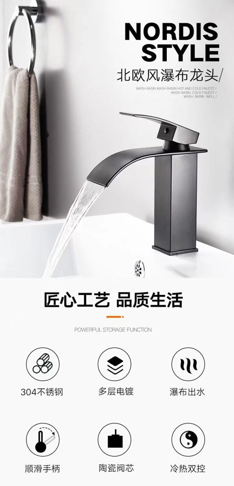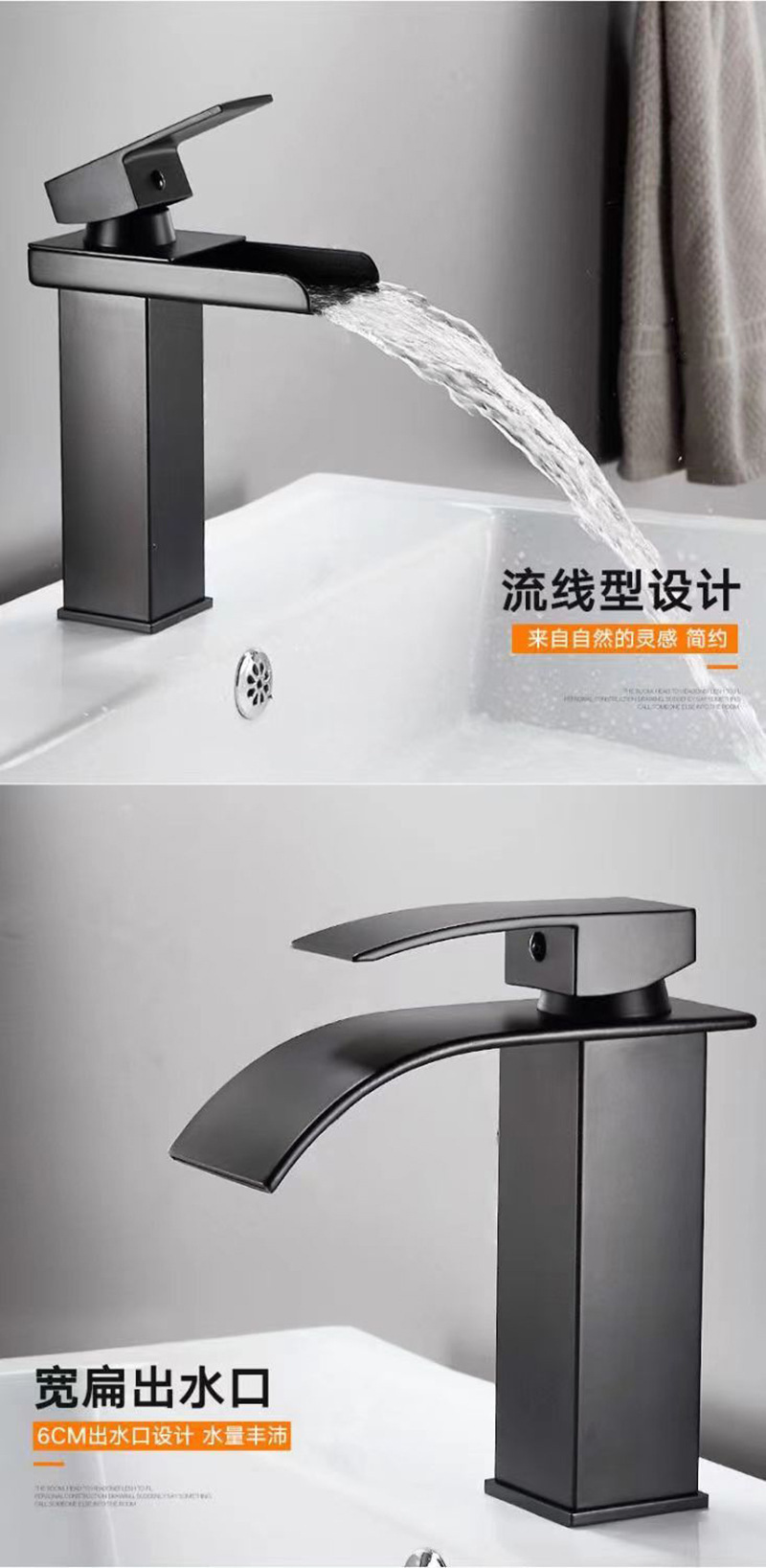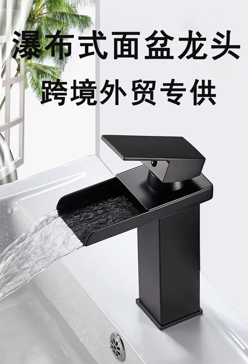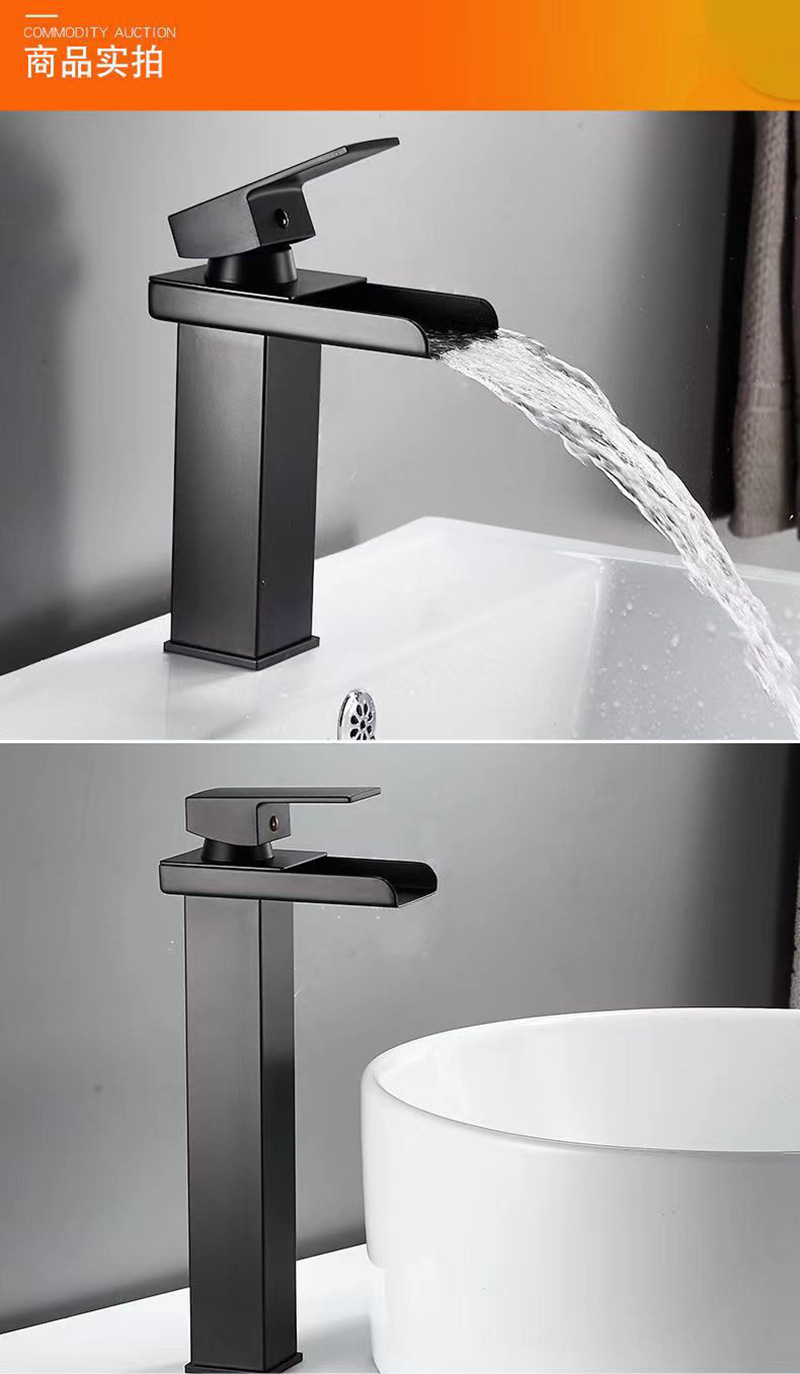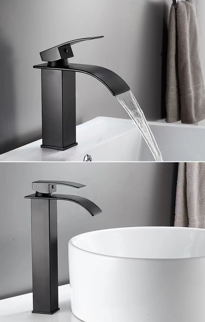 Смеситель для раковины в американском стиле из нержавеющей стали с широким изливом-водопадом, для умывальника на столешницу, с функцией горячей и холодной воды