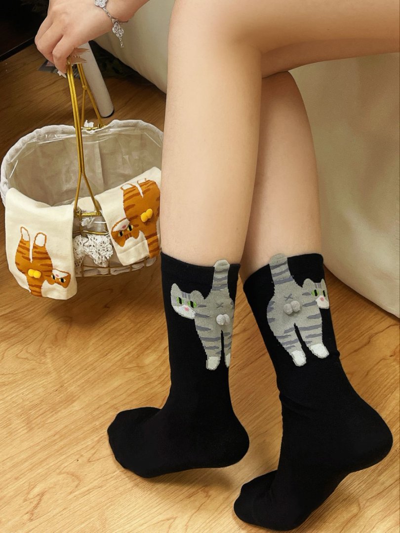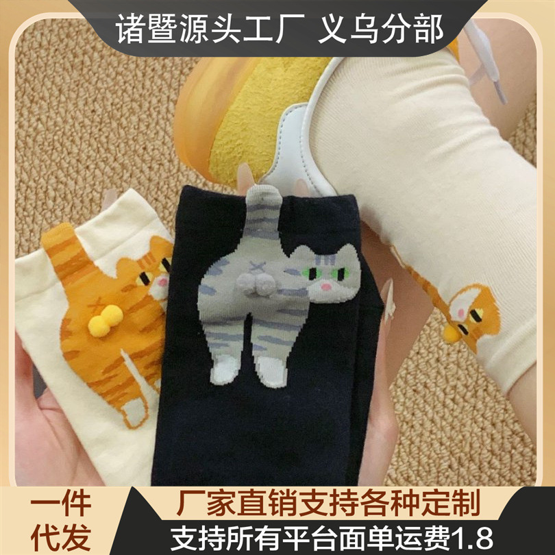 Летние в наличии абстрактные 3D носки с изображением кошачьего яйца, носки до середины икры для женщин, милые длинные носки в японском стиле с изображением кошки для женщин