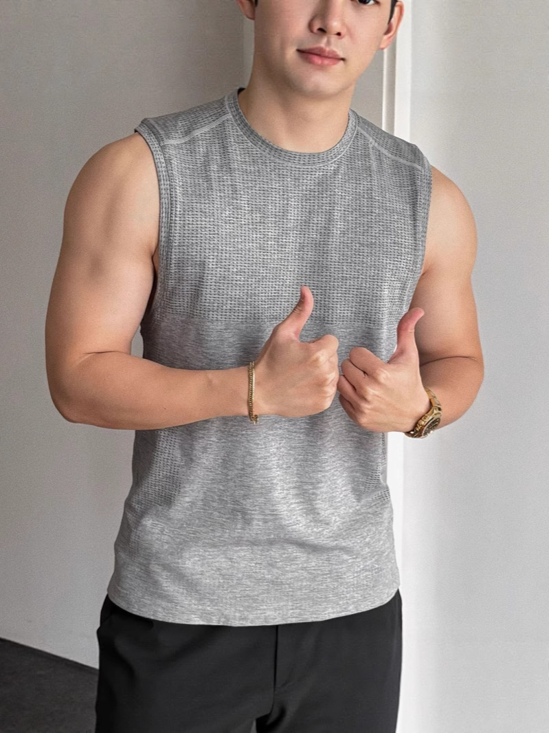 Мужской спортивный жилет, летняя быстросохнущая дышащая бесшовная футболка для фитнеса, бега и тренировок, обтягивающий топ без рукавов